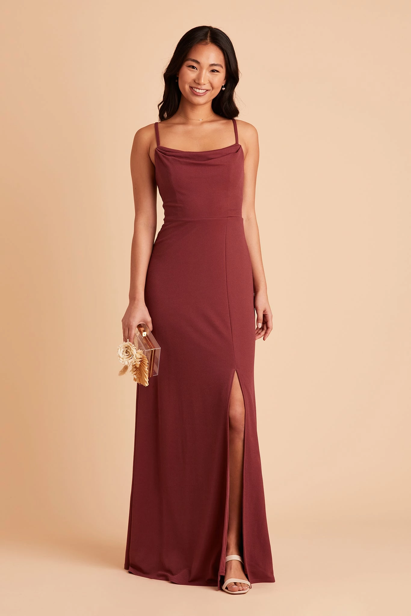 It’s got the perfect dose of sexy for a wedding, complete with a draped cowl neck and a slit for a flash of leg. The body-skimming silhouette is super flattering on a range of body types and even though it hugs your curves, the material offers some stretch so it’s comfortable for all your bridesmaid duties. The cherry on top? You can actually wear it again after the wedding! Throw on a cute blazer and a clutch for a black-tie event or another wedding as a (very chic) guest.