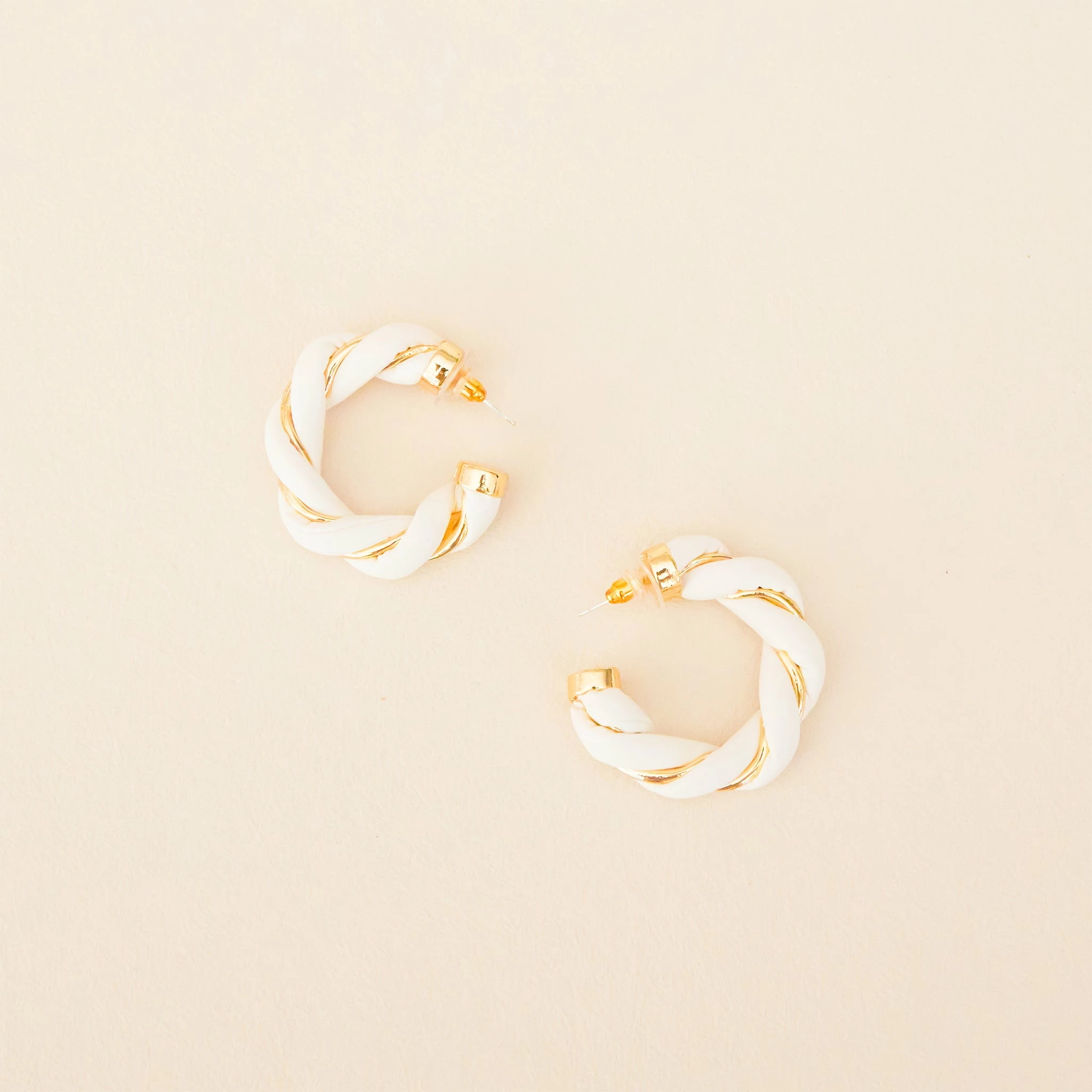 When it’s wedding season, a pair of feminine, light-colored earrings is always a good item to have on hand. This white hoop with a thin strand of gold woven throughout is just the thing. Keep these around to top off any outfits for a girls’ day out or brunch with the fam.