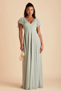 This sweet ruffle-sleeved dress is a dream for a junior bridesmaid. This design features a waistband tie in back for juniors who are between sizes.