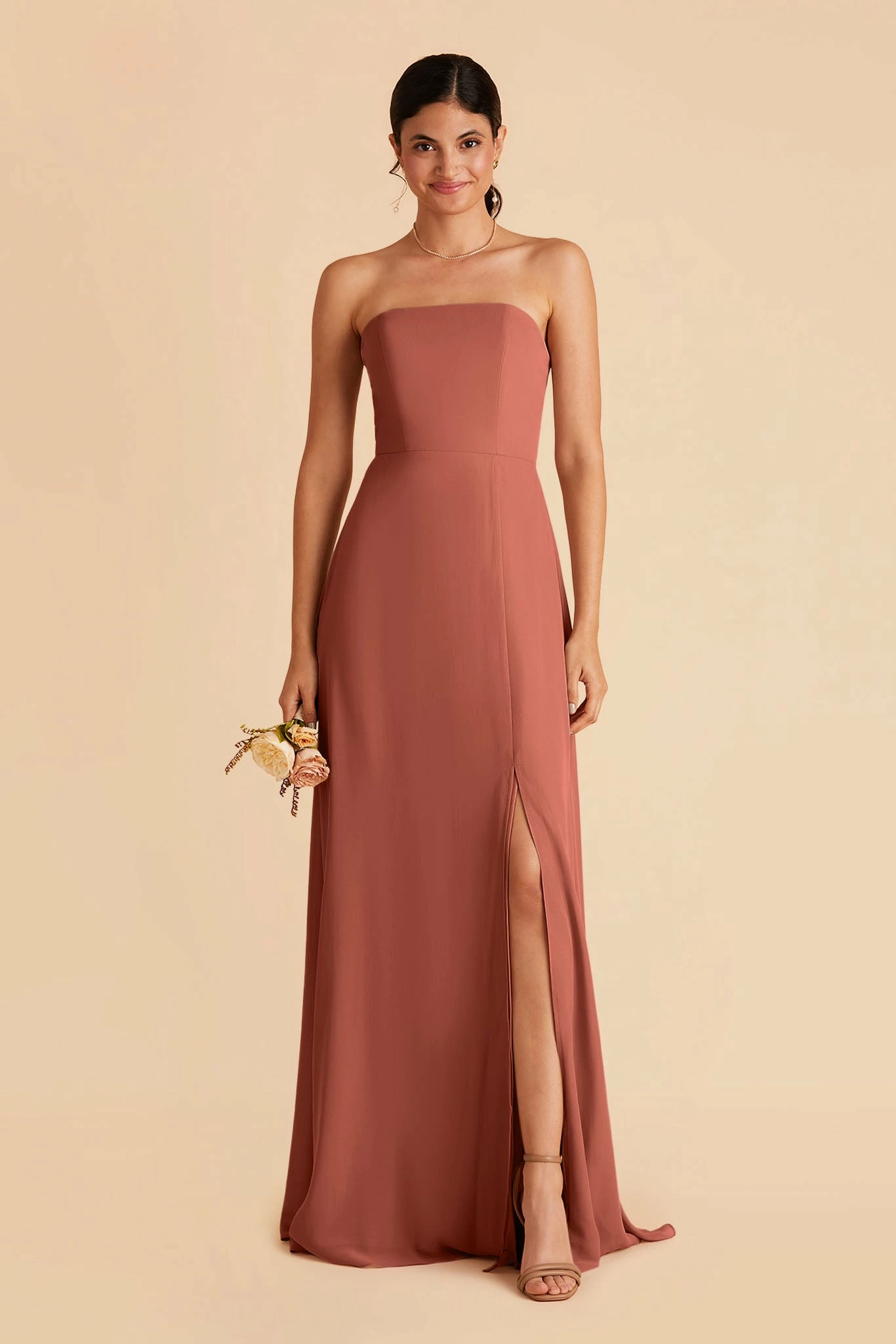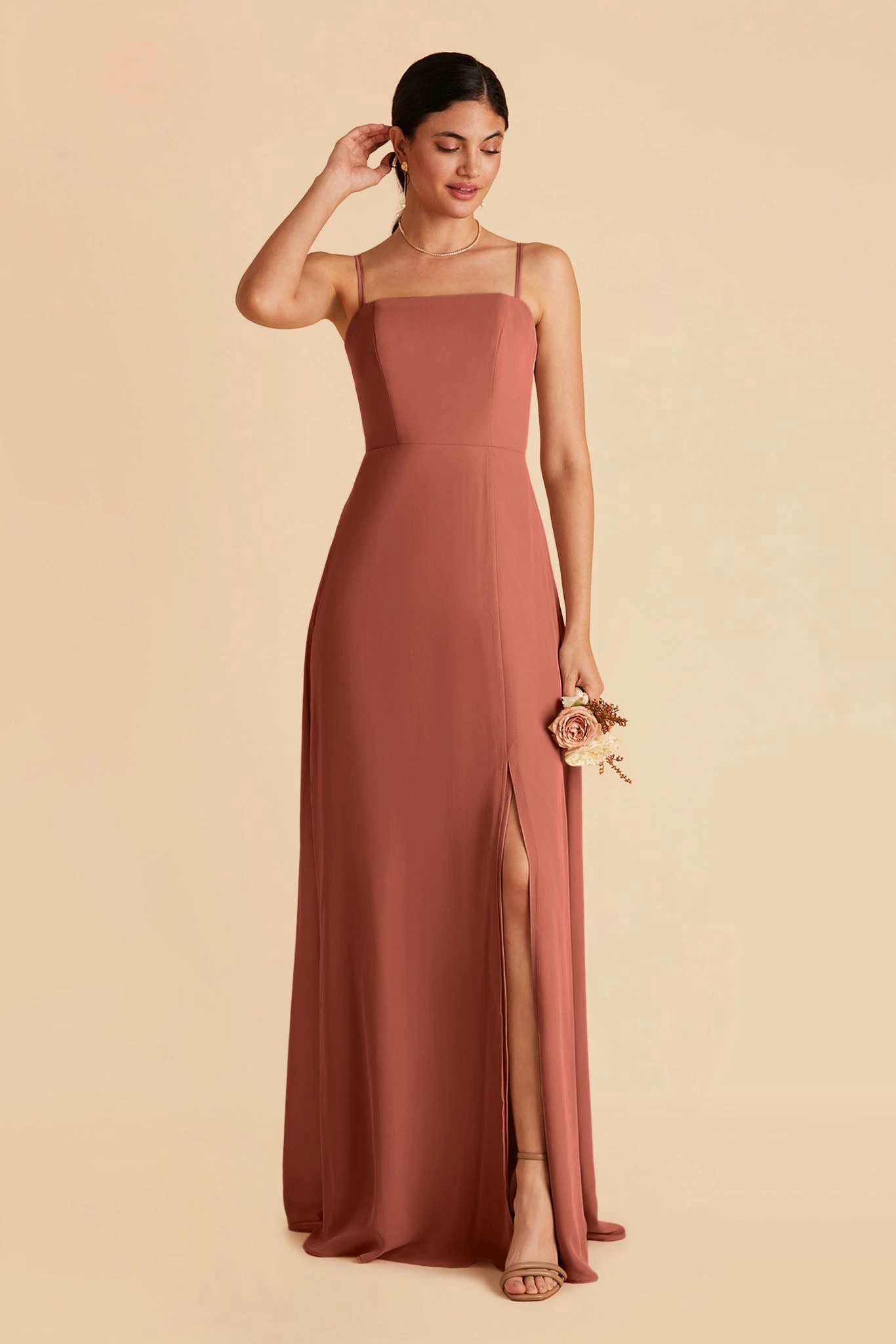It doesn’t get any simpler than this! Our Chris convertible dress is a straight-neck gown that can be worn with spaghetti straps or with no straps at all. It features a more fitted top, with boning sewn in, for added support when wearing without the straps. Pair this ultra-low-key gown with a statement necklace or dangly earrings.