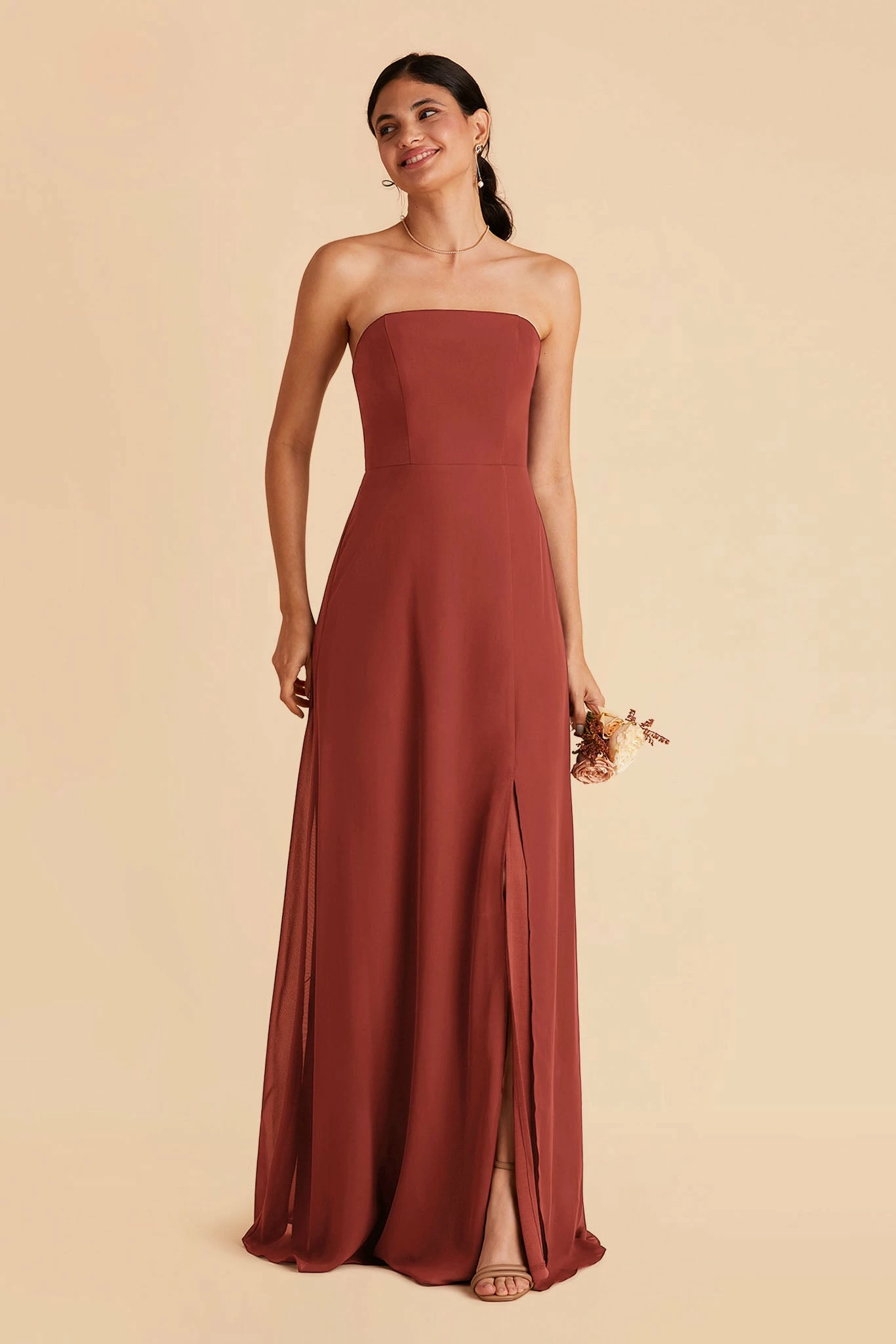 It doesn’t get any simpler than this! Our Chris convertible dress is a straight-neck gown that can be worn with spaghetti straps or with no straps at all. It features a more fitted top, with boning sewn in, for added support when wearing without the straps. Pair this ultra-low-key gown with a statement necklace or dangly earrings.