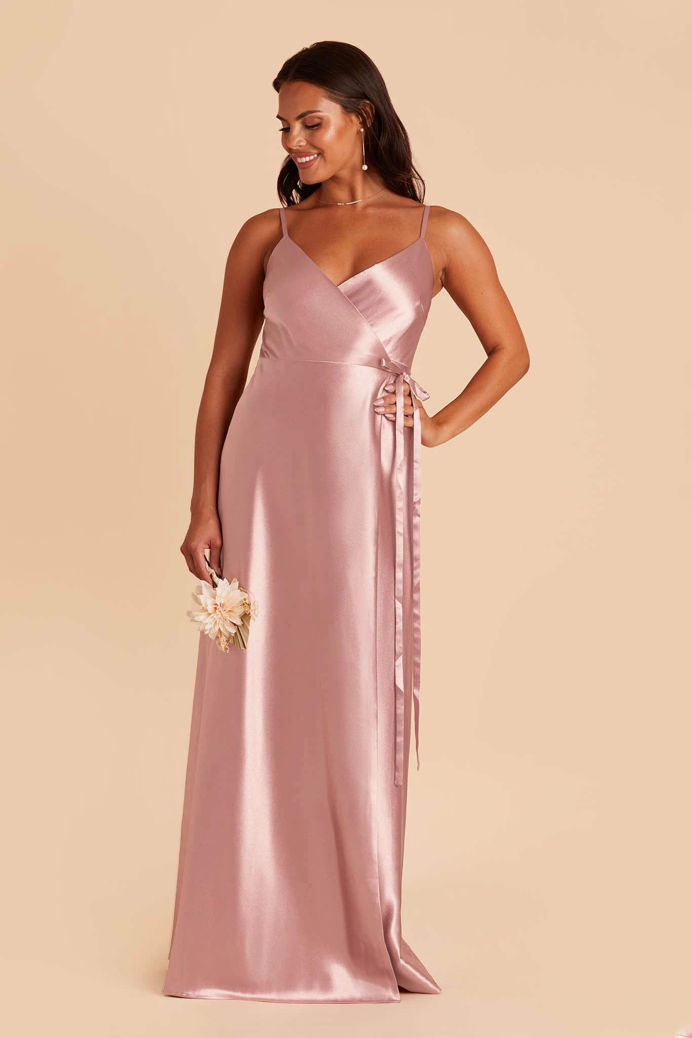 This satin wrap dress is an absolute stunner. Any bridesmaid will love how our Cindy dress flatters, emphasizing her natural waistline and elongating her frame. Perfect for a formal affair, our shimmering satin amps up the glam. The sky’s the limit when it comes to accessorizing Cindy. She pairs beautifully with dangly earrings or a dramatic statement necklace.