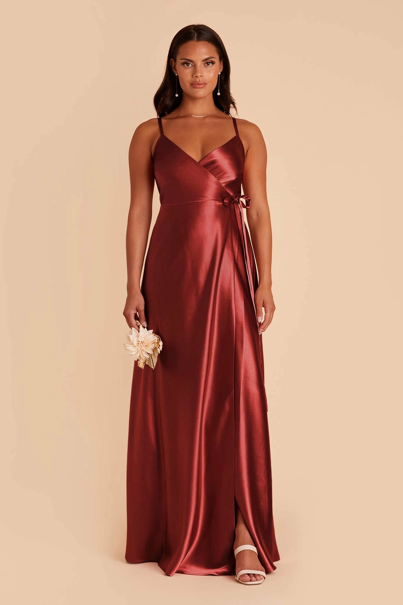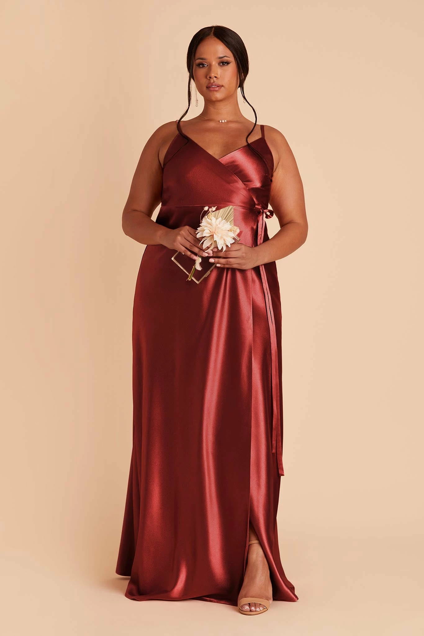 This satin wrap dress is an absolute stunner. Any bridesmaid will love how our Cindy dress flatters, emphasizing her natural waistline and elongating her frame. Perfect for a formal affair, our shimmering satin amps up the glam. The sky’s the limit when it comes to accessorizing Cindy. She pairs beautifully with dangly earrings or a dramatic statement necklace.