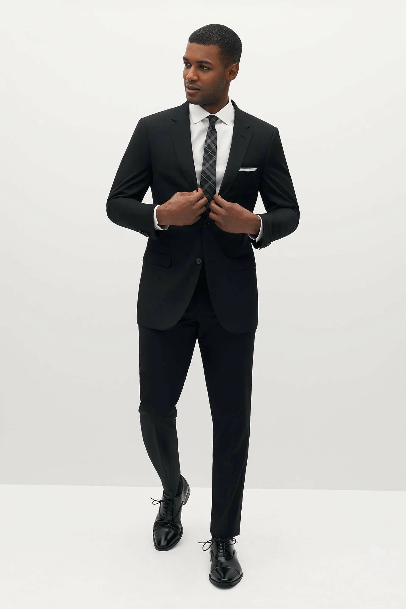 We call this an elevated classic. We love this handsome groomsmen suit from SuitShop for its goes-with-anything gray that’s perfect for a spring wedding. It lets your guys look sharp while providing a canvas to work in their personal touch (we think it looks especially snazzy with a pair of brown oxford or blucher shoes). The fully lined jacket has a notch lapel, flap pockets and a two-button closure, while the pants come with an unfinished hem and split waist construction for easy alteration and slant front pockets. Pair it with one of our skinny neck ties or bow ties for a matching look with the entire wedding party. *Fulfilled by our friends at SuitShop