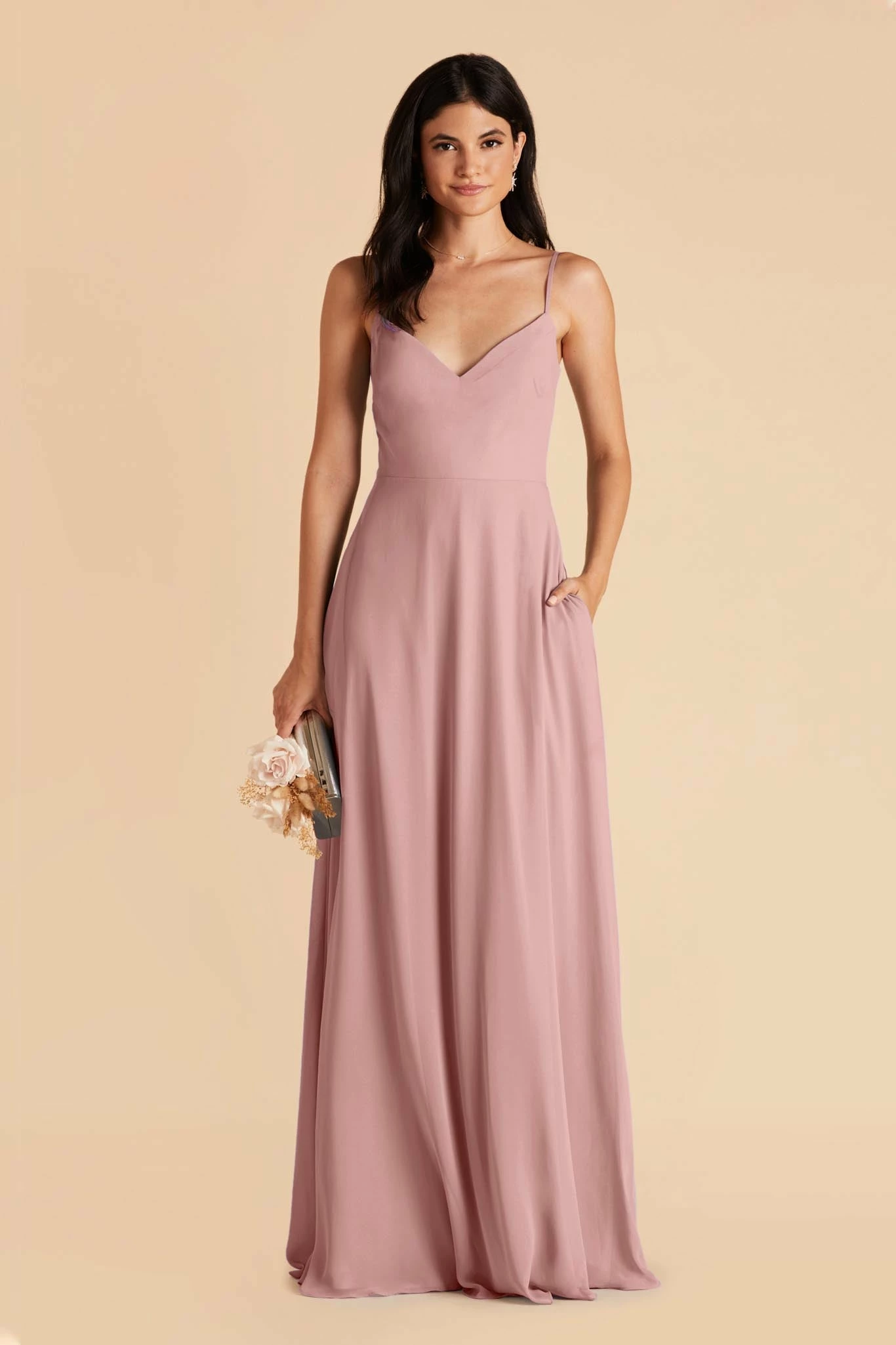 This bridesmaid dress boasts two distinct personalities: soft & romantic, modern & minimal. Thanks to the super smart detachable sleeves, your bridal squad can rock the look that makes them feel authentic while still holding true to your wedding-day vision. With the draped sleeves, it lends a pretty and romantic vibe but without it, the dress transforms to a classic and minimal V-neck with spaghetti straps. Whichever way, the dress is a standout choice for your best supporting ladies.