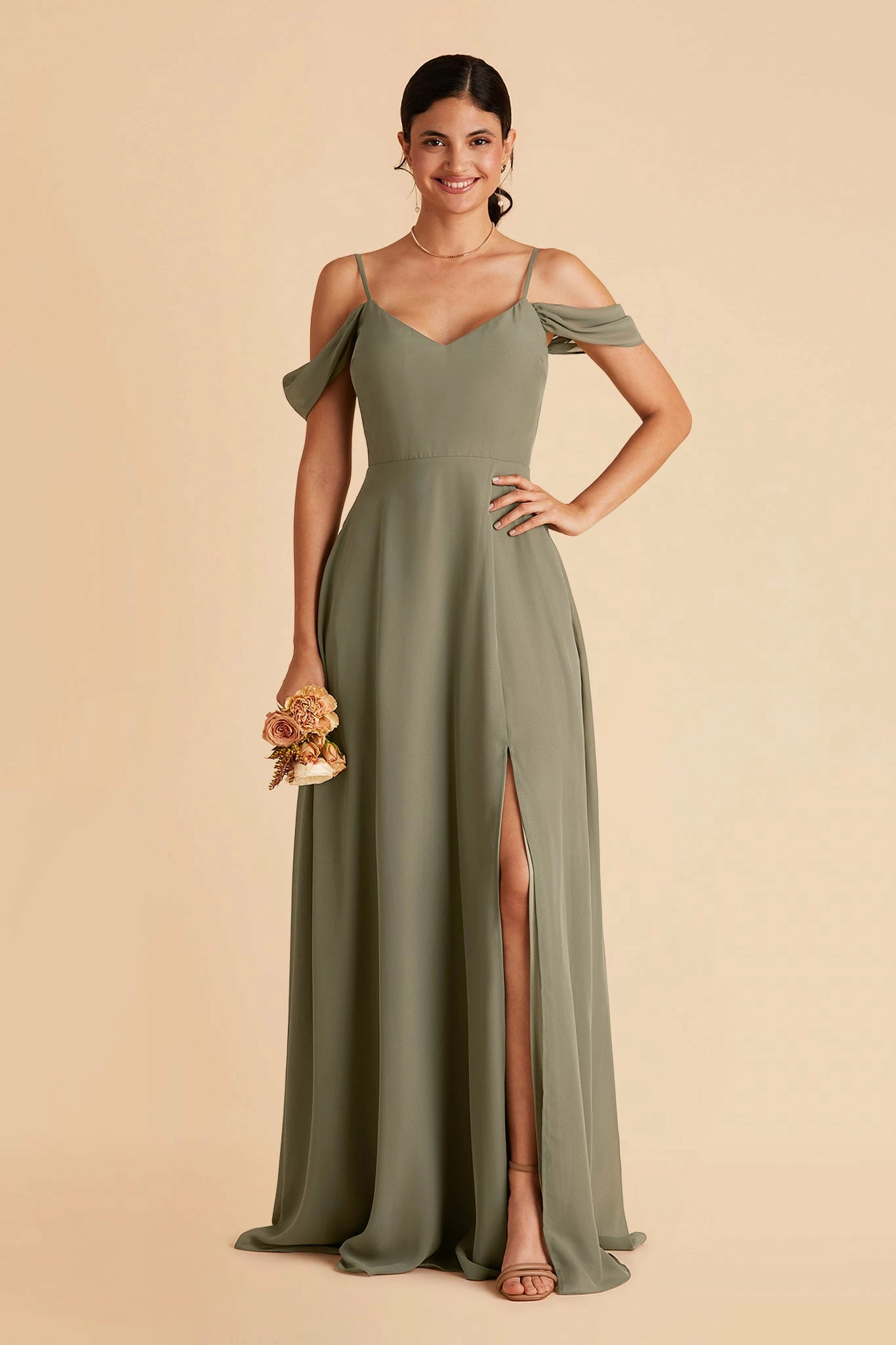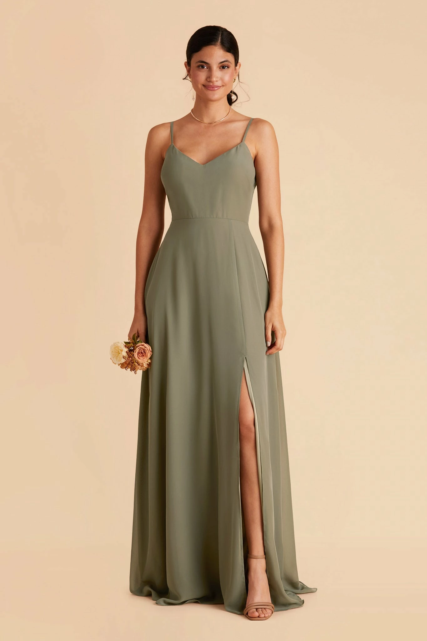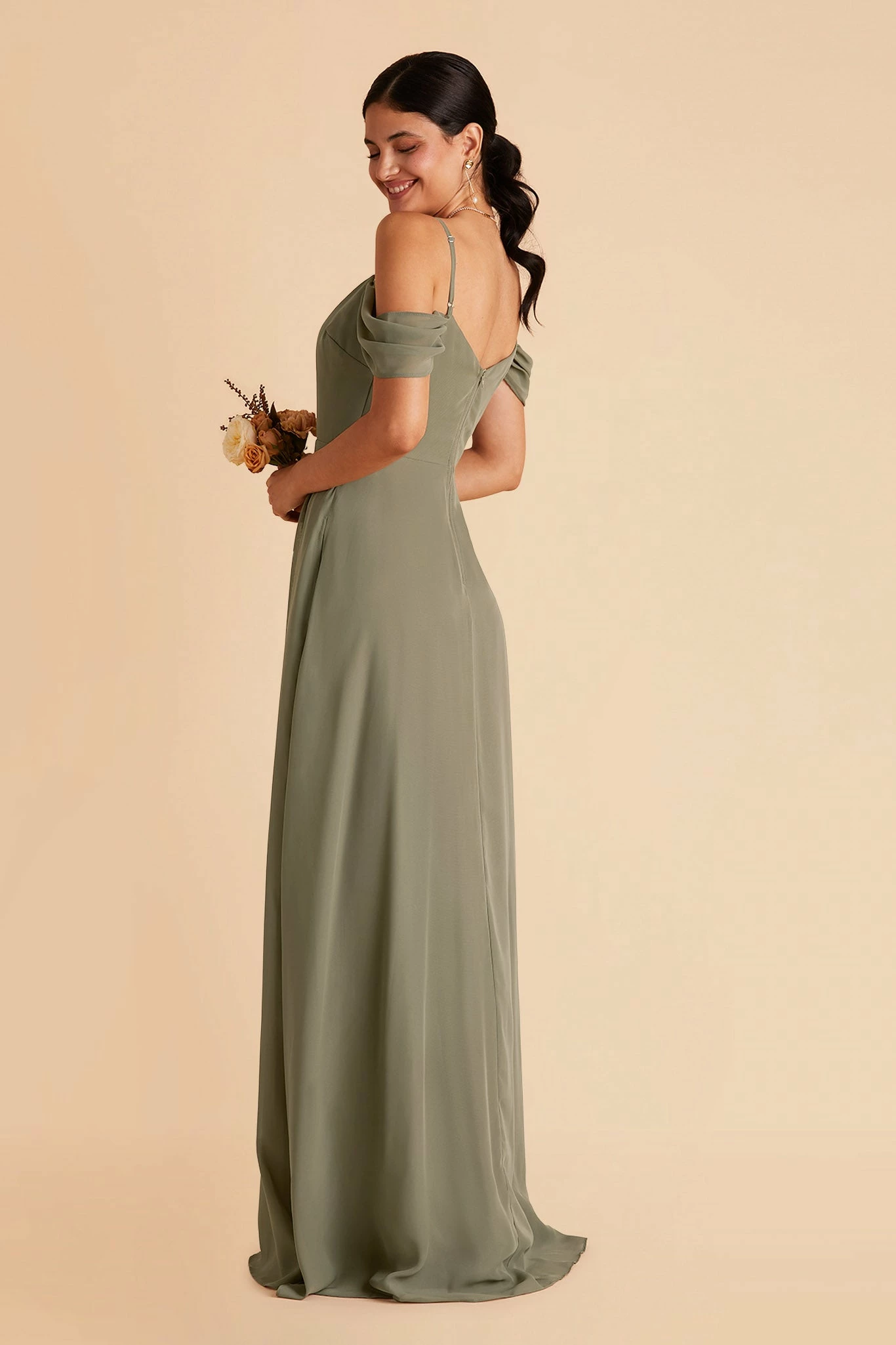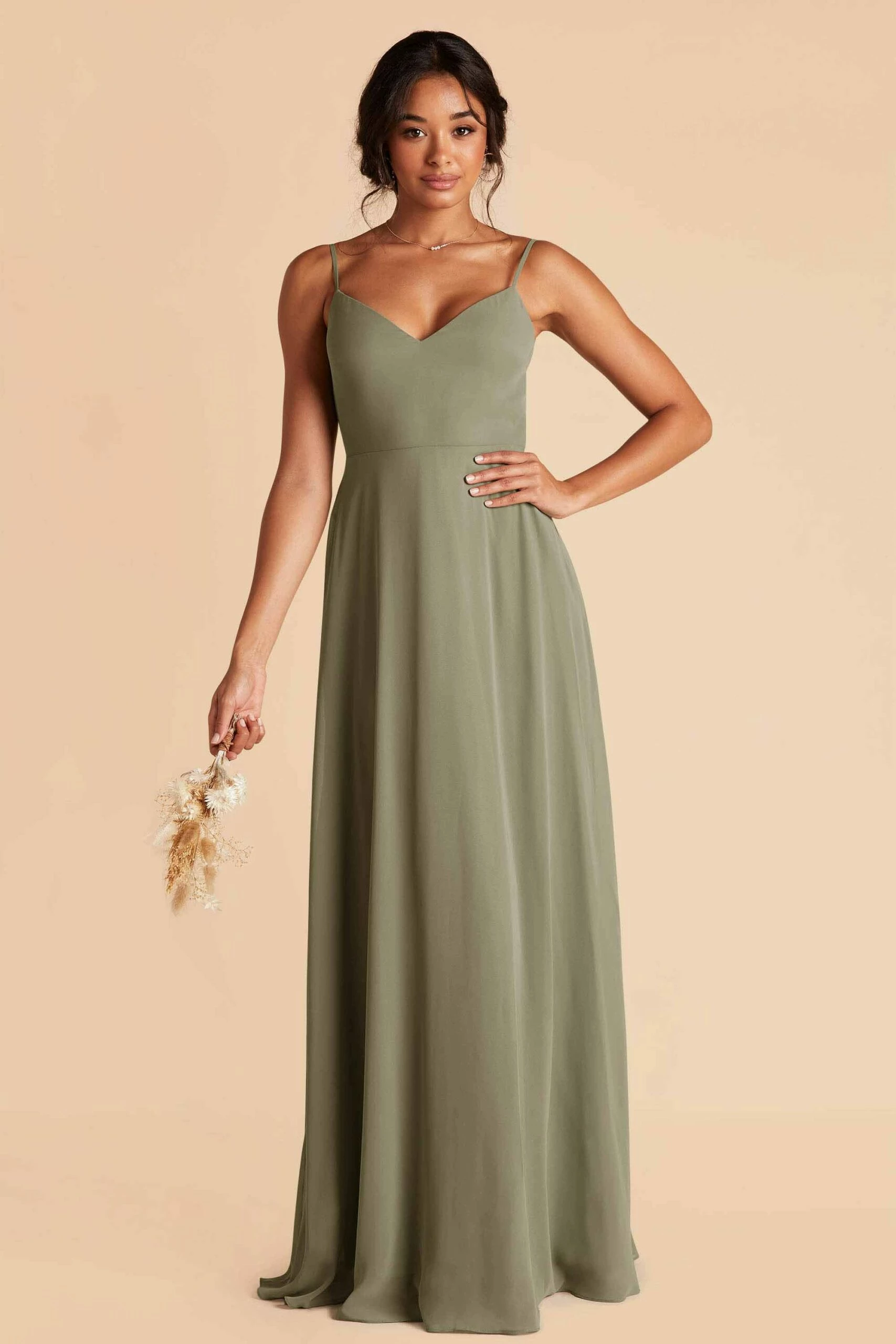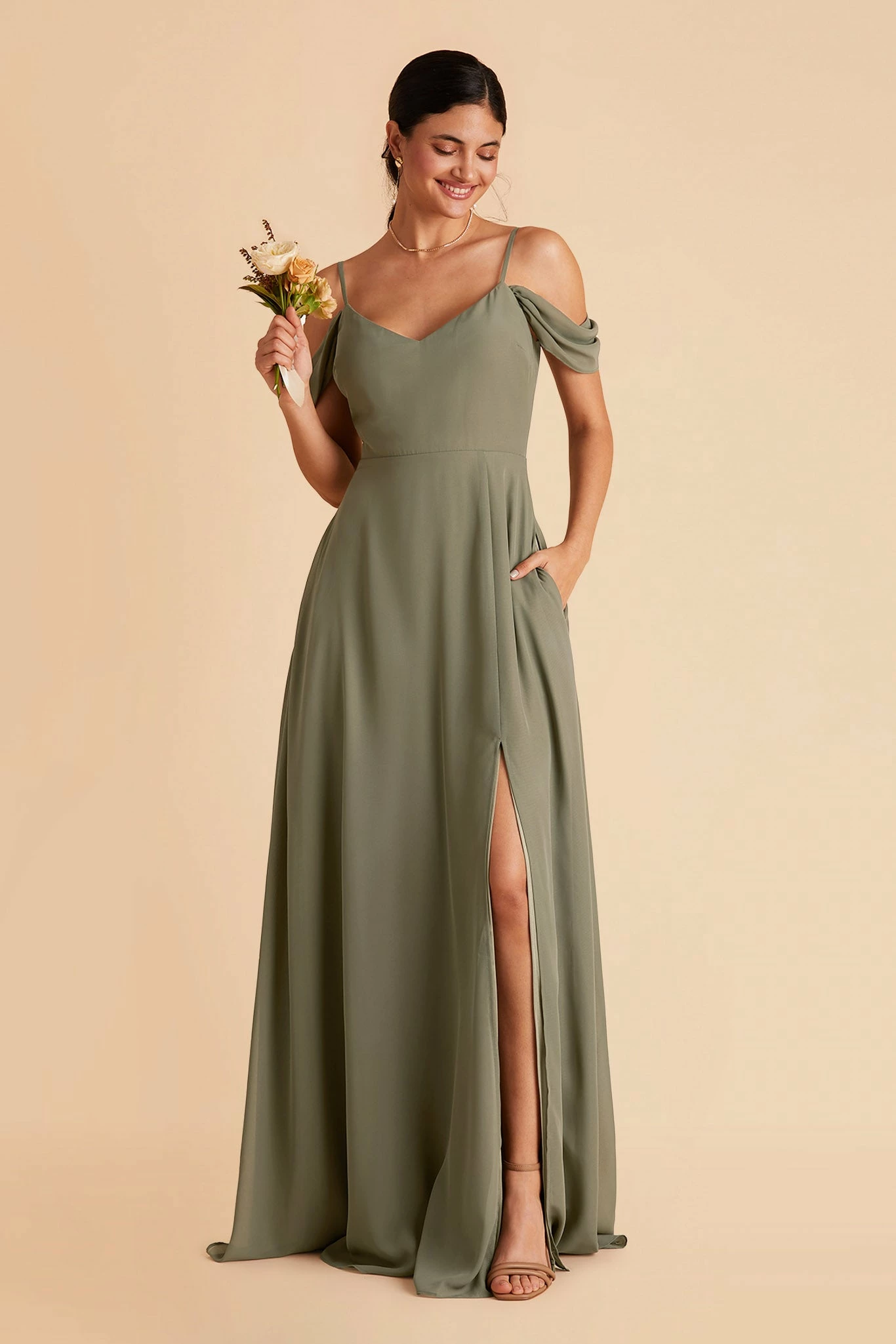 This bridesmaid dress boasts two distinct personalities: soft & romantic, modern & minimal. Thanks to the super smart detachable sleeves, your bridal squad can rock the look that makes them feel authentic while still holding true to your wedding-day vision. With the draped sleeves, it lends a pretty and romantic vibe but without it, the dress transforms to a classic and minimal V-neck with spaghetti straps. Whichever way, the dress is a standout choice for your best supporting ladies.