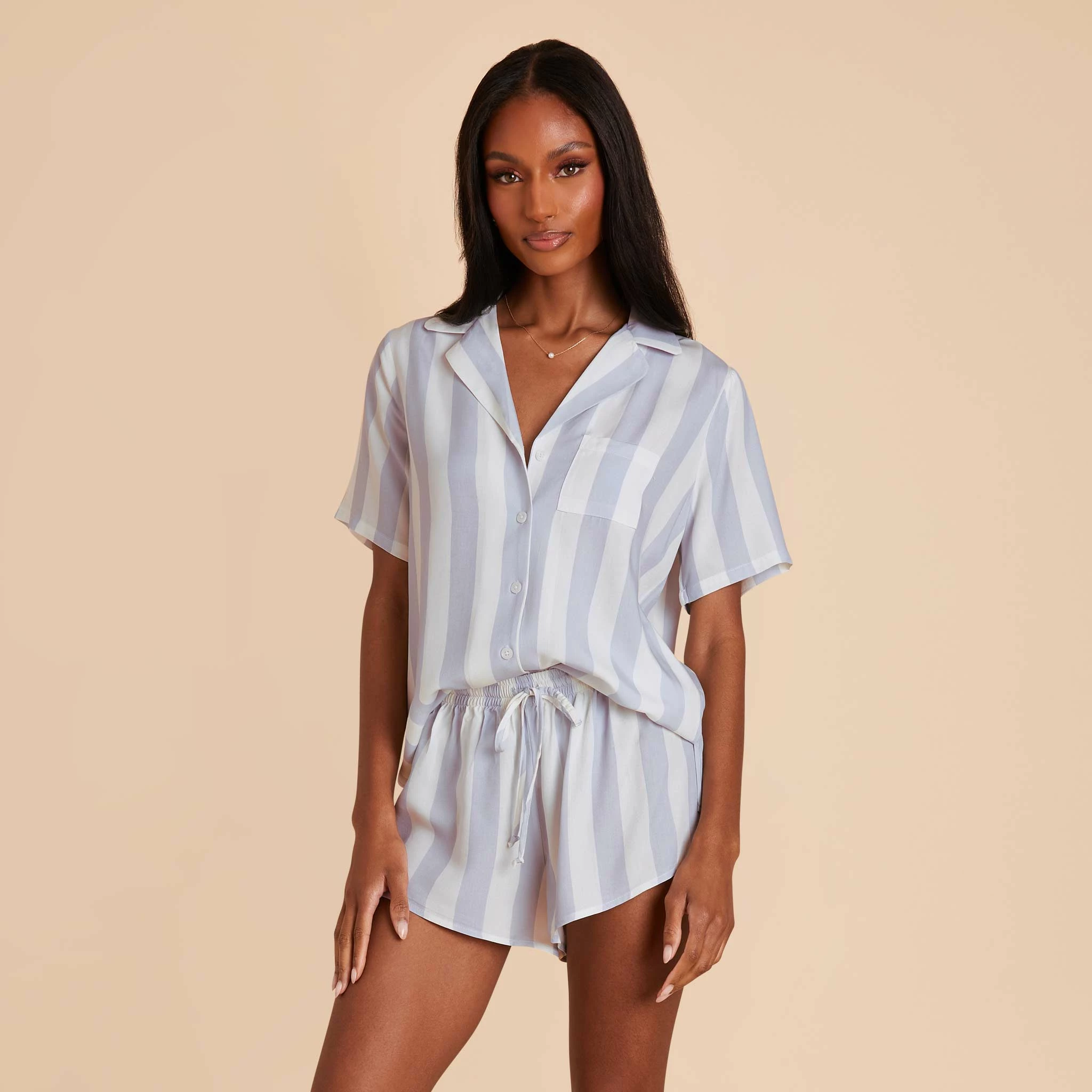 SKU: YMLYZ 7570715476159 Categories: Bridesmaid Pajamas, Pajamas & Robes Tags: Dusty blue stripe, Prints, Rayon, Short Sleeves