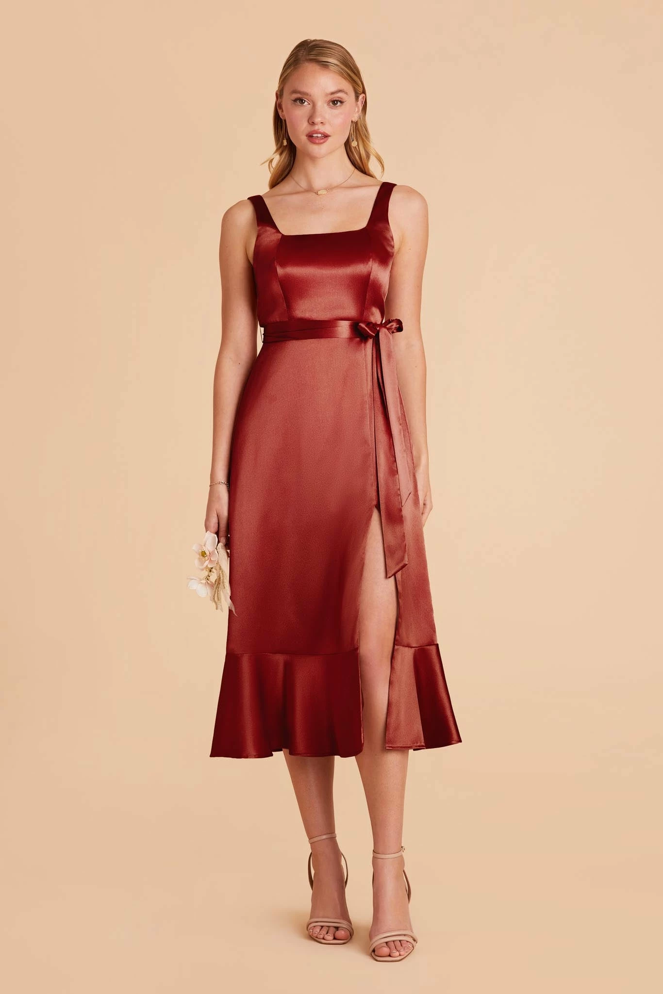 Eugenia Shiny Satin Convertible Midi Dress – Spice