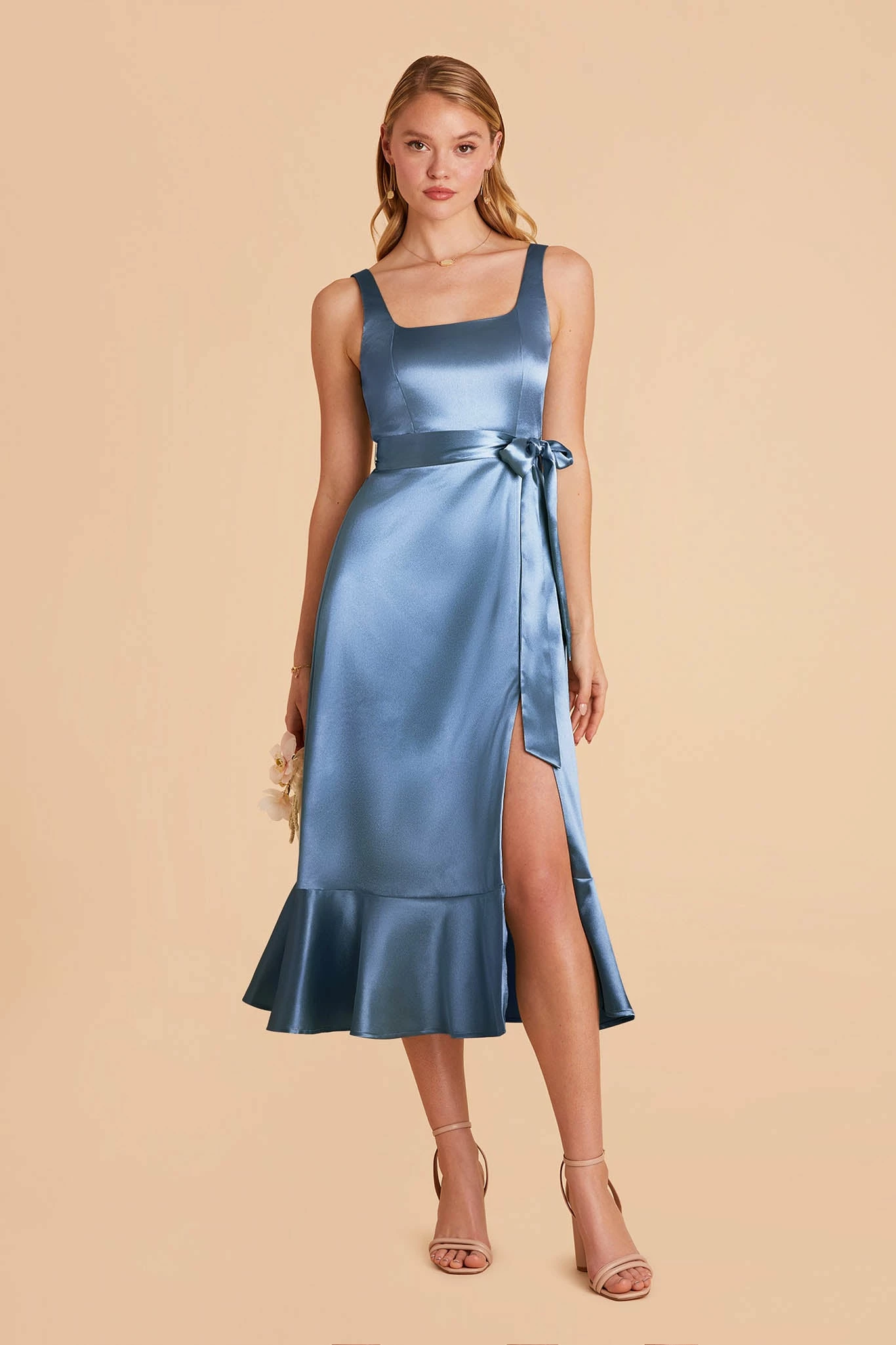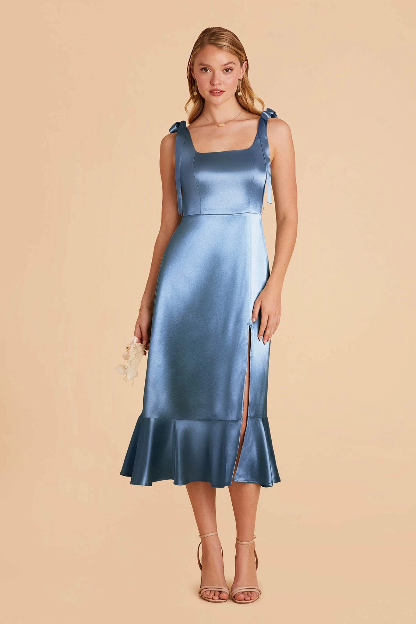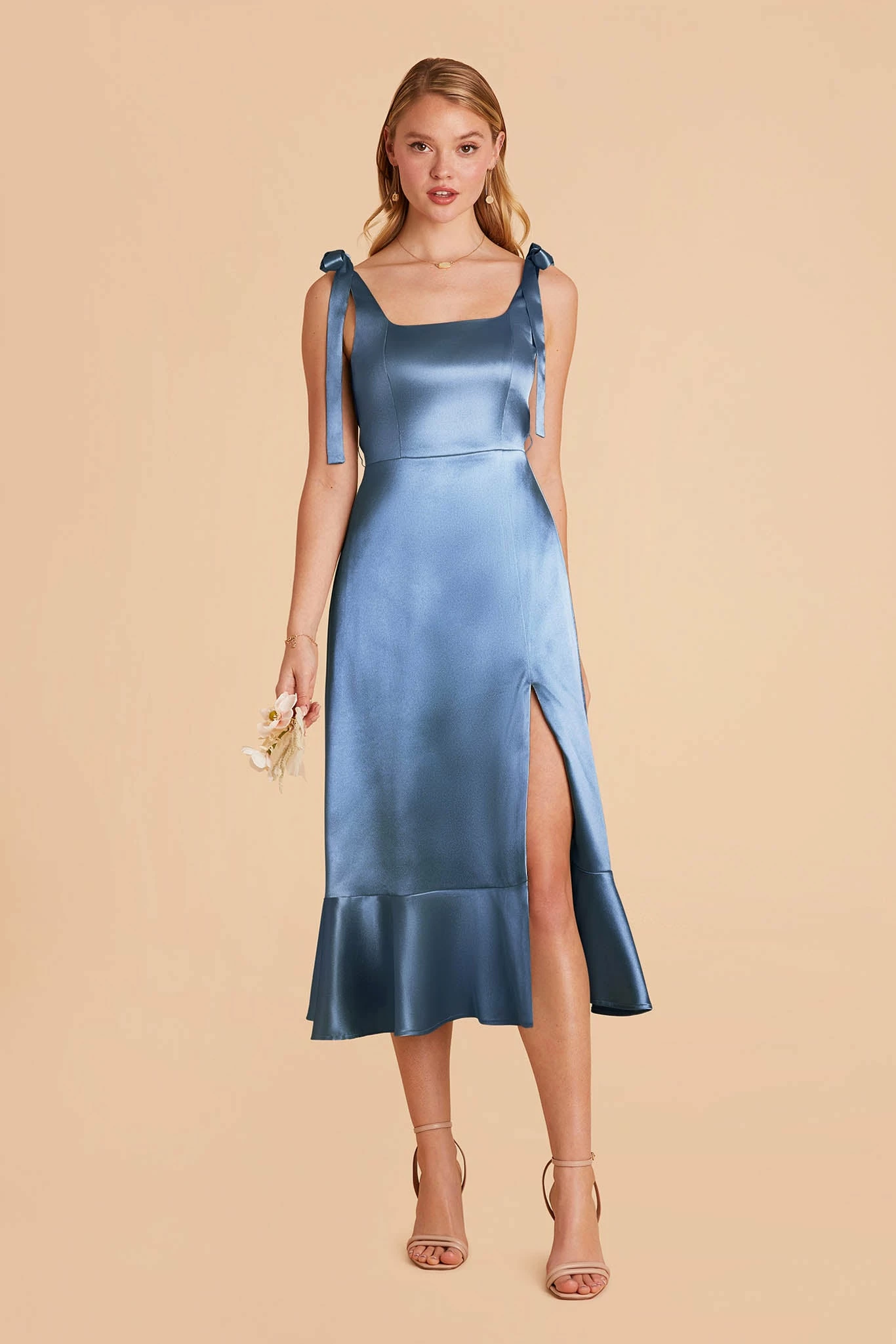 A convertible pinafore-style midi bridesmaid dress is a gorgeous addition to your cottagecore or garden wedding affair.