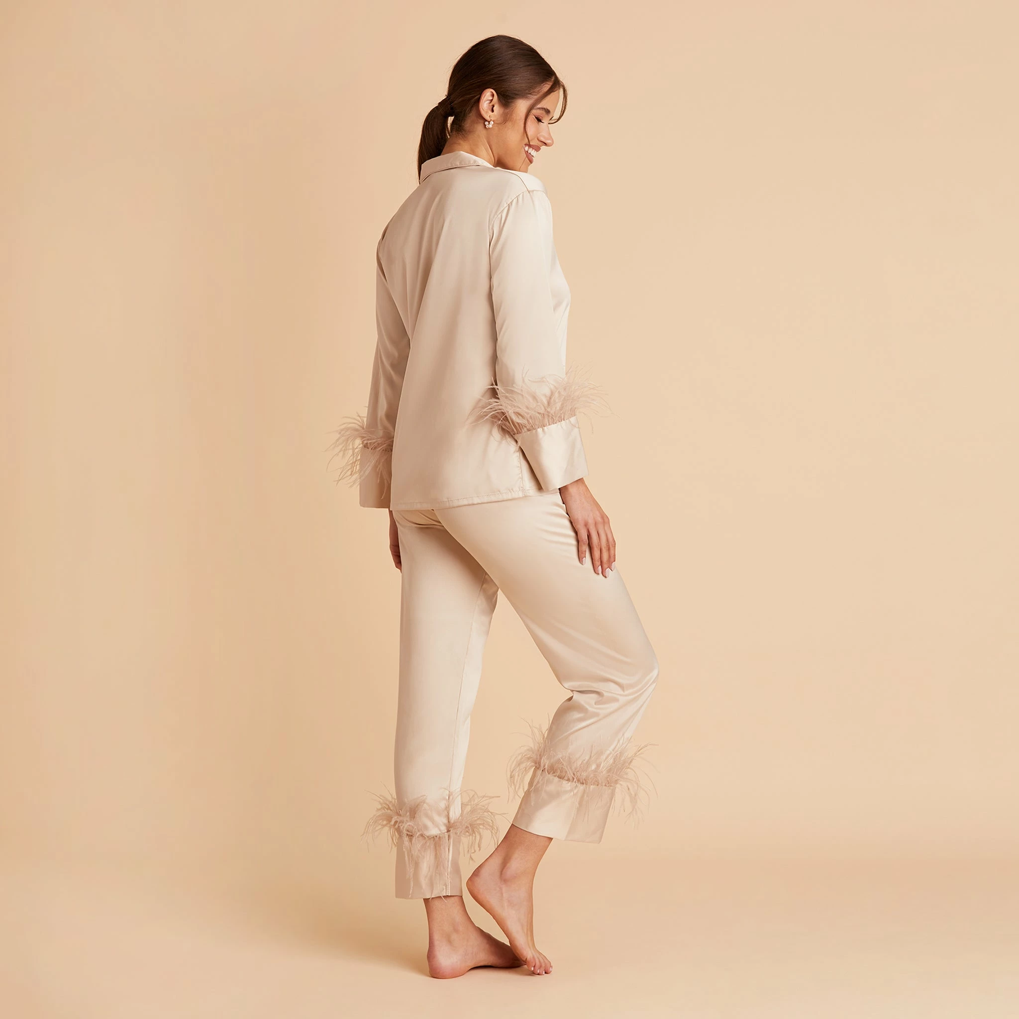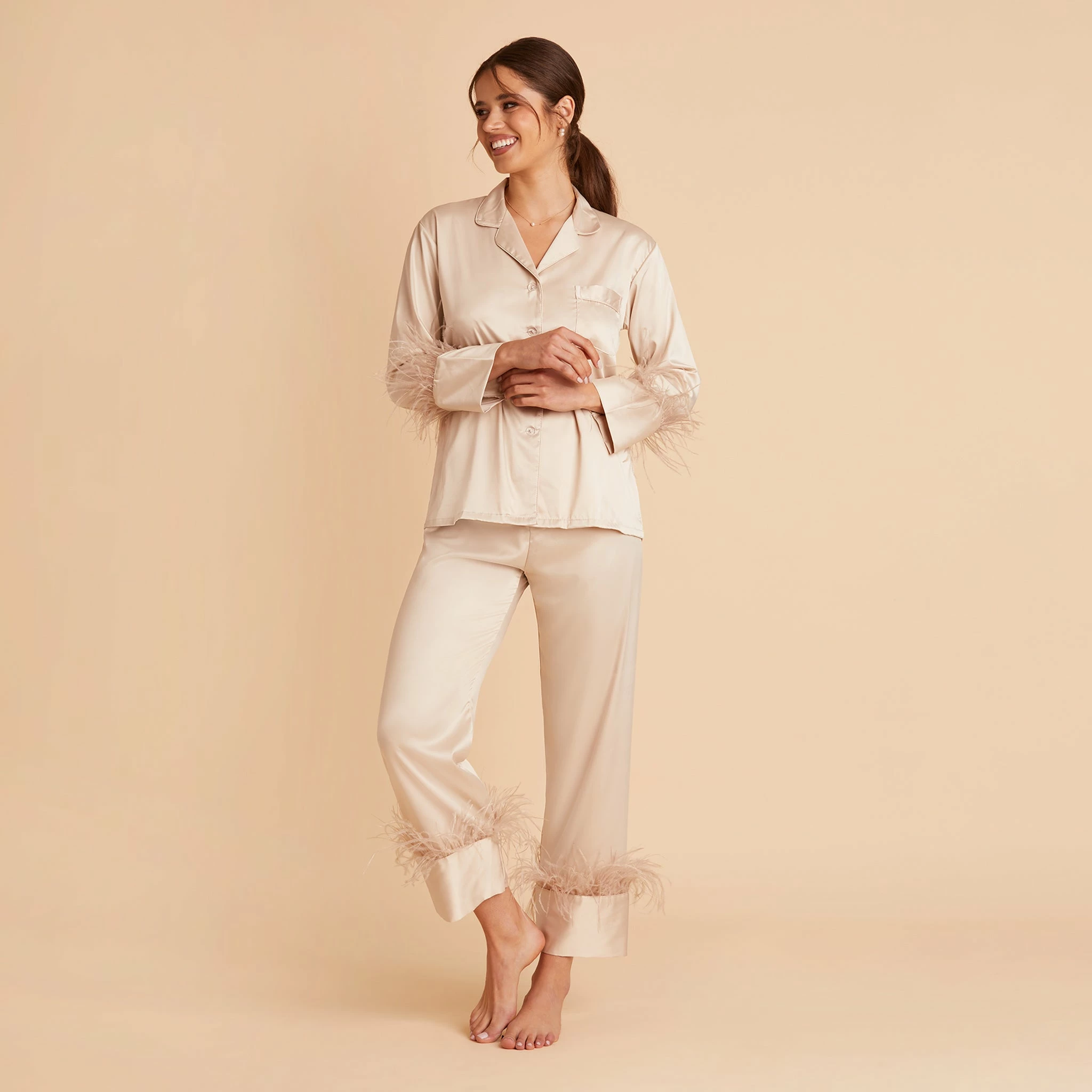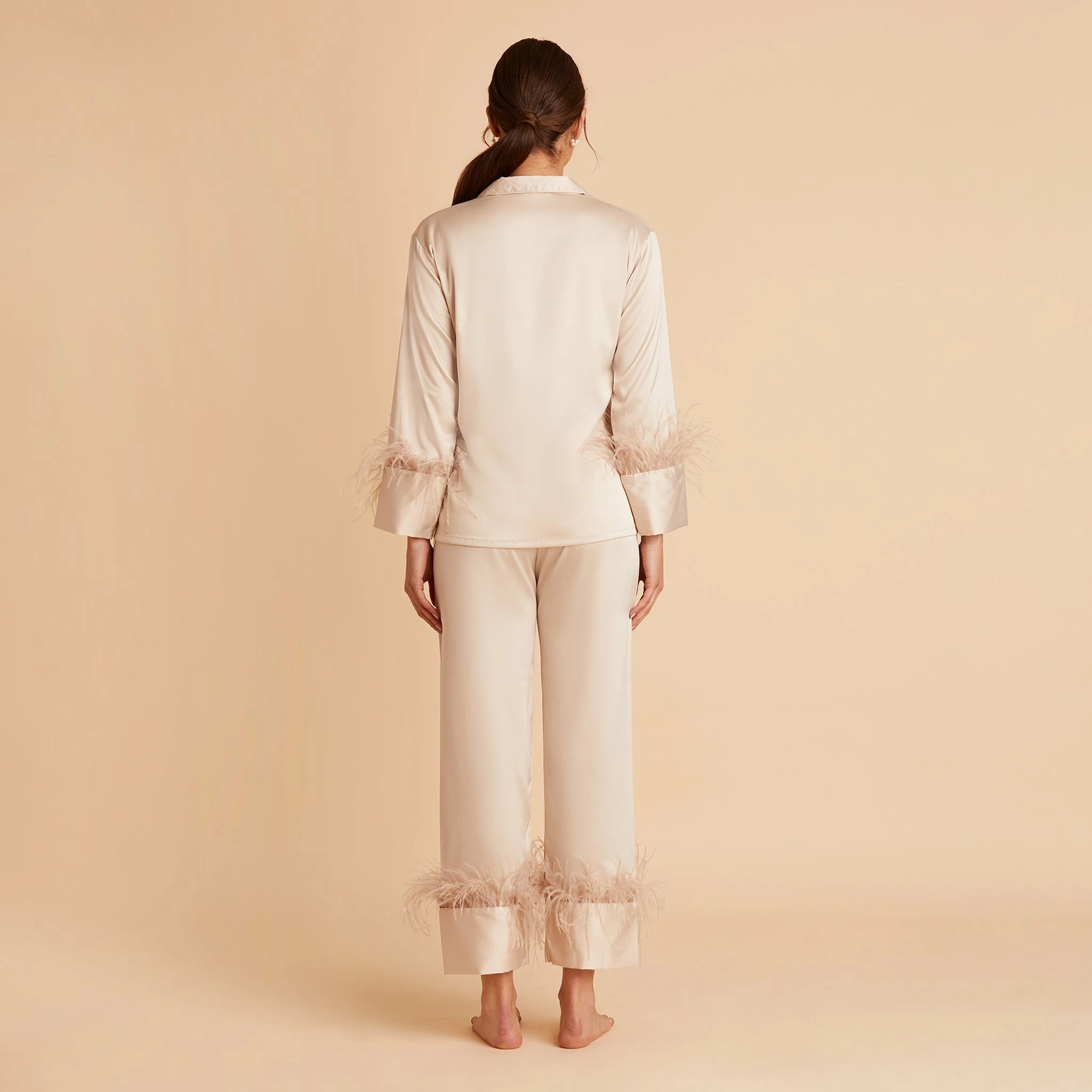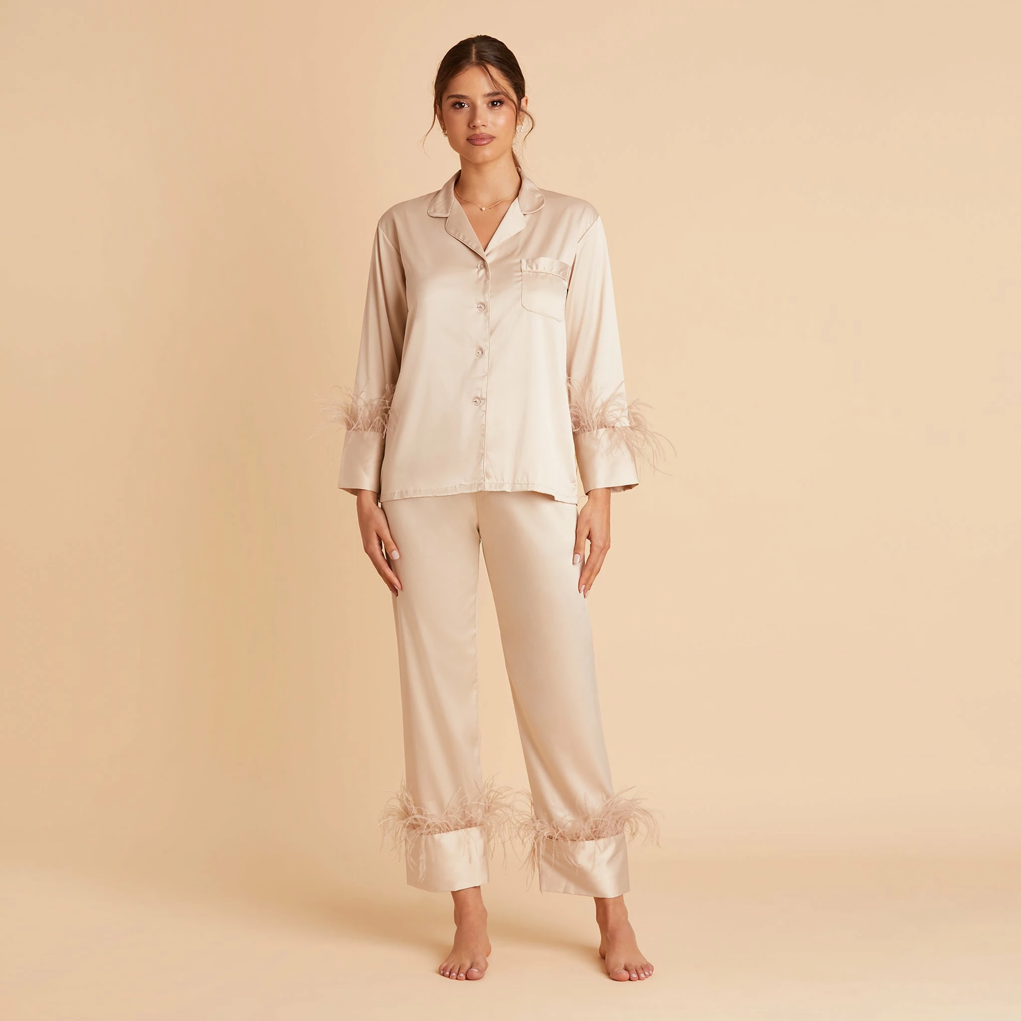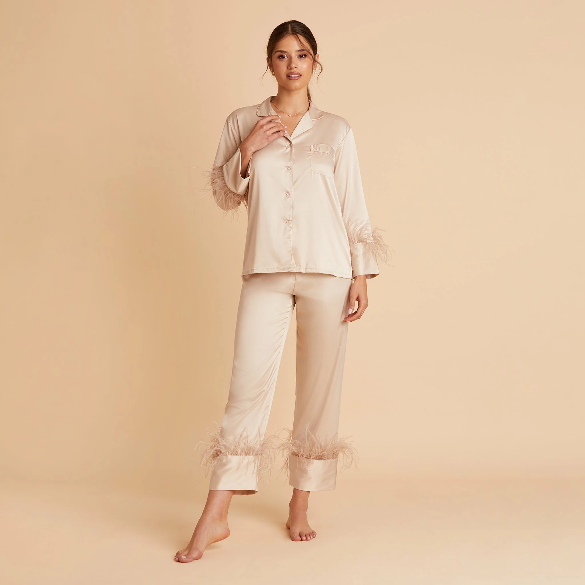 Feathered Pajama Set – Champagne