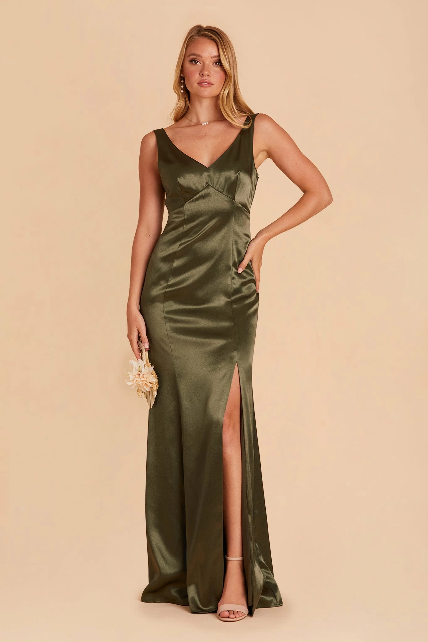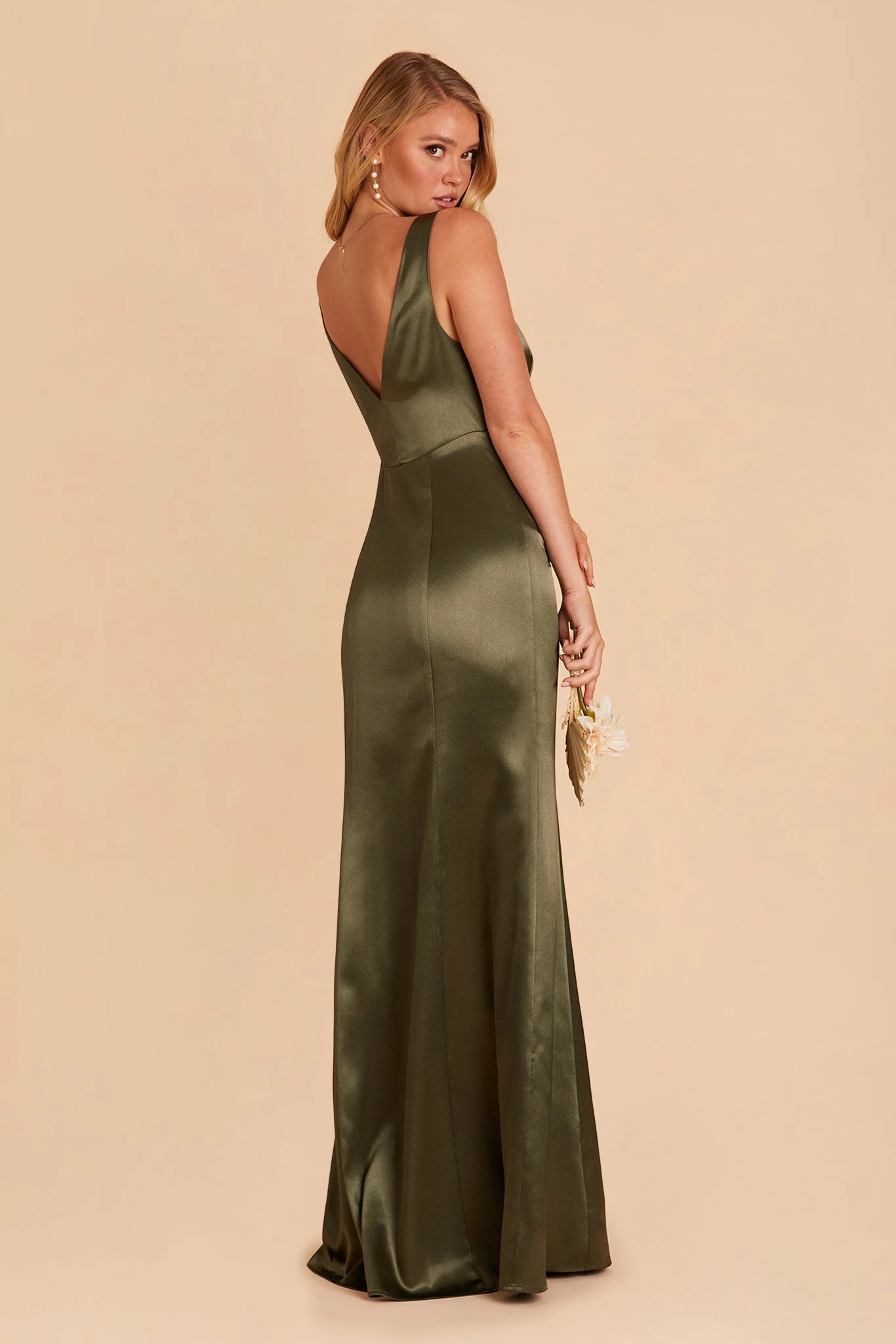 Gloria Shiny Satin Dress – Olive