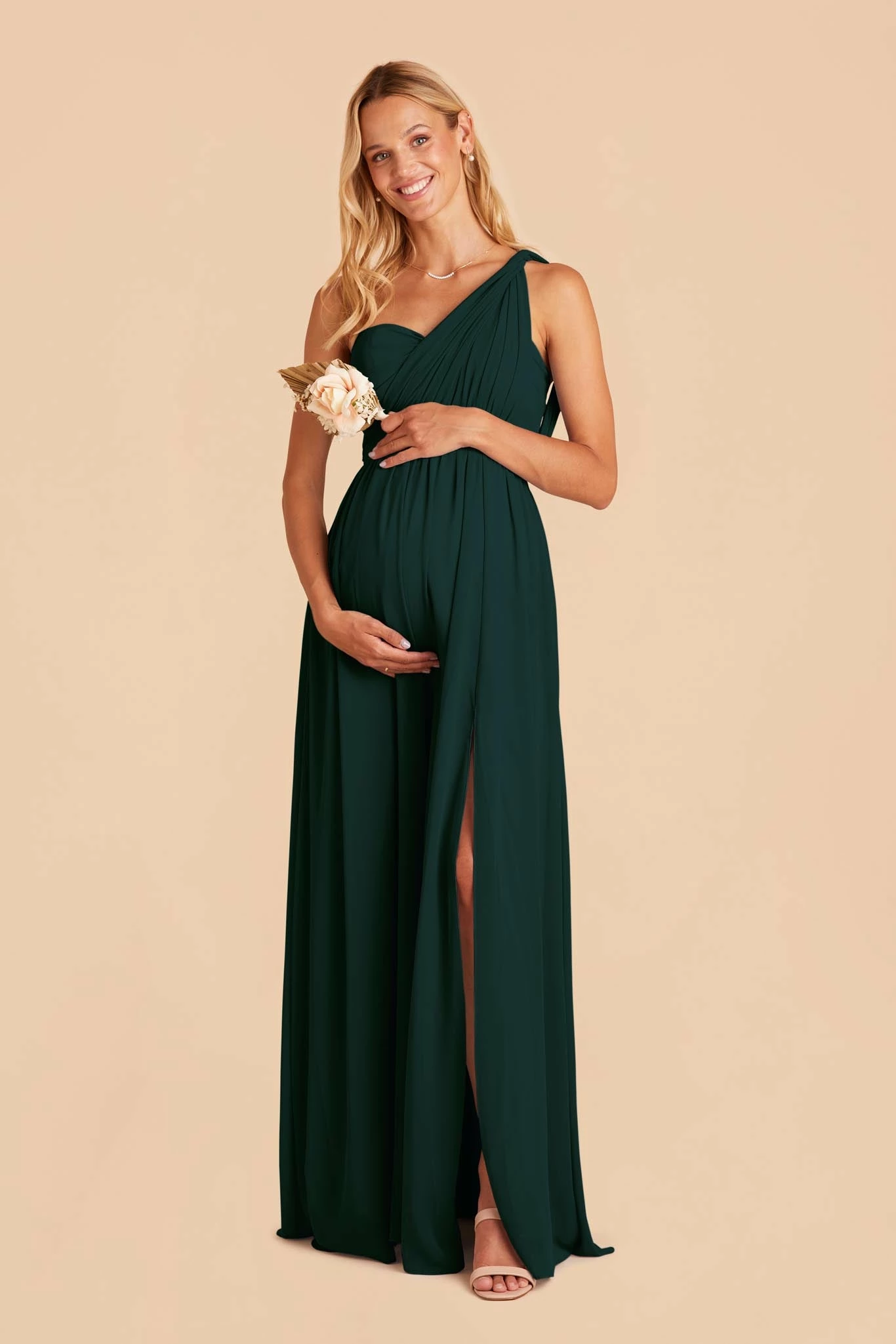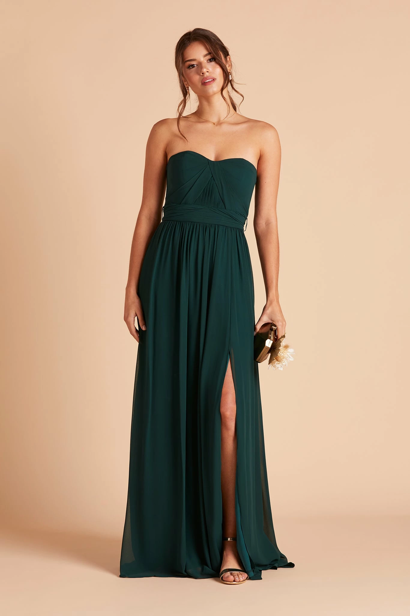 No two bridesmaids are alike and the Grace Convertible bridesmaid dress is your easiest solution for making the entire bridal squad happy—it’s no wonder why it’s our top-selling gown! Spun of airy chiffon, this multiwear bridesmaid dress comes with two long front streamers that you can tie in tons of different ways (halter, fluttery sleeves, off-the-shoulder—you name it). Plus, it features hidden pockets deep enough to hold your phone, tissues, and pins. Float down the aisle in this convertible bridesmaid dress that sways with your every movement.