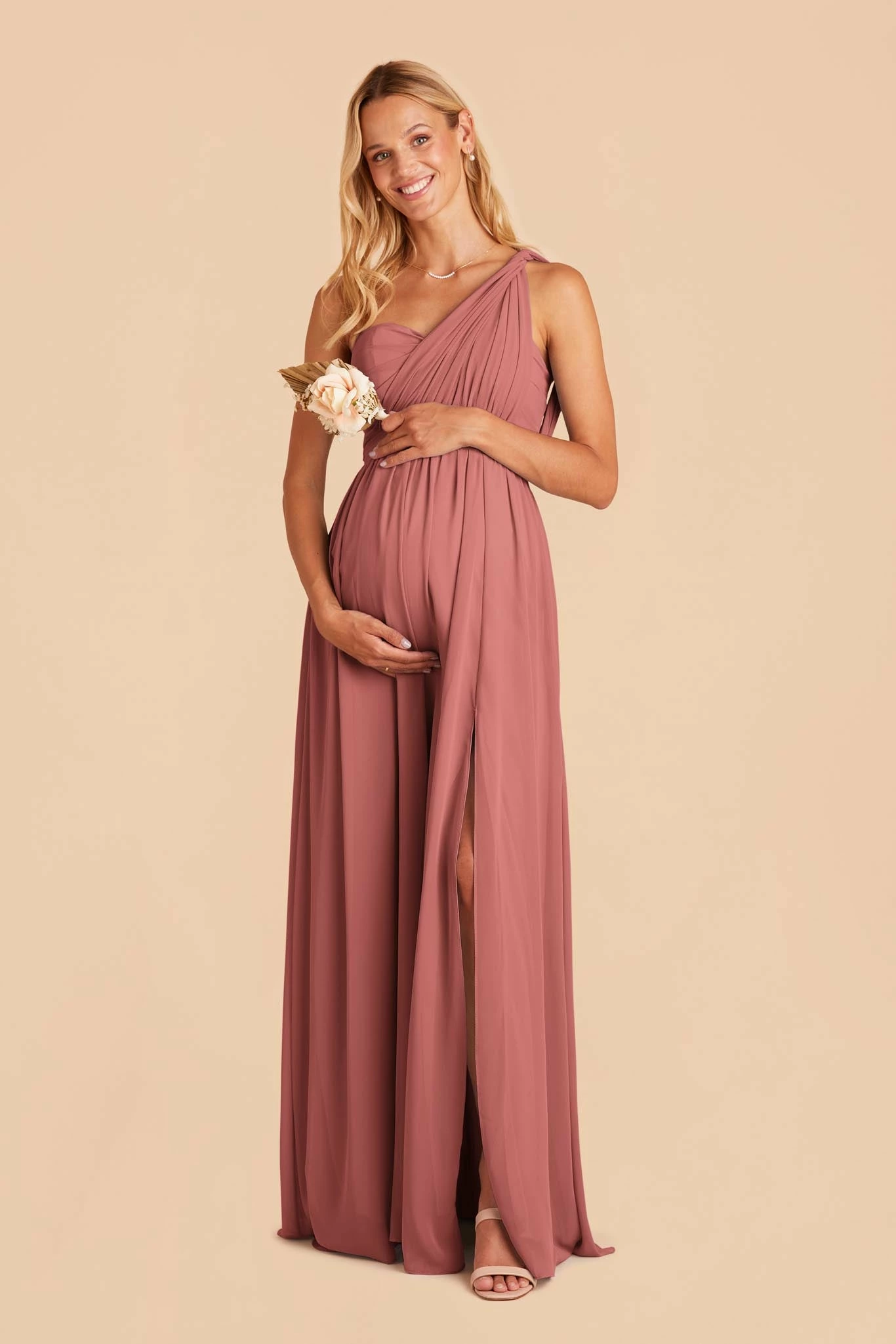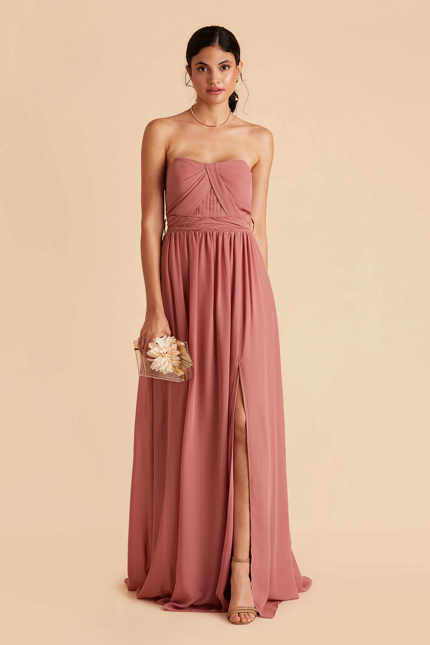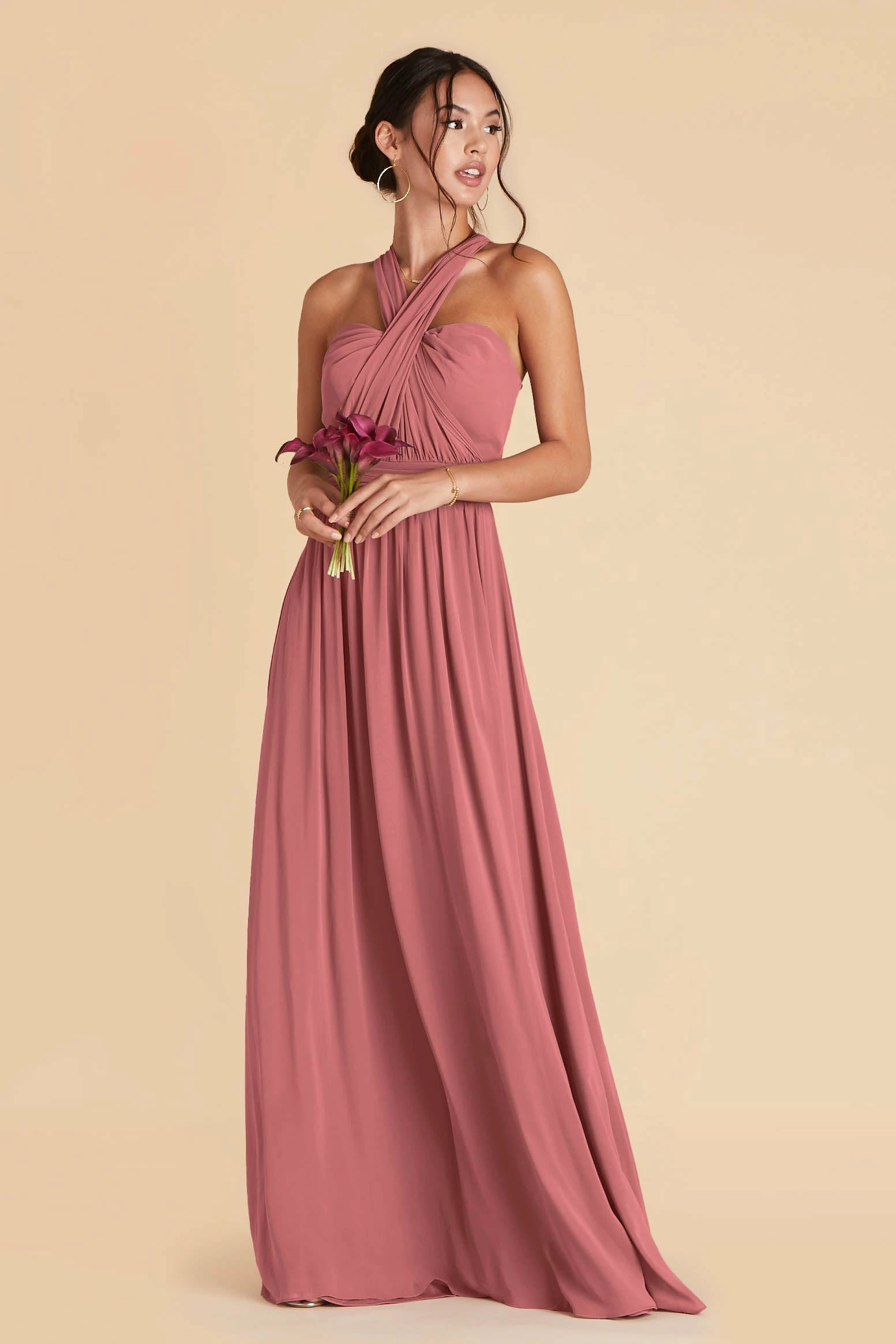 No two bridesmaids are alike and the Grace Convertible bridesmaid dress is your easiest solution for making the entire bridal squad happy—it’s no wonder why it’s our top-selling gown! Spun of airy chiffon, this multiwear bridesmaid dress comes with two long front streamers that you can tie in tons of different ways (halter, fluttery sleeves, off-the-shoulder—you name it). Plus, it features hidden pockets deep enough to hold your phone, tissues, and pins. Float down the aisle in this convertible bridesmaid dress that sways with your every movement.