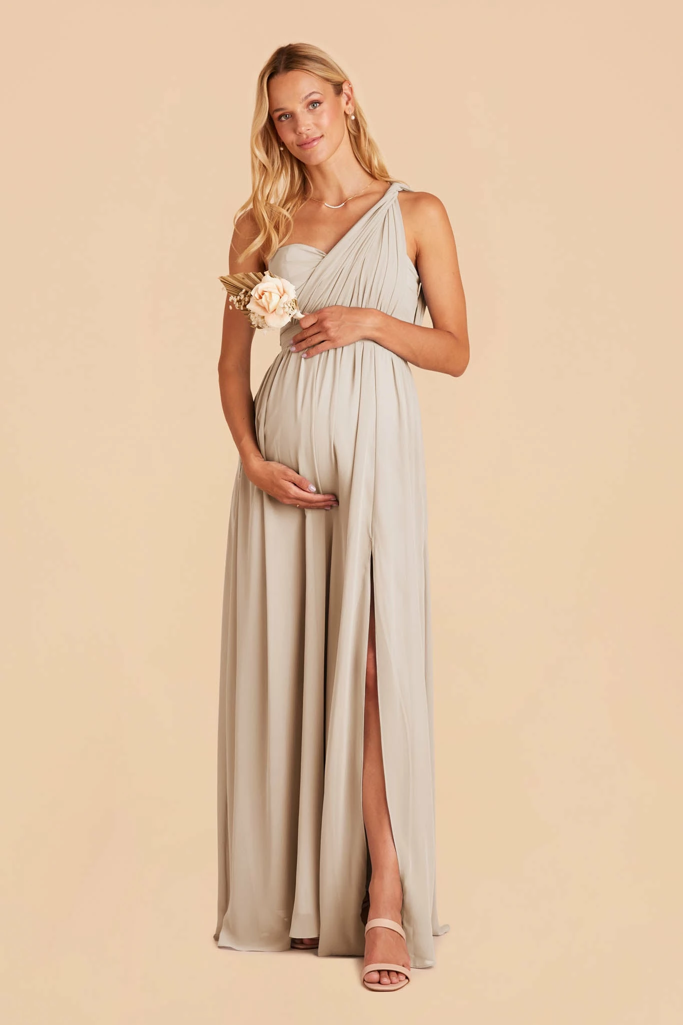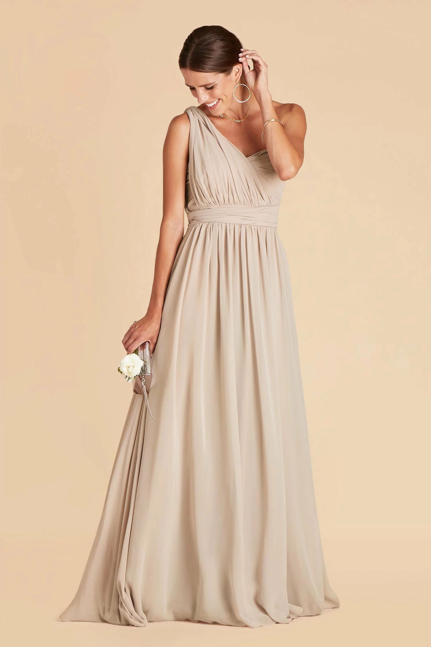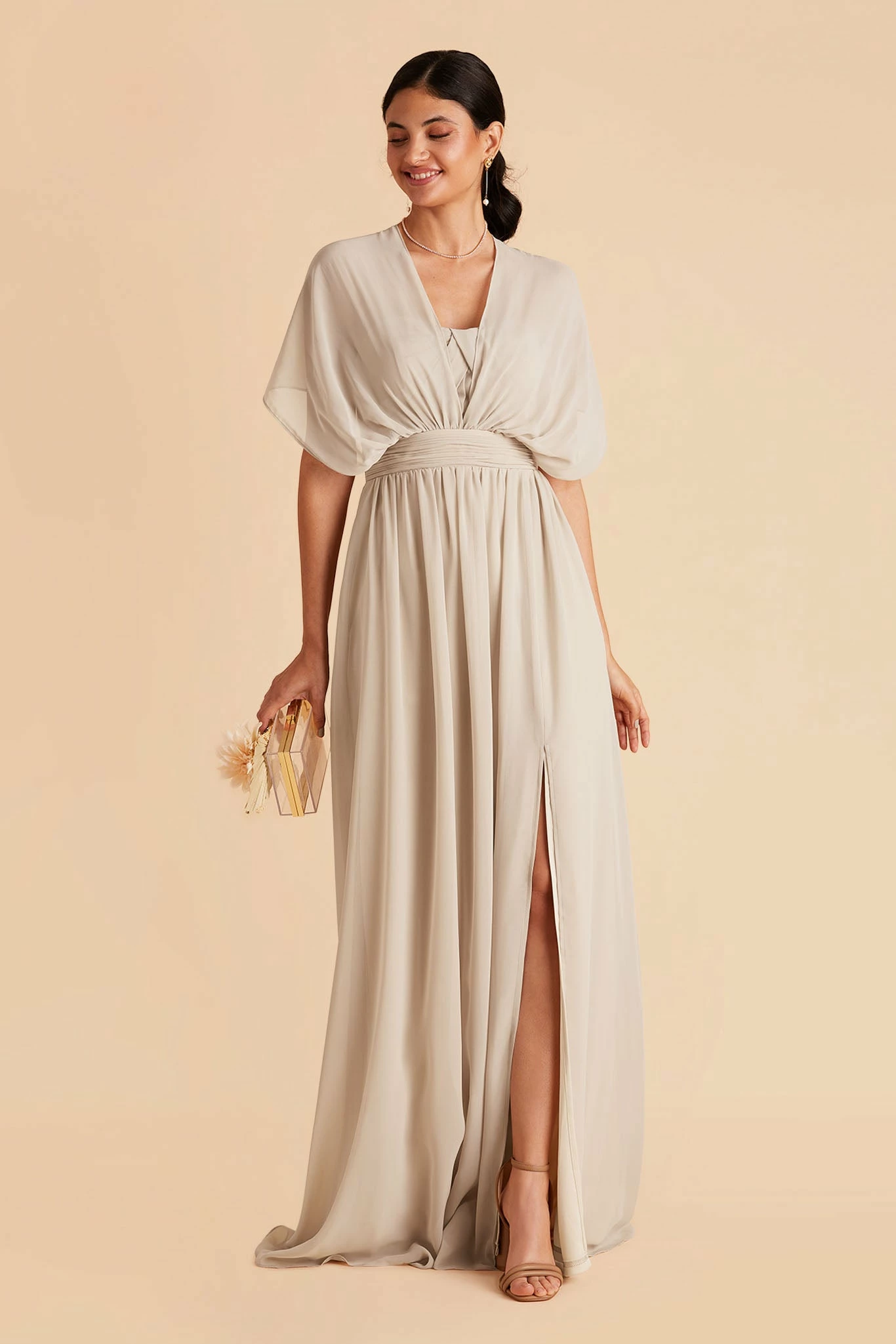 No two bridesmaids are alike and the Grace Convertible bridesmaid dress is your easiest solution for making the entire bridal squad happy—it’s no wonder why it’s our top-selling gown! Spun of airy chiffon, this multiwear bridesmaid dress comes with two long front streamers that you can tie in tons of different ways (halter, fluttery sleeves, off-the-shoulder—you name it). Plus, it features hidden pockets deep enough to hold your phone, tissues, and pins. Float down the aisle in this convertible bridesmaid dress that sways with your every movement.