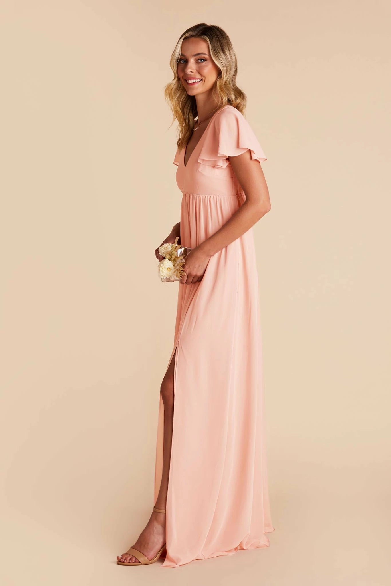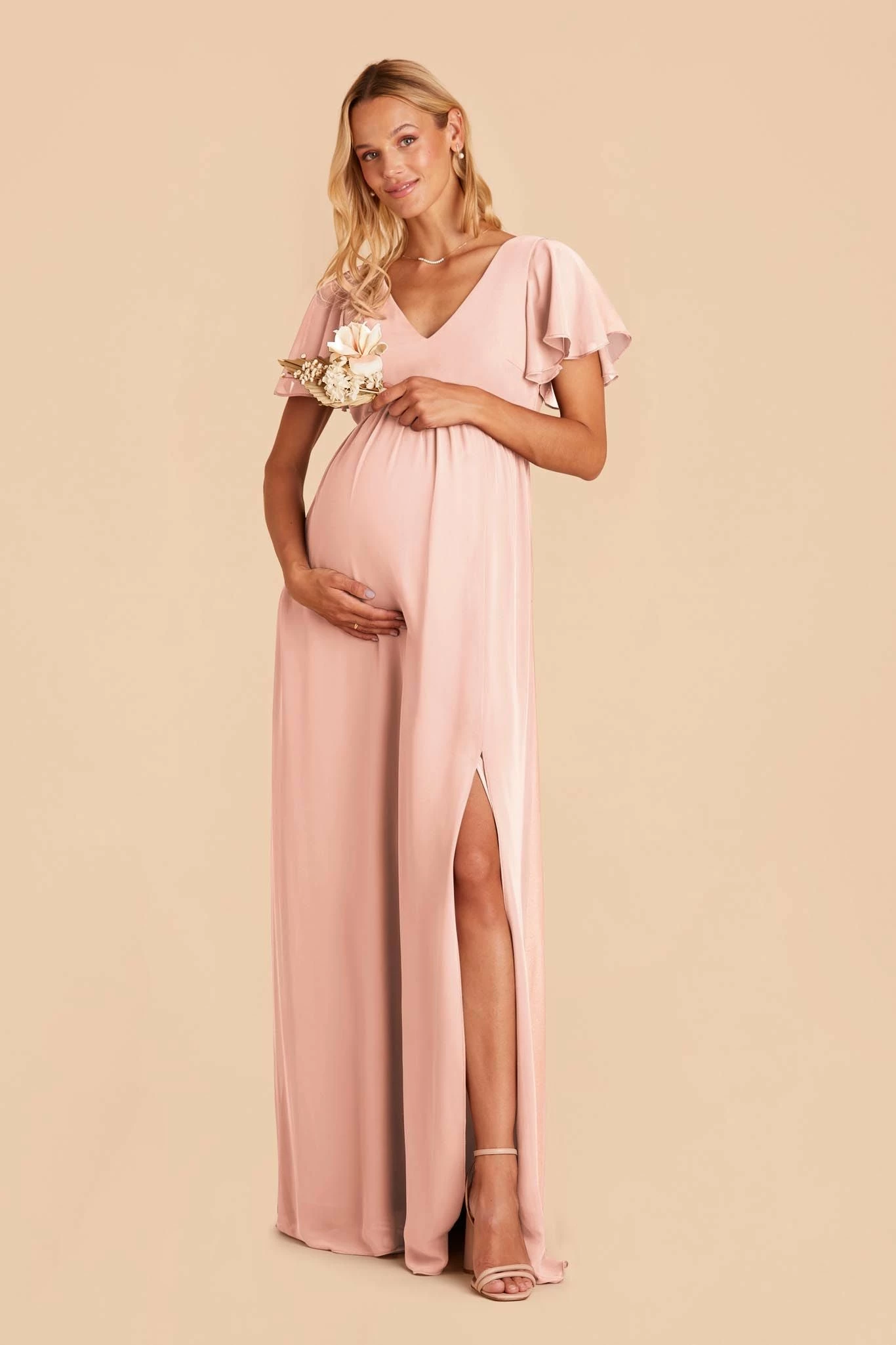 Whatever you need that extra wiggle room for—a baby bump, a second helping, extra cake, or if you simply prefer more breathing room, Hannah is the girl for you. Spun of lightweight chiffon, this dress won’t ever weigh you down while floating down the aisle or getting down on the dancefloor (no one said a bump should keep you from having fun!). The key here is the raised empire waist fitted with a stretchy elastic that’s especially great news for expecting moms. The flutter sleeves add a sweet touch while also offering comfy arm coverage.