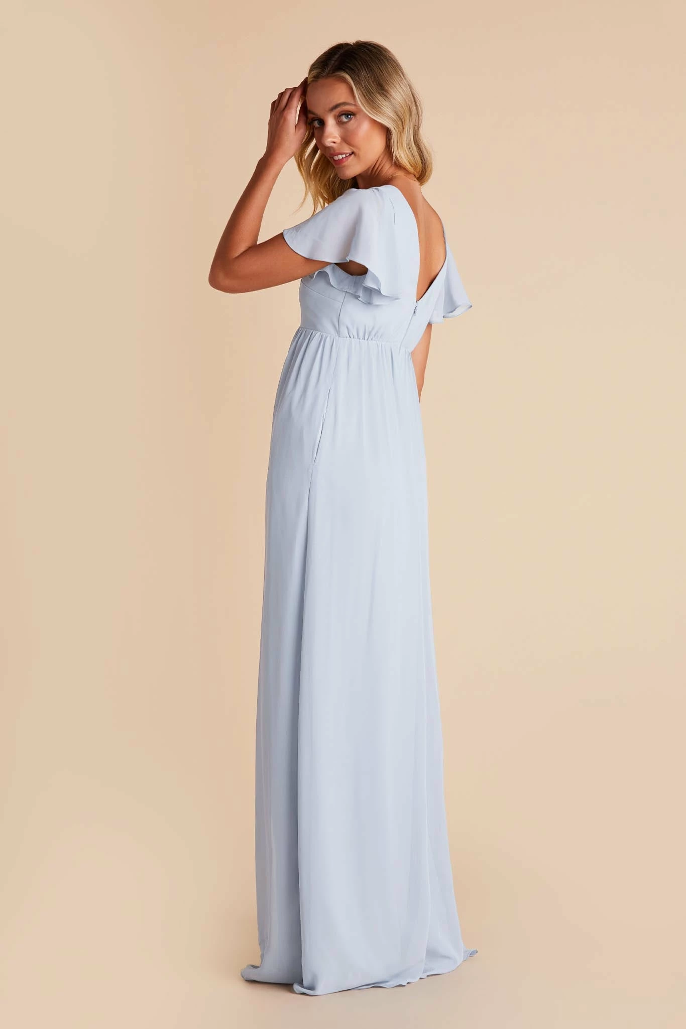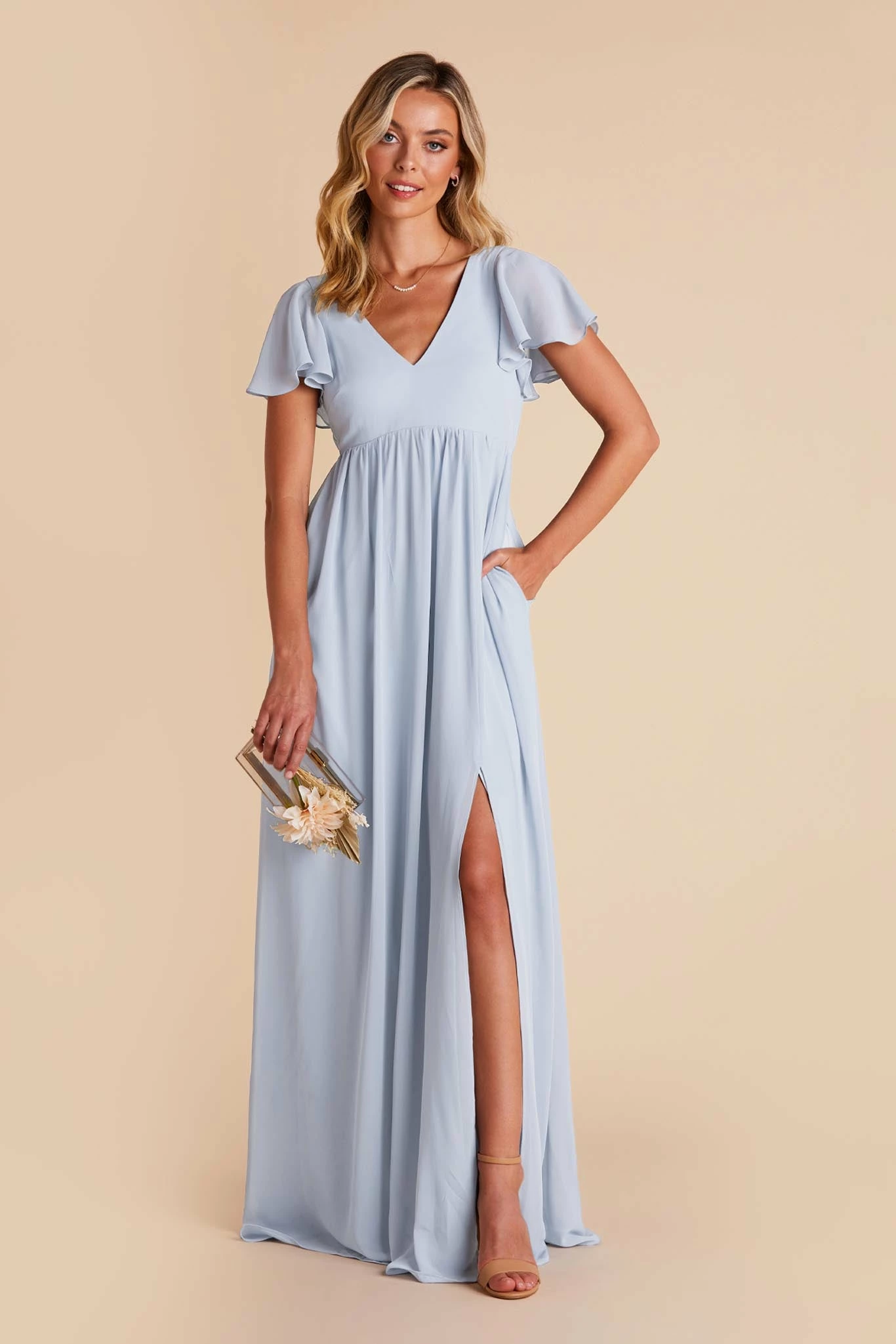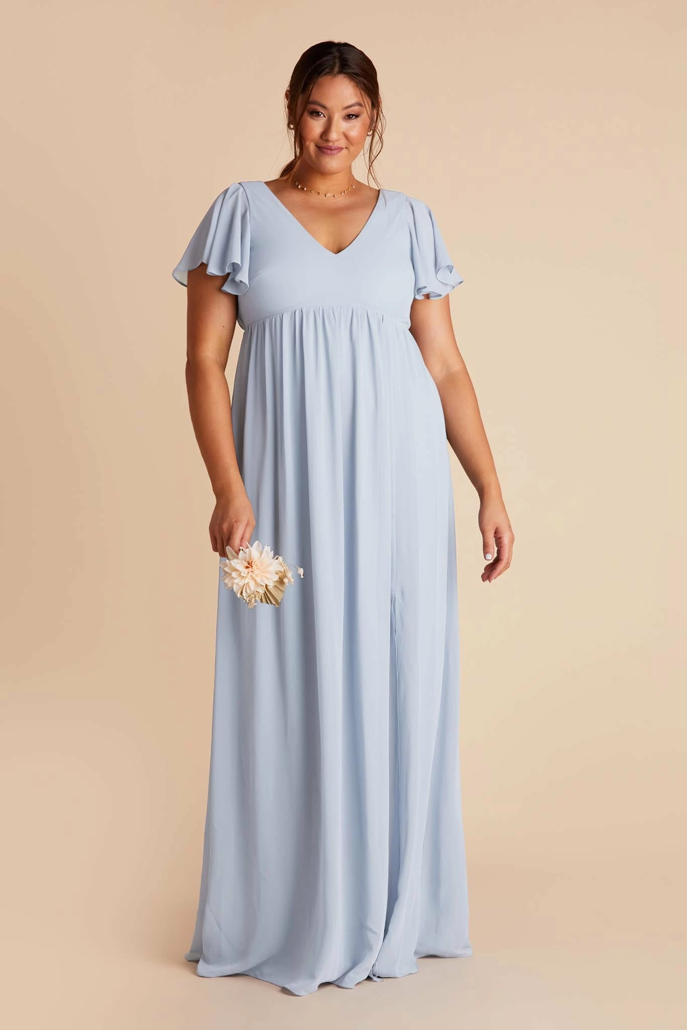 Whatever you need that extra wiggle room for—a baby bump, a second helping, extra cake, or if you simply prefer more breathing room, Hannah is the girl for you. Spun of lightweight chiffon, this dress won’t ever weigh you down while floating down the aisle or getting down on the dancefloor (no one said a bump should keep you from having fun!). The key here is the raised empire waist fitted with a stretchy elastic that’s especially great news for expecting moms. The flutter sleeves add a sweet touch while also offering comfy arm coverage.