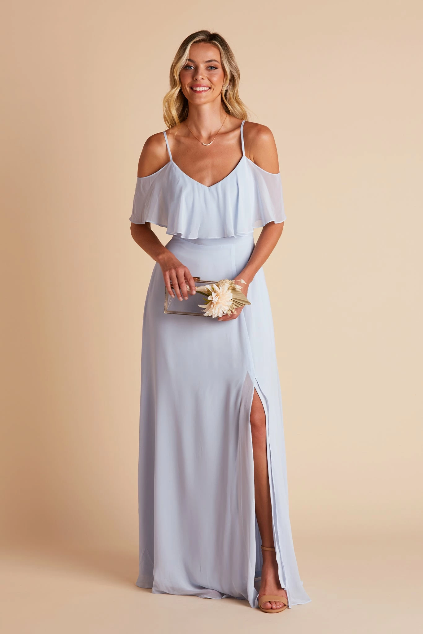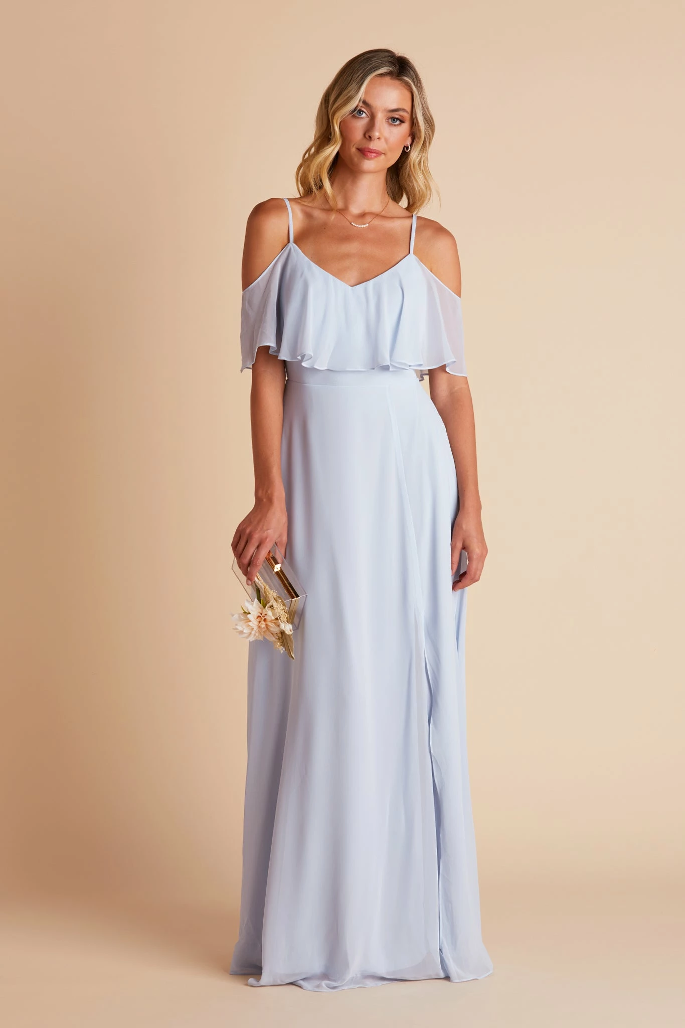 You’ll be floating down the aisle with this floor-grazing chiffon bridesmaid dress that you can wear 3 different ways. Go for an off-the-shoulder look for something a little trendy that also gives you some arm coverage. Can’t be bothered with sleeves? Tuck them under your arms for a flouncy effect that moves with you. For something a tad more modest, raise the sleeves up to your shoulders for a draped v-neck look.