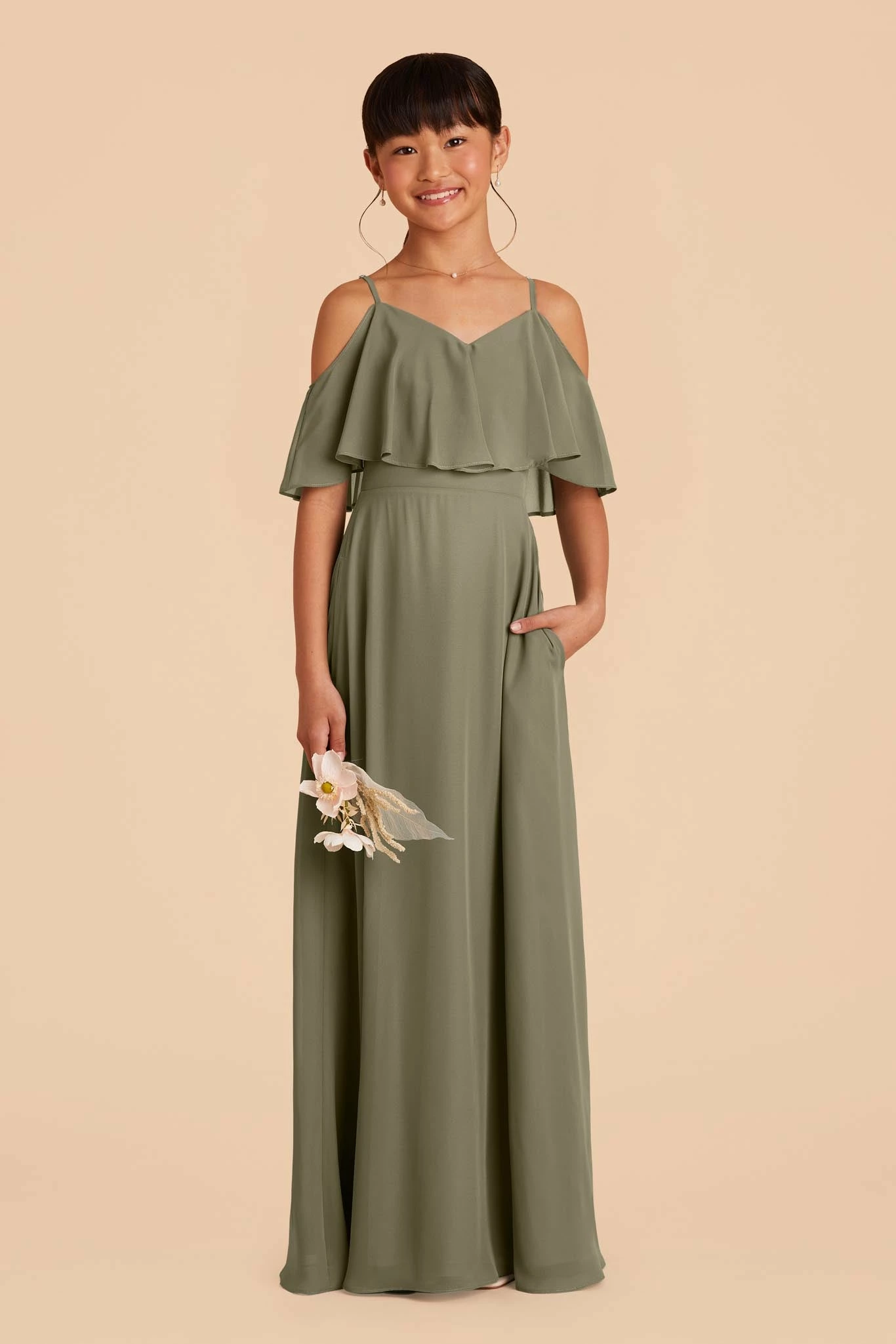 SKU: YMLYZ 7465793519807 Categories: Bridesmaid Dresses, Junior Bridesmaid Dresses Tags: Bfcm23-71, Fabric:chiffon, Moss Green, Returnable