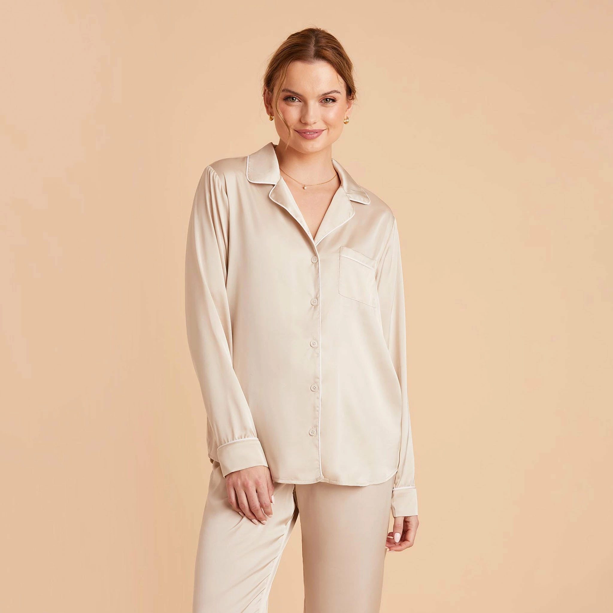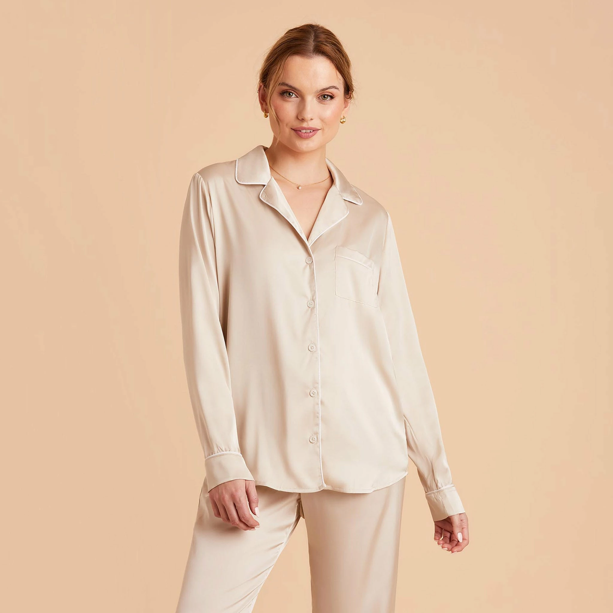 Jonny Long Sleeves And Pants Satin PJ Set – Champagne