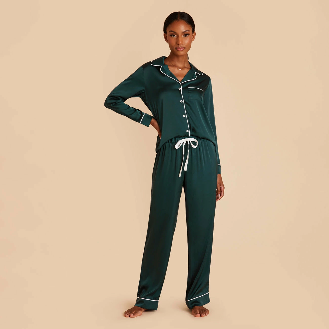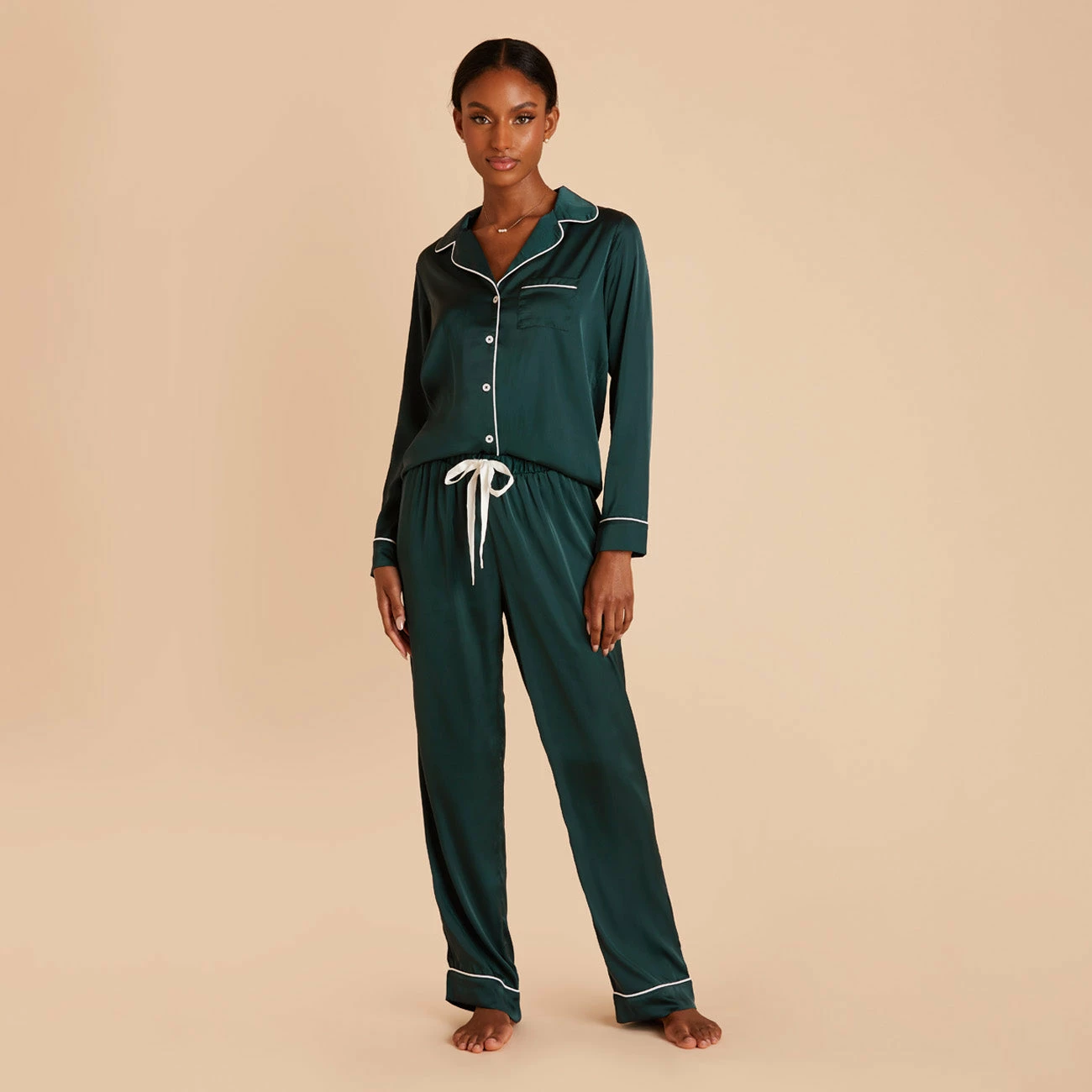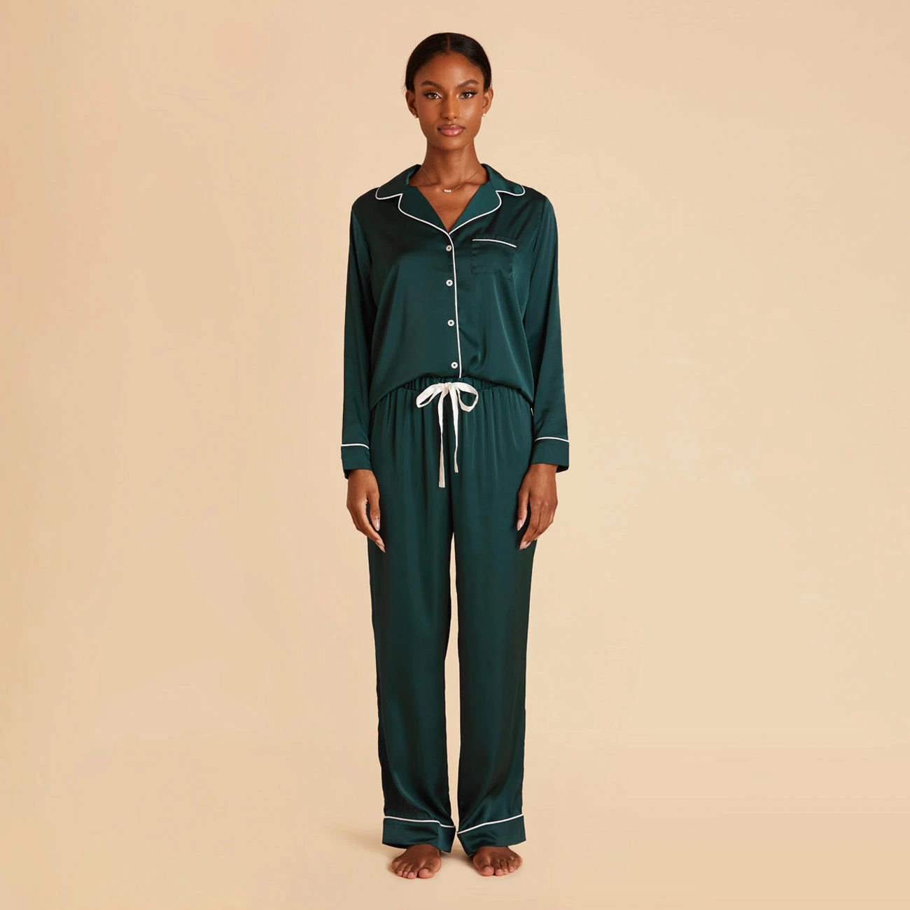 Jonny Long Sleeves And Pants Satin PJ Set – Emerald