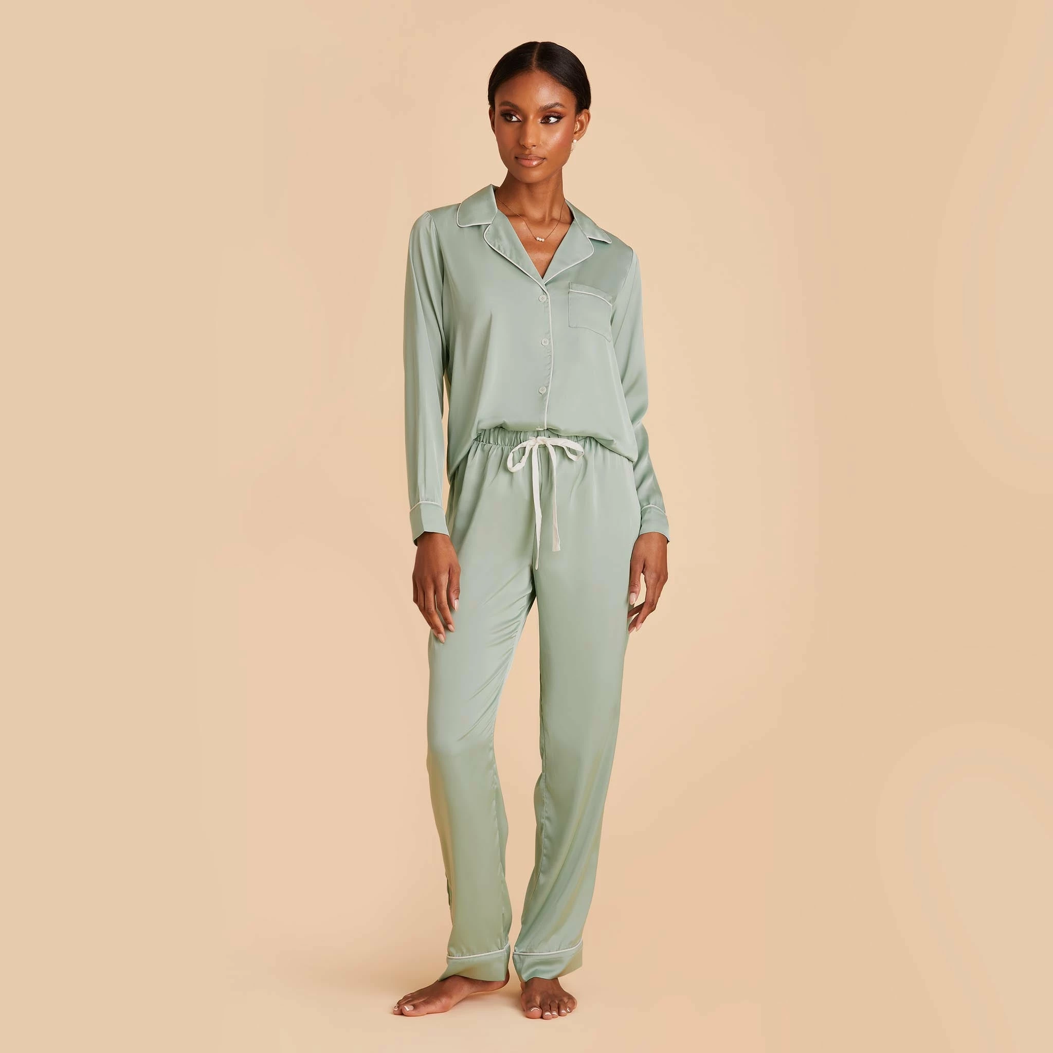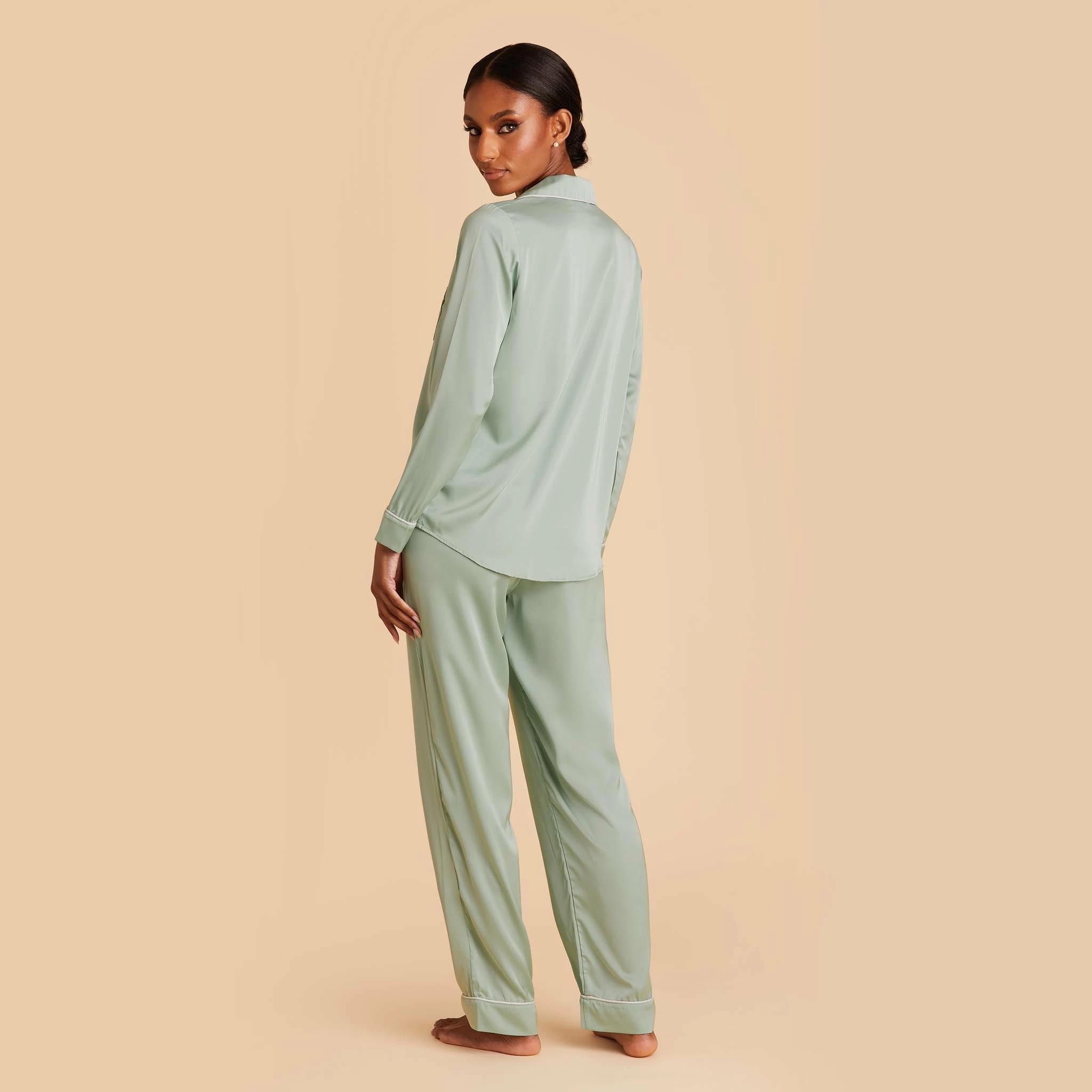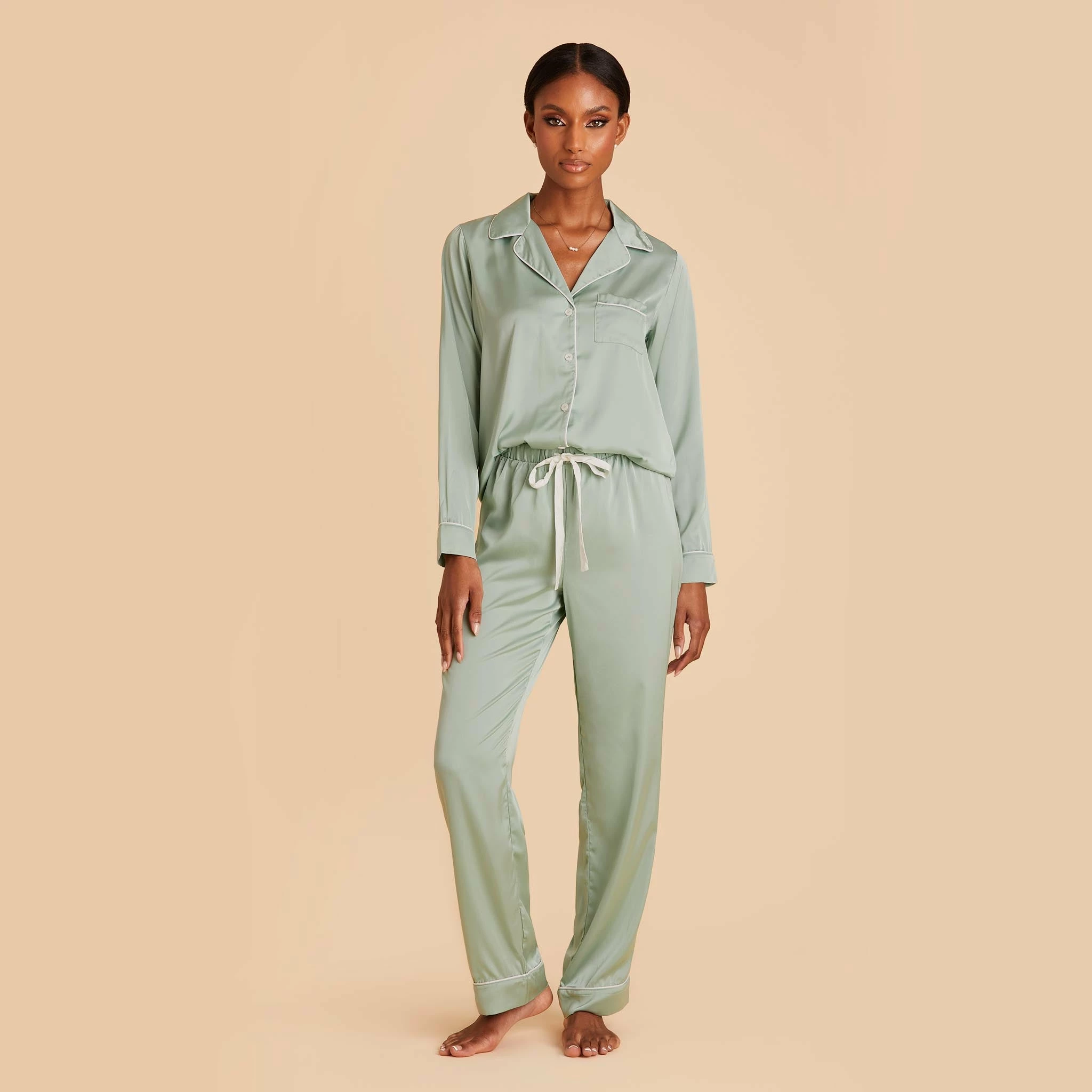 Jonny Long Sleeves And Pants Satin PJ Set – Sage