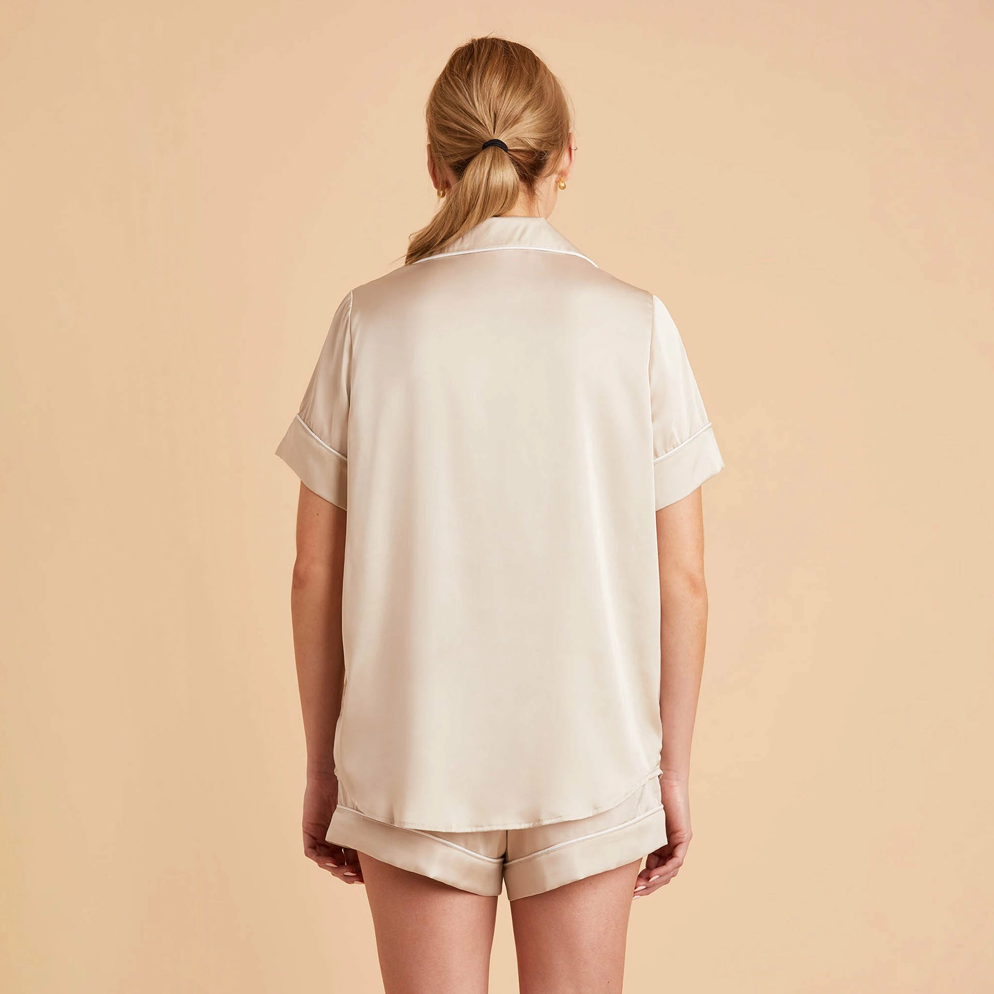 Jonny Satin Short Sleeve Pajama Top – Champagne