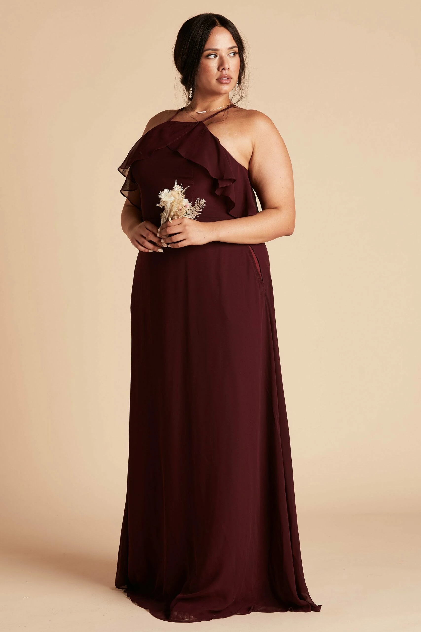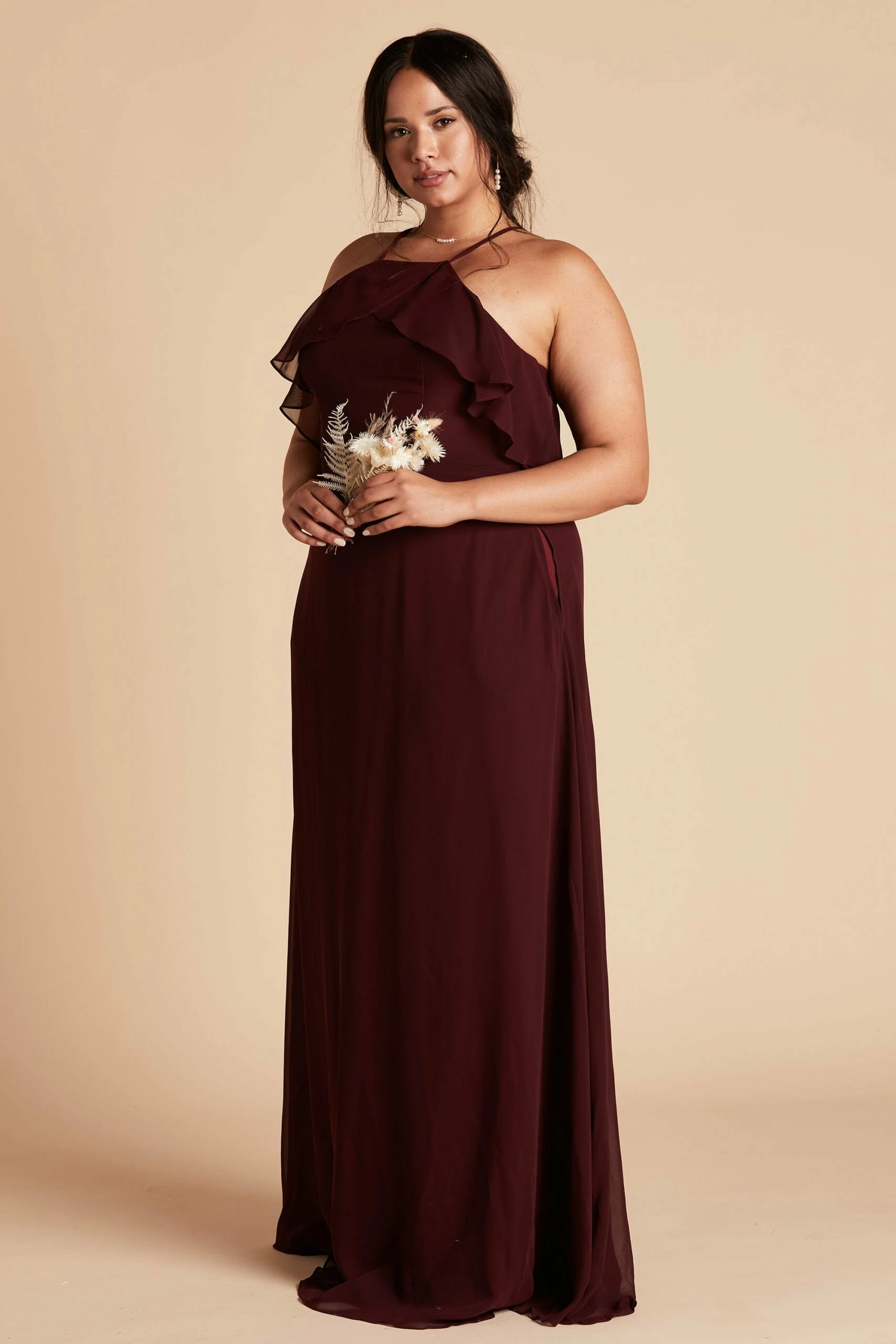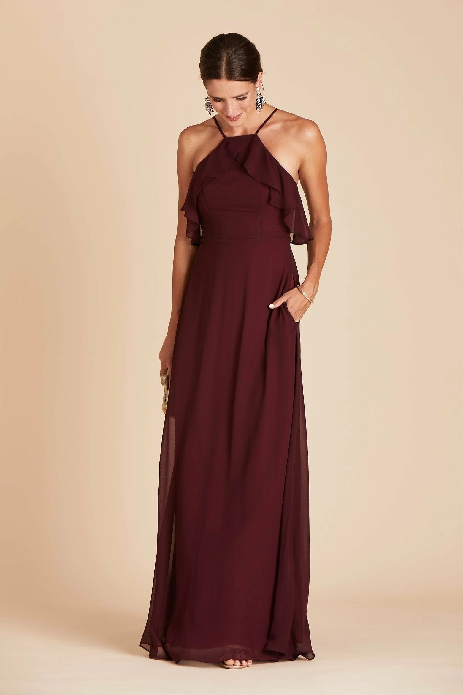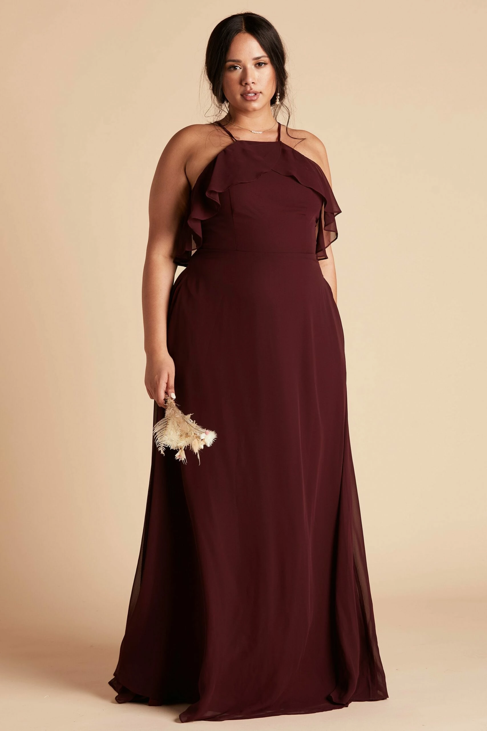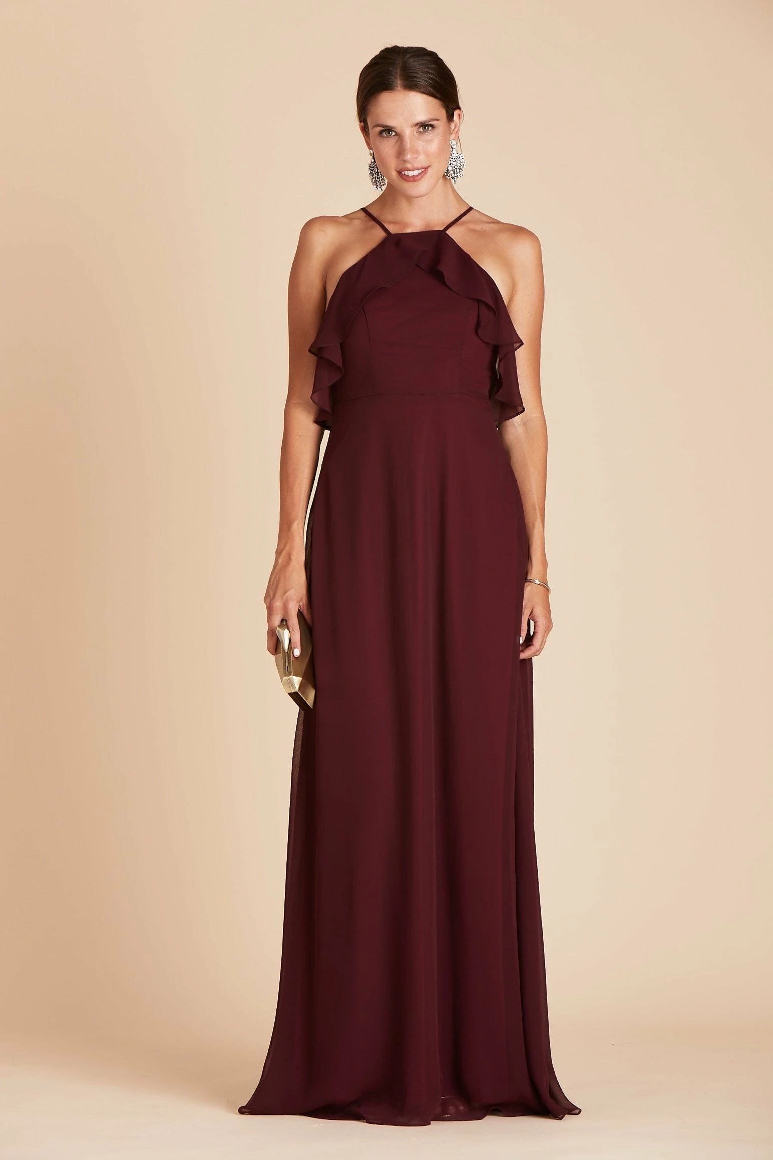 If you’re looking for the quintessential bridal party dress that will make your #BridalSquad glow from the inside out, then you’ve found it. The picture-perfect bridal party dress, that’s sure to compliment every bridesmaid’s shape and style, comes to life in our Jules Dress. It’s masterfully designed with super-soft ruffles, a refreshed halter neckline, and a long free-flowing spun chiffon A-line silhouette that dances against your body while you gleefully dance the night away. The best part? This bridal party dress is sure to please even the pickiest of bridesmaids and features built-in cups for added comfort, extra support, and a boost of self-confidence to keep your spirit high and your girls perky.