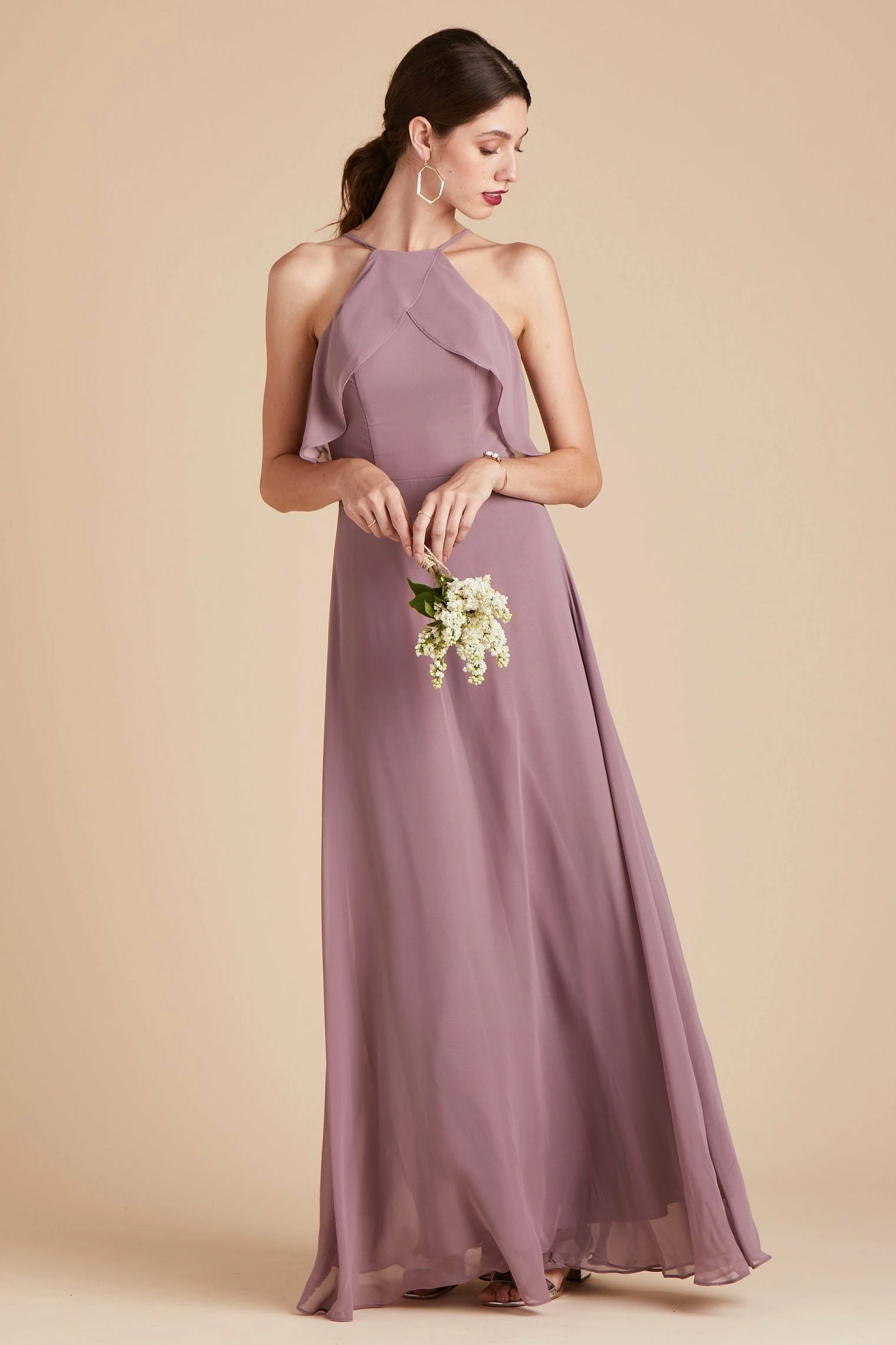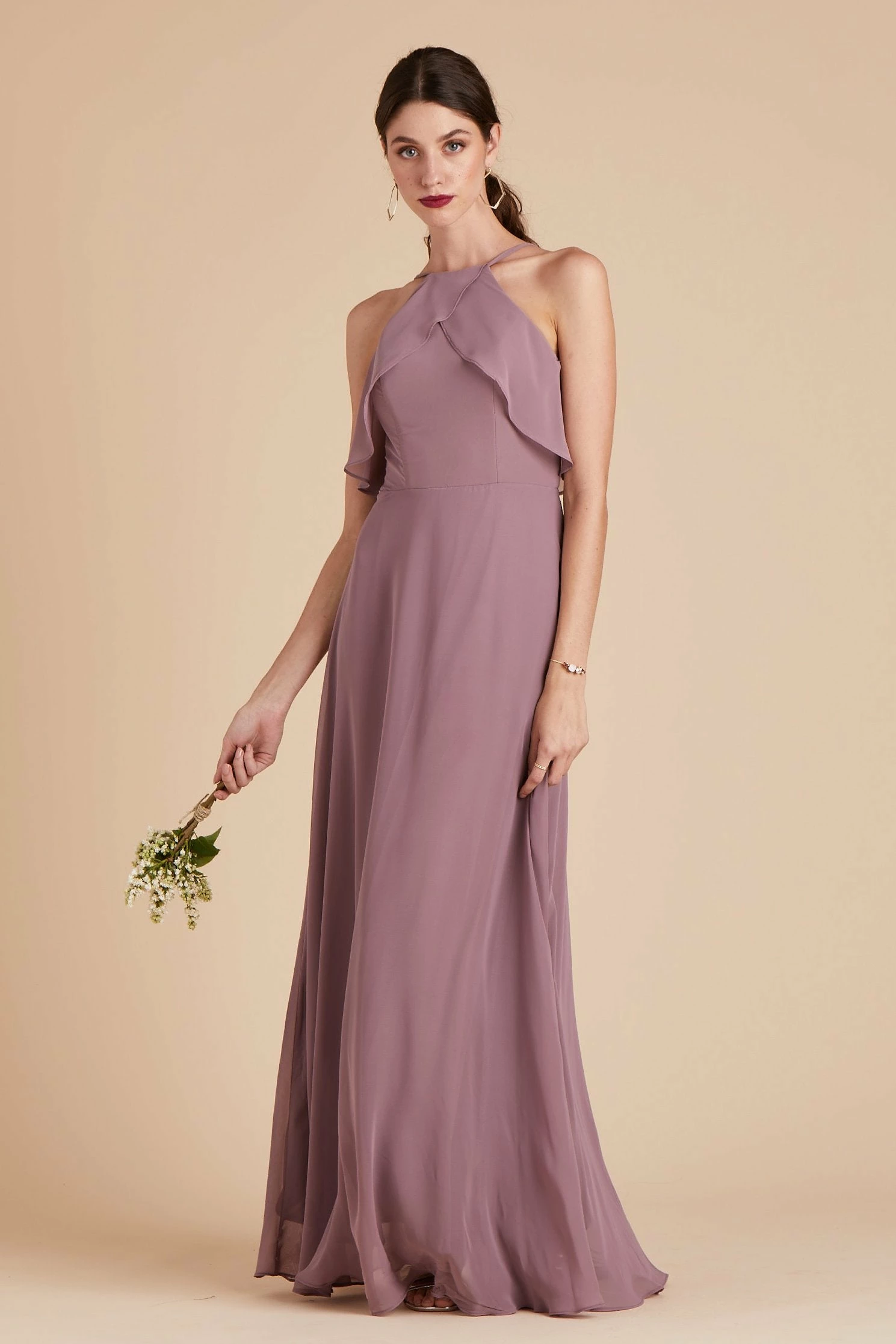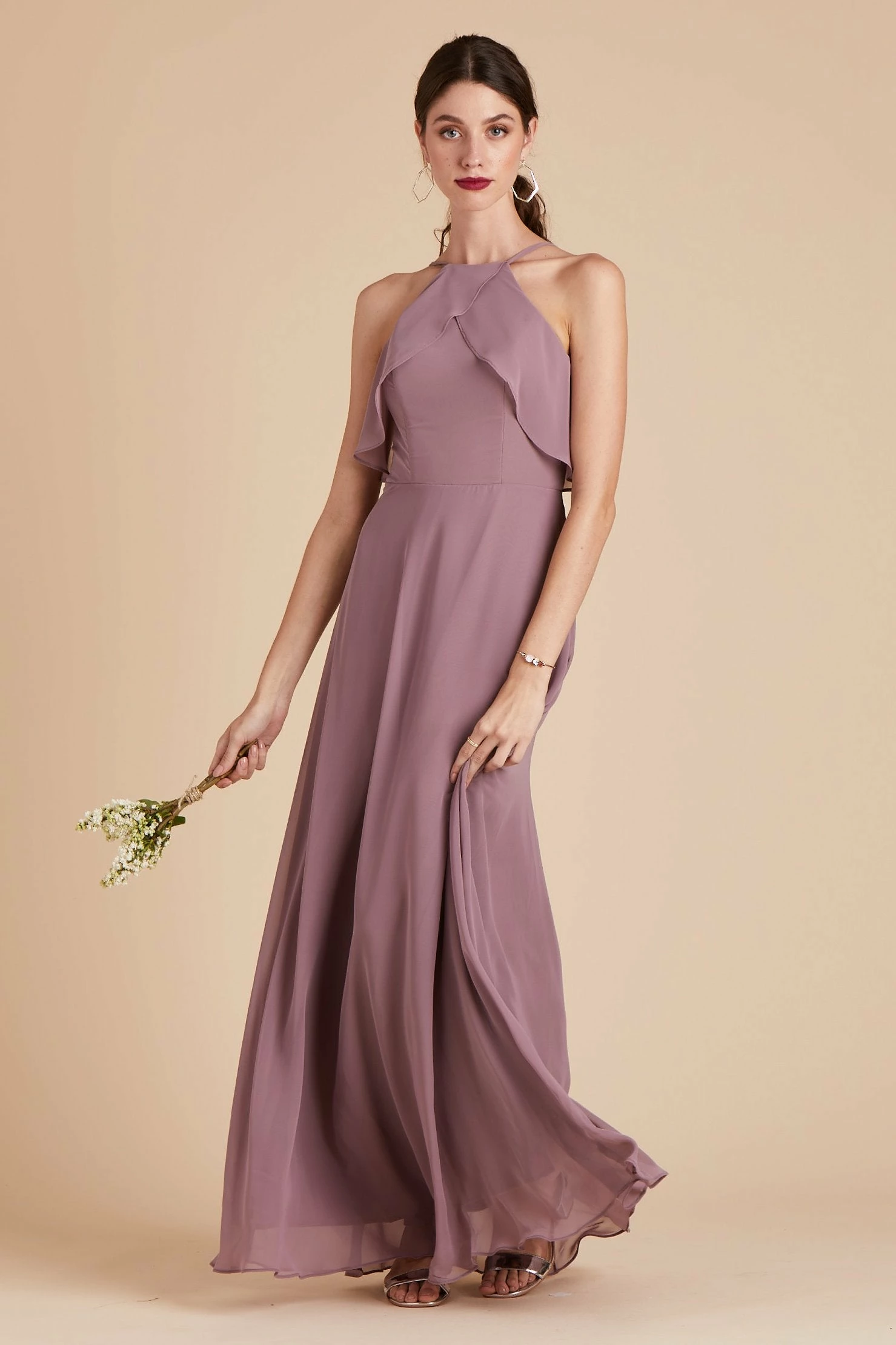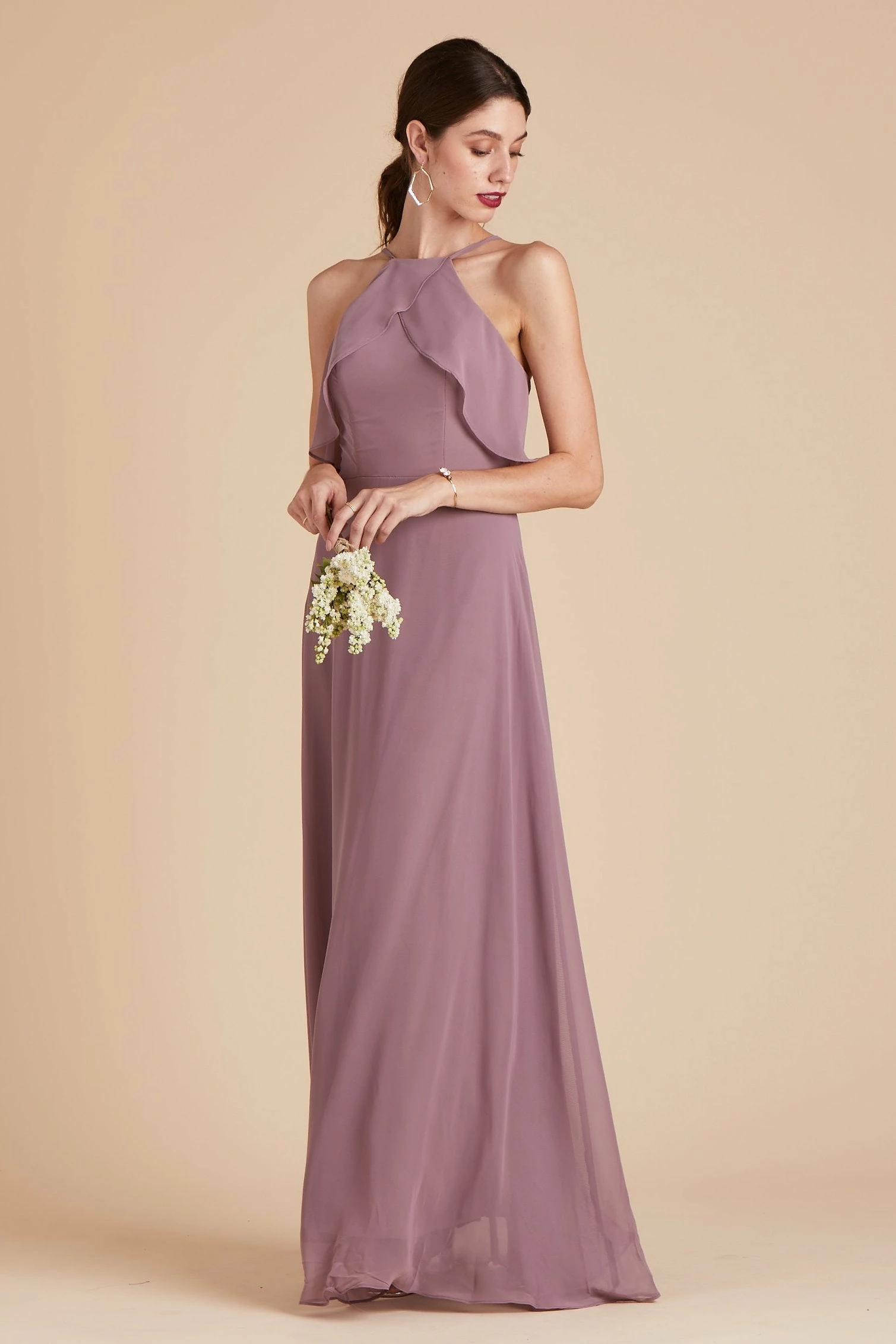 If you’re looking for the quintessential bridal party dress that will make your #BridalSquad glow from the inside out, then you’ve found it. The picture-perfect bridal party dress, that’s sure to compliment every bridesmaid’s shape and style, comes to life in our Jules Dress. It’s masterfully designed with super-soft ruffles, a refreshed halter neckline, and a long free-flowing spun chiffon A-line silhouette that dances against your body while you gleefully dance the night away. The best part? This bridal party dress is sure to please even the pickiest of bridesmaids and features built-in cups for added comfort, extra support, and a boost of self-confidence to keep your spirit high and your girls perky.
