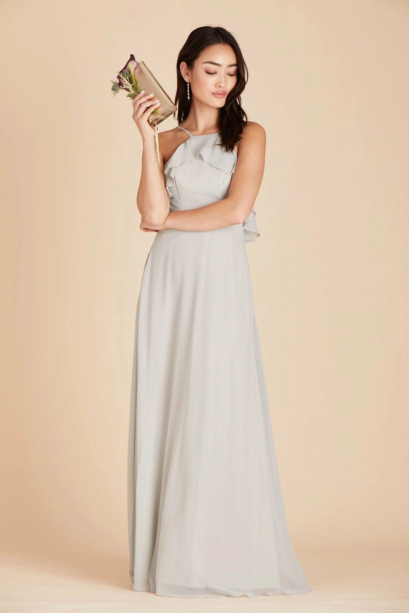 If you’re looking for the quintessential bridal party dress that will make your #BridalSquad glow from the inside out, then you’ve found it. The picture-perfect bridal party dress, that’s sure to compliment every bridesmaid’s shape and style, comes to life in our Jules Dress. It’s masterfully designed with super-soft ruffles, a refreshed halter neckline, and a long free-flowing spun chiffon A-line silhouette that dances against your body while you gleefully dance the night away. The best part? This bridal party dress is sure to please even the pickiest of bridesmaids and features built-in cups for added comfort, extra support, and a boost of self-confidence to keep your spirit high and your girls perky.