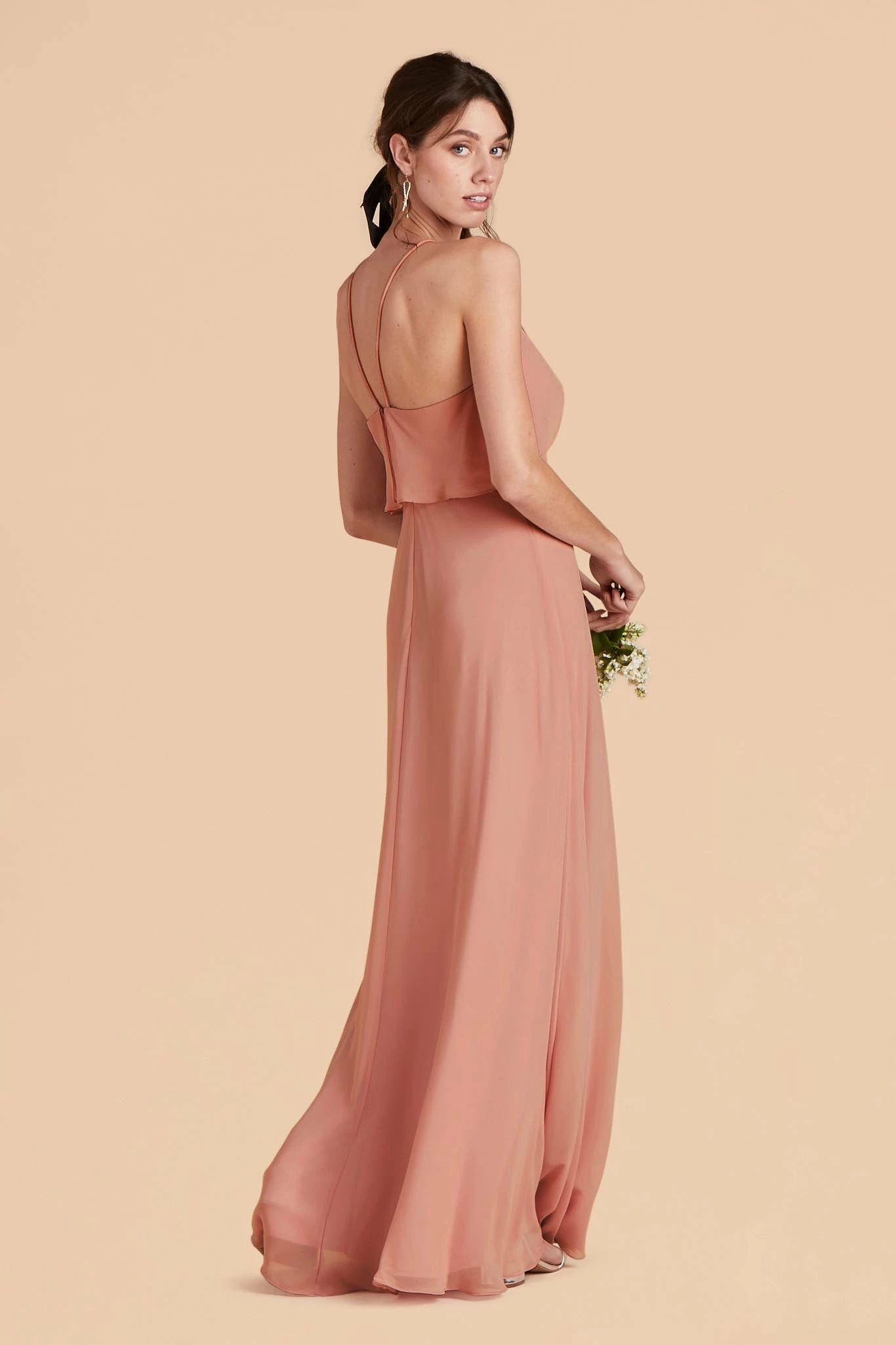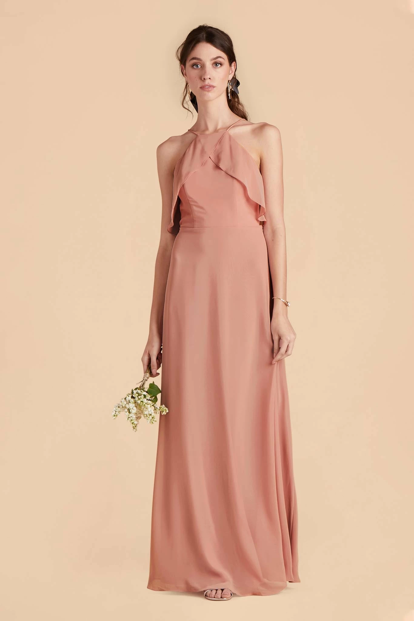If you’re looking for the quintessential bridal party dress that will make your #BridalSquad glow from the inside out, then you’ve found it. The picture-perfect bridal party dress, that’s sure to compliment every bridesmaid’s shape and style, comes to life in our Jules Dress. It’s masterfully designed with super-soft ruffles, a refreshed halter neckline, and a long free-flowing spun chiffon A-line silhouette that dances against your body while you gleefully dance the night away. The best part? This bridal party dress is sure to please even the pickiest of bridesmaids and features built-in cups for added comfort, extra support, and a boost of self-confidence to keep your spirit high and your girls perky.