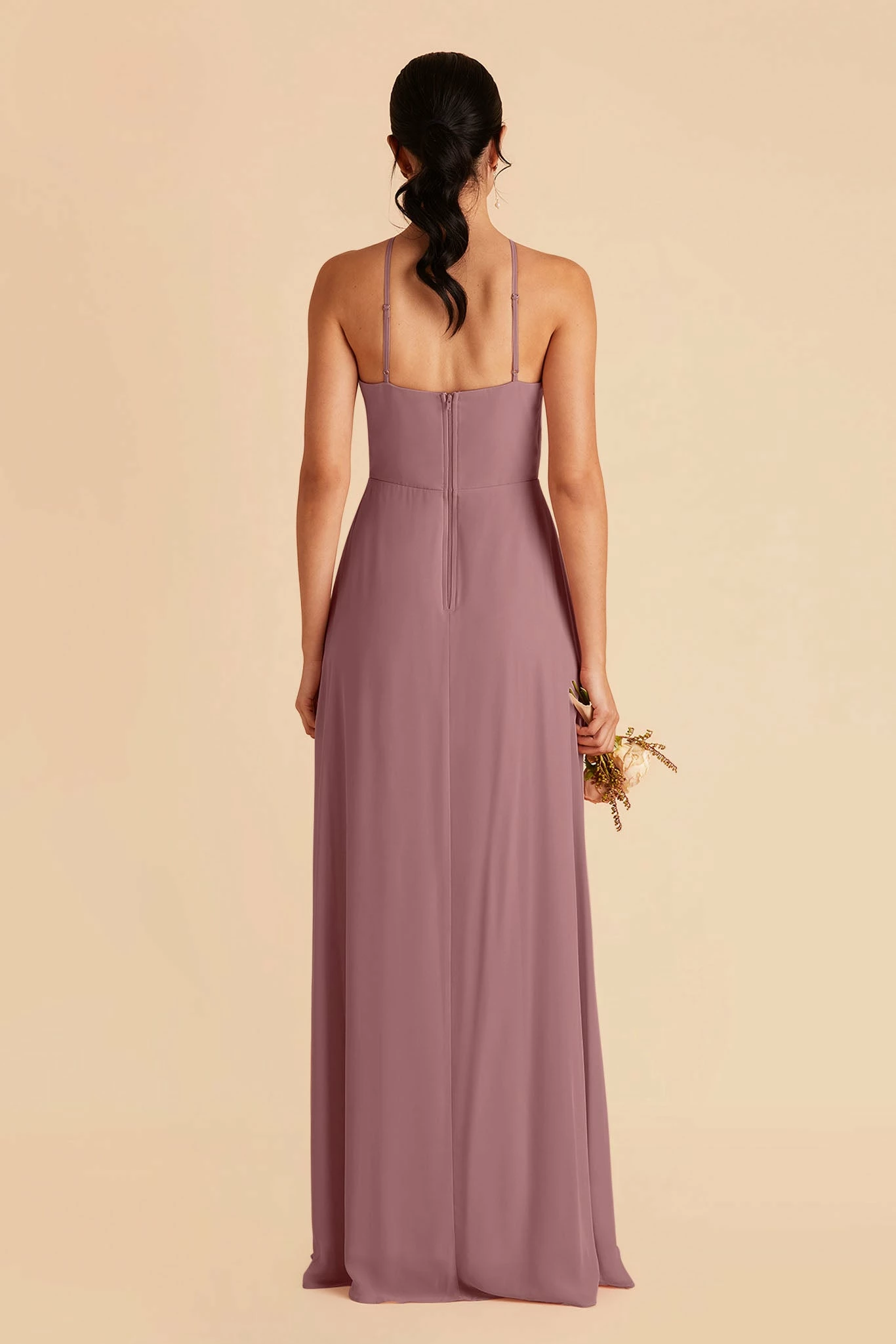 Less is more with this thin-strapped halter bridesmaid dress. Juliet also features a slimmer, more minimal skirt design, that dials up the sleek factor in a big way. She’s perfect for the bridesmaid who’s looking for a simpler design but still wants the elegance of chiffon.