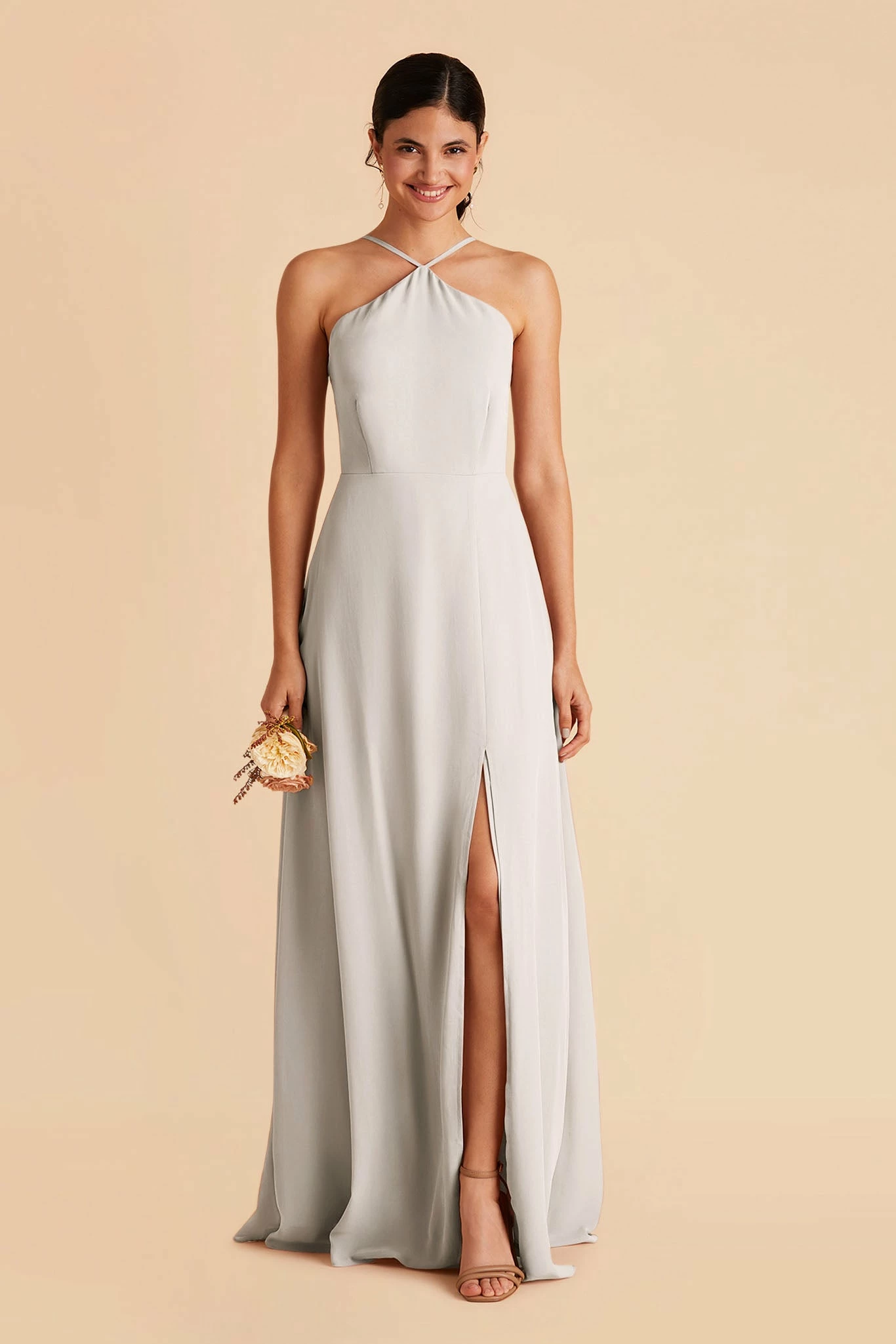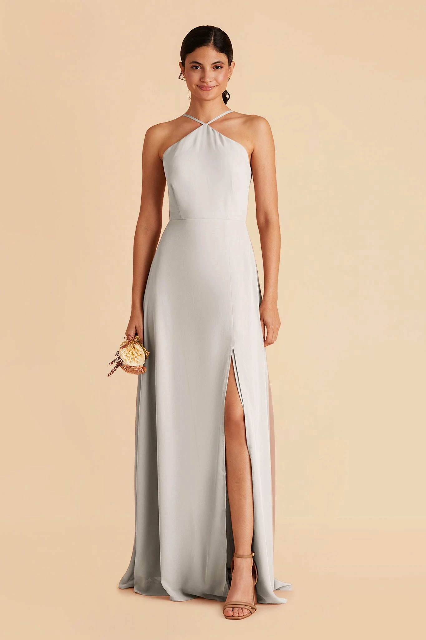 Less is more with this thin-strapped halter bridesmaid dress. Juliet also features a slimmer, more minimal skirt design, that dials up the sleek factor in a big way. She’s perfect for the bridesmaid who’s looking for a simpler design but still wants the elegance of chiffon.