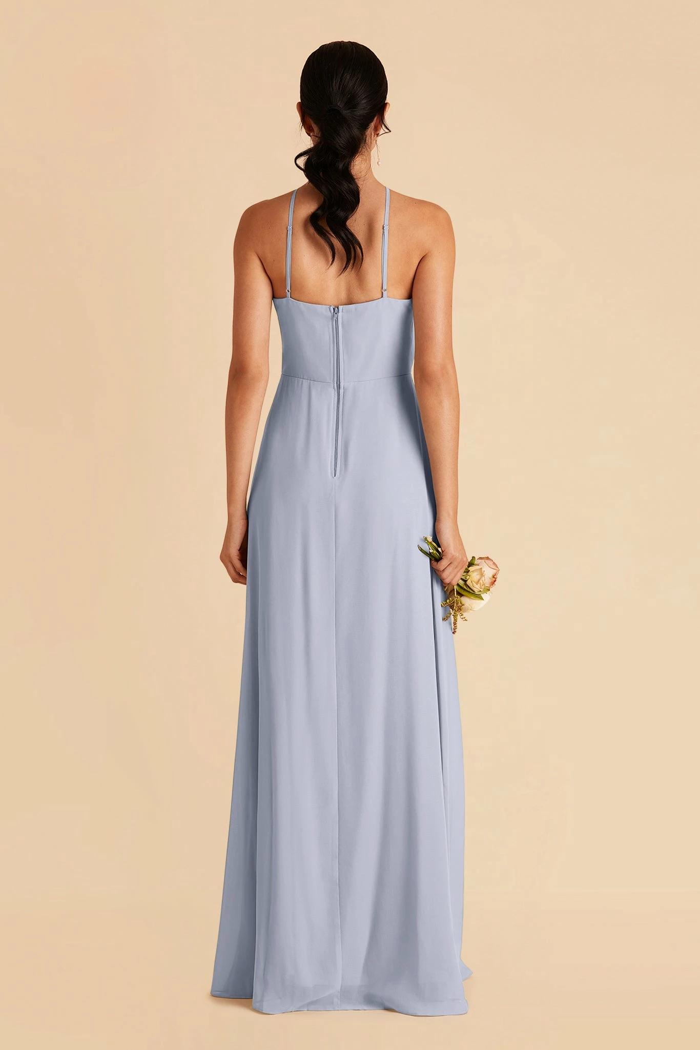 Less is more with this thin-strapped halter bridesmaid dress. Juliet also features a slimmer, more minimal skirt design, that dials up the sleek factor in a big way. She’s perfect for the bridesmaid who’s looking for a simpler design but still wants the elegance of chiffon.