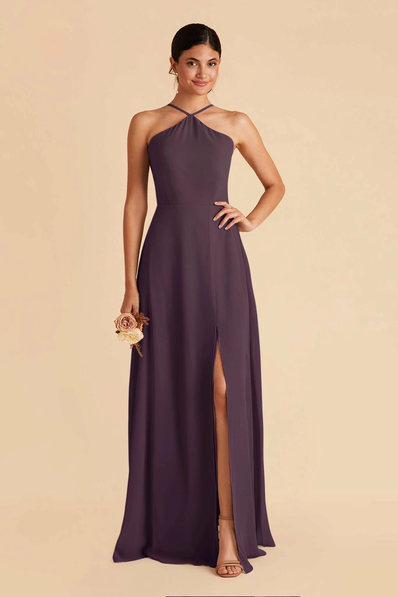 Less is more with this thin-strapped halter bridesmaid dress. Juliet also features a slimmer, more minimal skirt design, that dials up the sleek factor in a big way. She’s perfect for the bridesmaid who’s looking for a simpler design but still wants the elegance of chiffon.