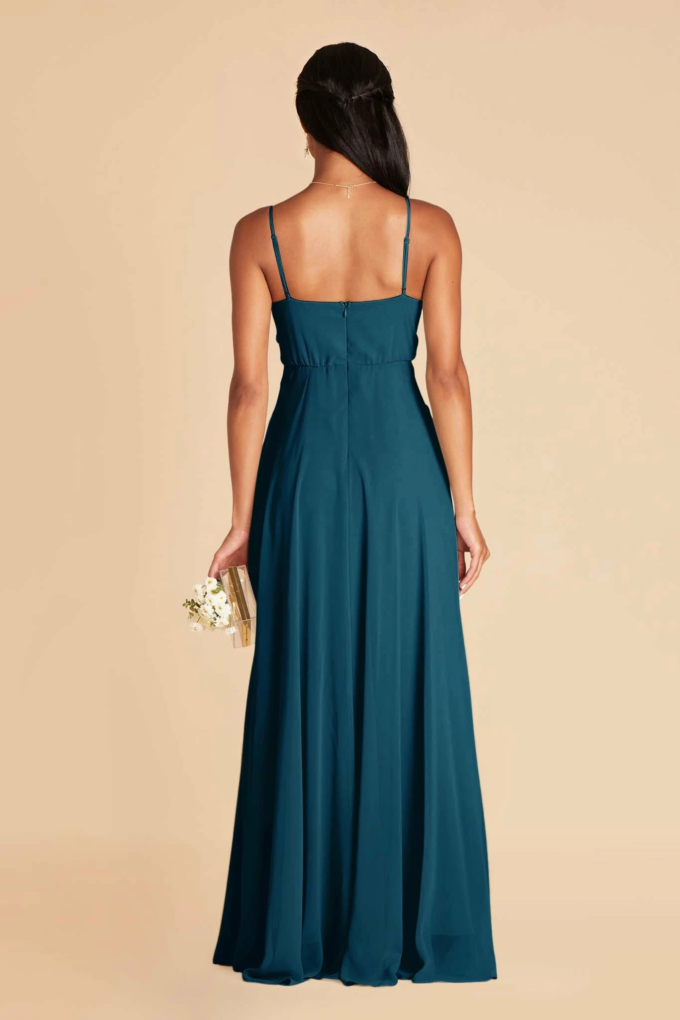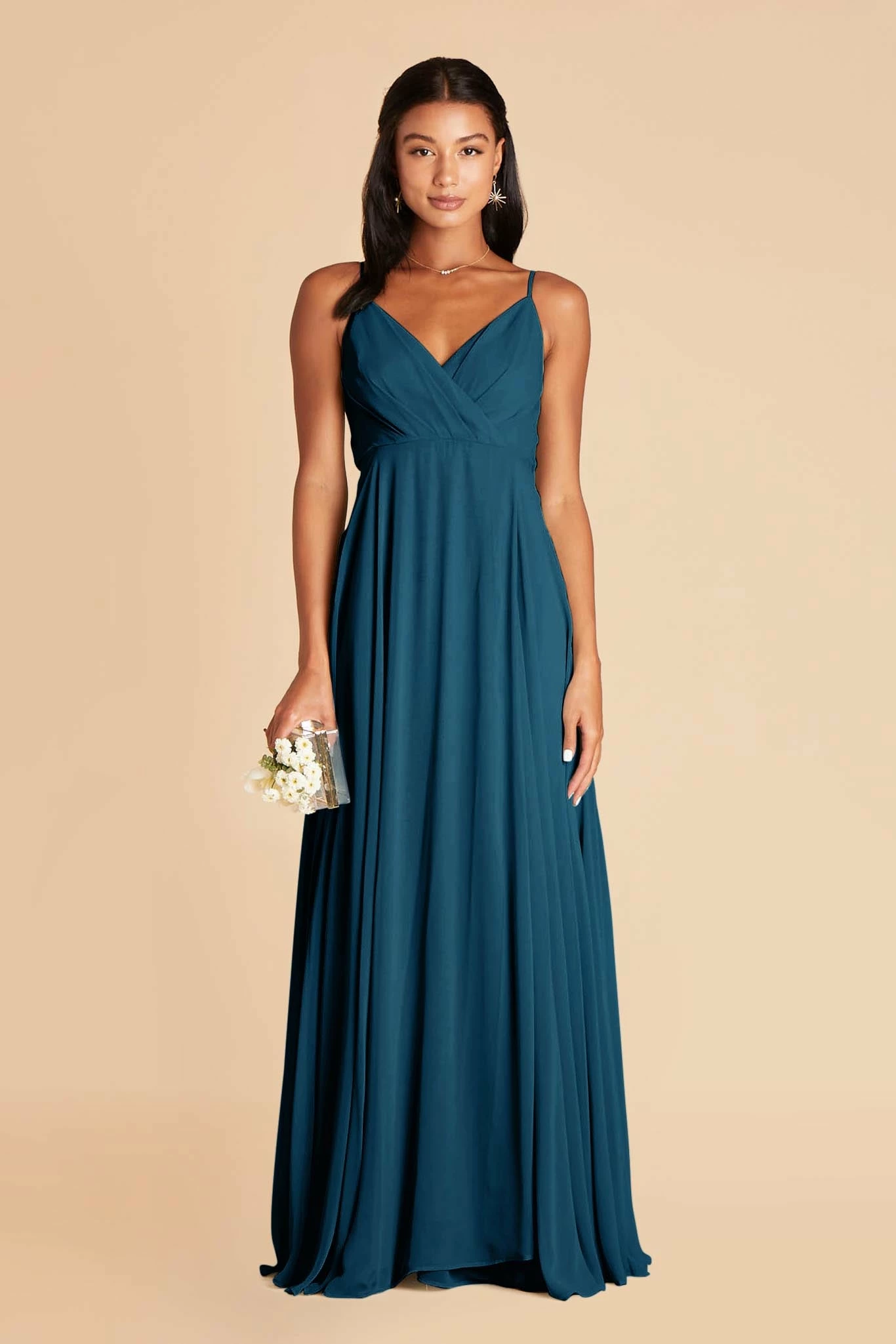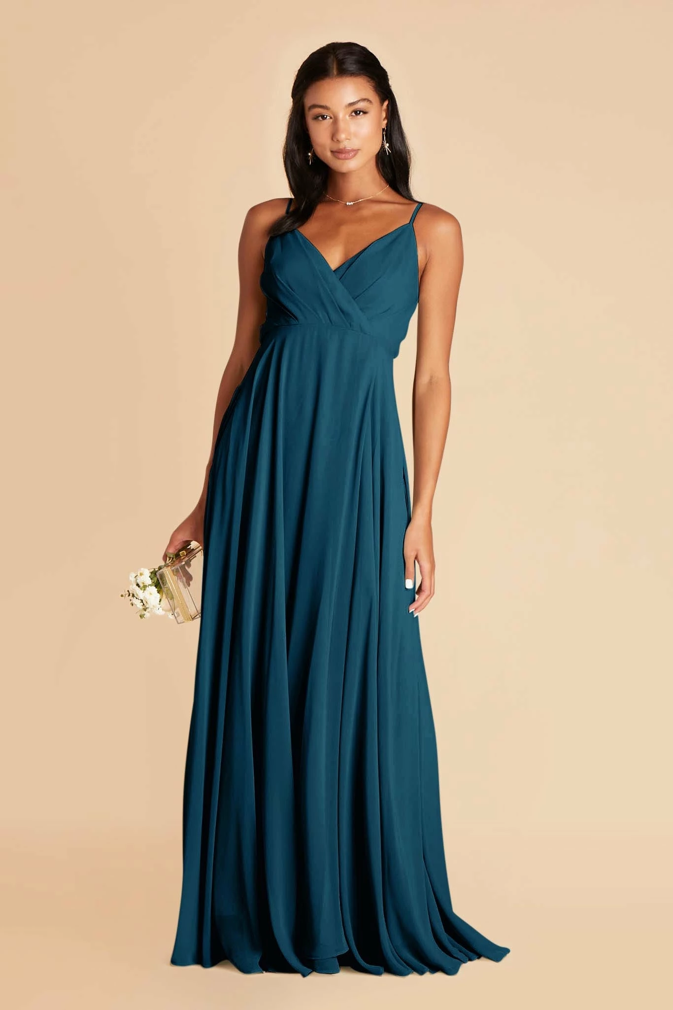 A dress so elegant that it could even make Grace Kelly blush. You’ll get swept away in your bridesmaid’s duties in this chiffon dress that flows like a soft river wrapped around your body. Its V-shaped neckline subtly accentuates your collarbone for an elevated and sophisticated look. The best part? Wearing our Kaia bridesmaid dress is like sleeping in a cloud of comfort and style with its strategically placed and slightly raised elastic-backed empire waist that leaves the perfect amount of space for effortlessly walking down the aisle and dancing the night away.