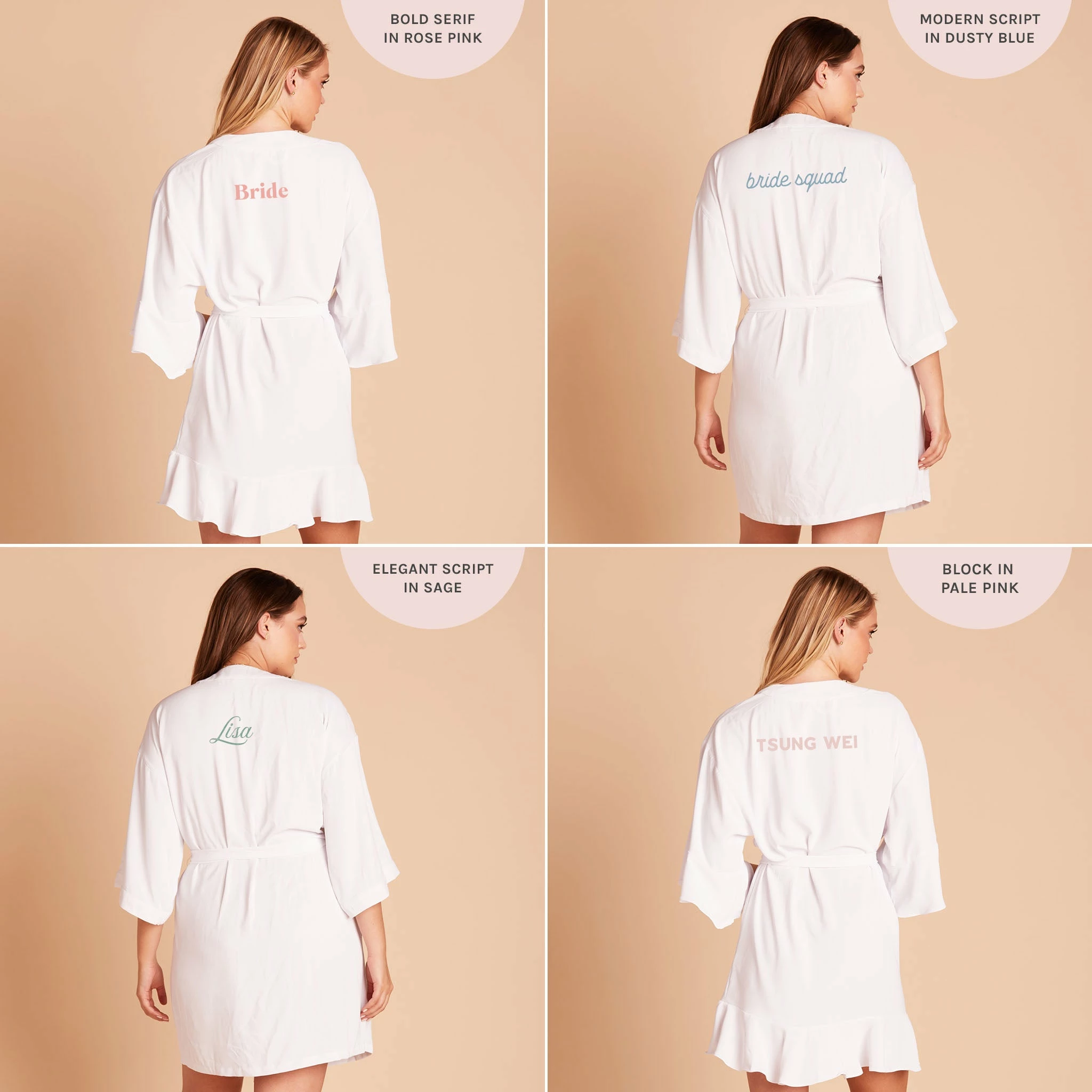 Not into lacy robes for your bridal suite look? We get it, some of us prefer simple and classic. These no-frills robes are incredibly soft and will make your girls look oh-so polished while getting dolled up and come in so many colors to match your I-do day palette. We love the 3/4 kimono sleeves that feel modern, but it’s really the simplicity of these robes that makes them a no-brainer for post-wedding wear. I mean, don’t we all aspire to be one of those girls that casually throws on a robe every morning and looks instantly chic?