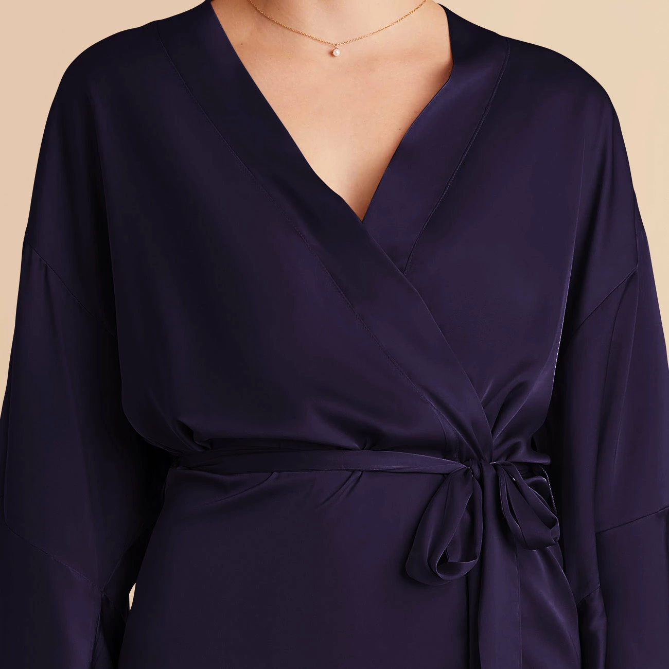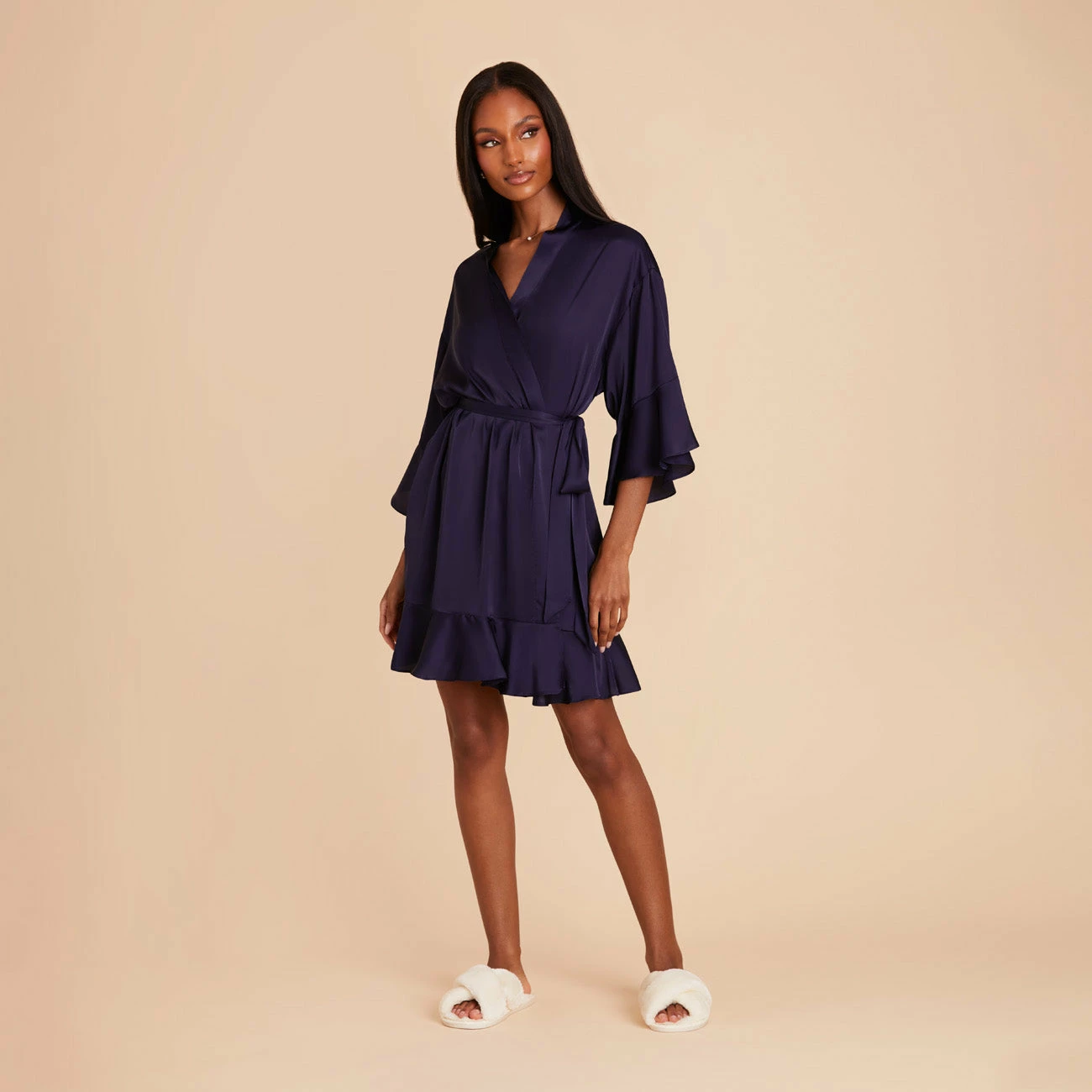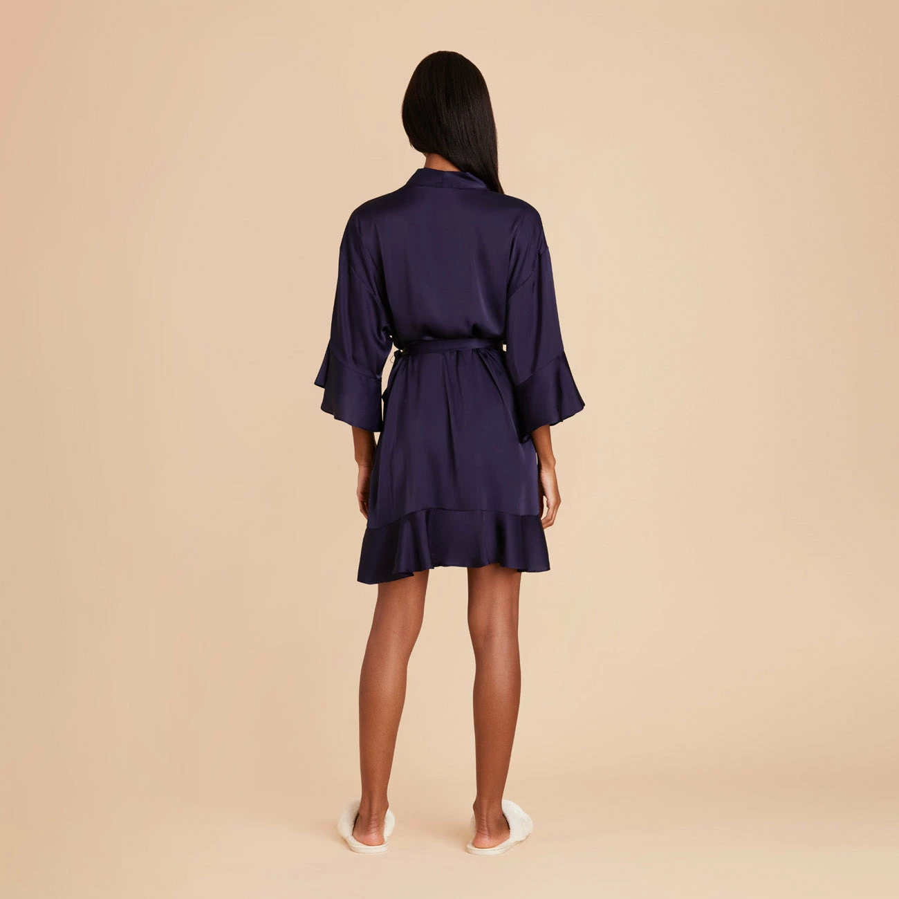 Kenny Ruffle Satin Robe – Navy