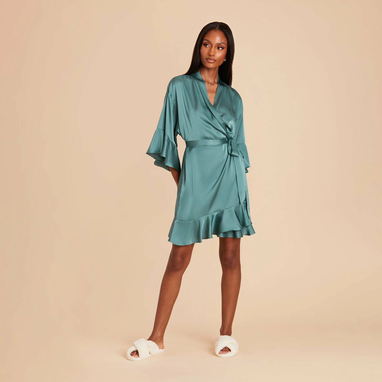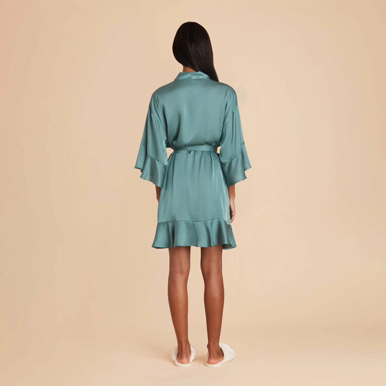 Kenny Ruffle Satin Robe – Sea Glass