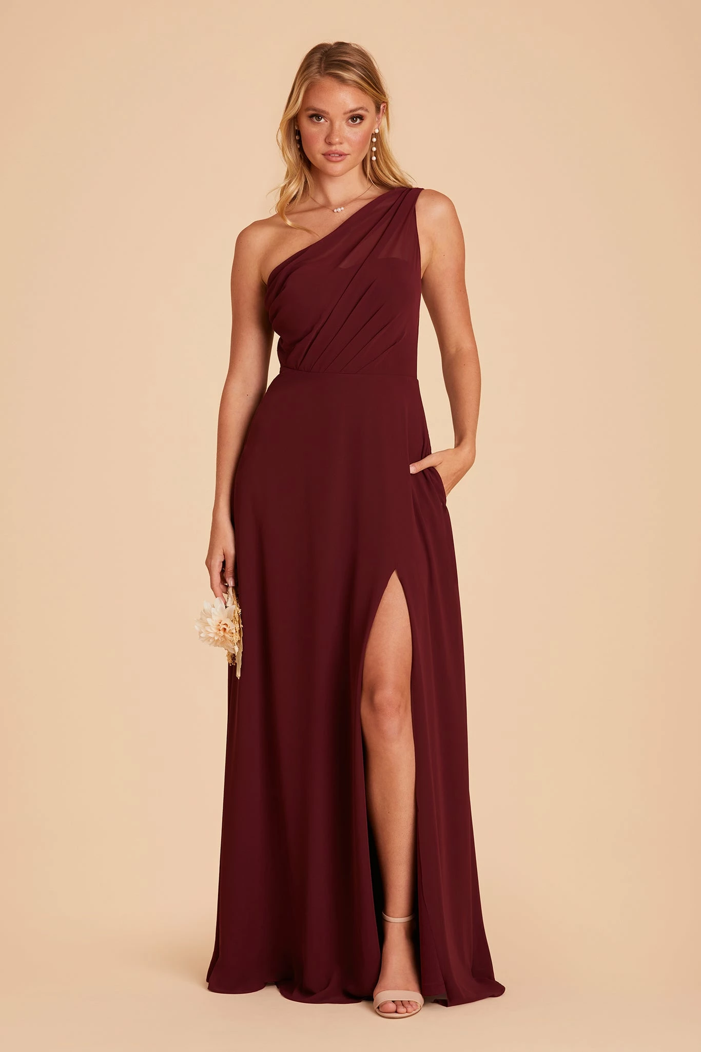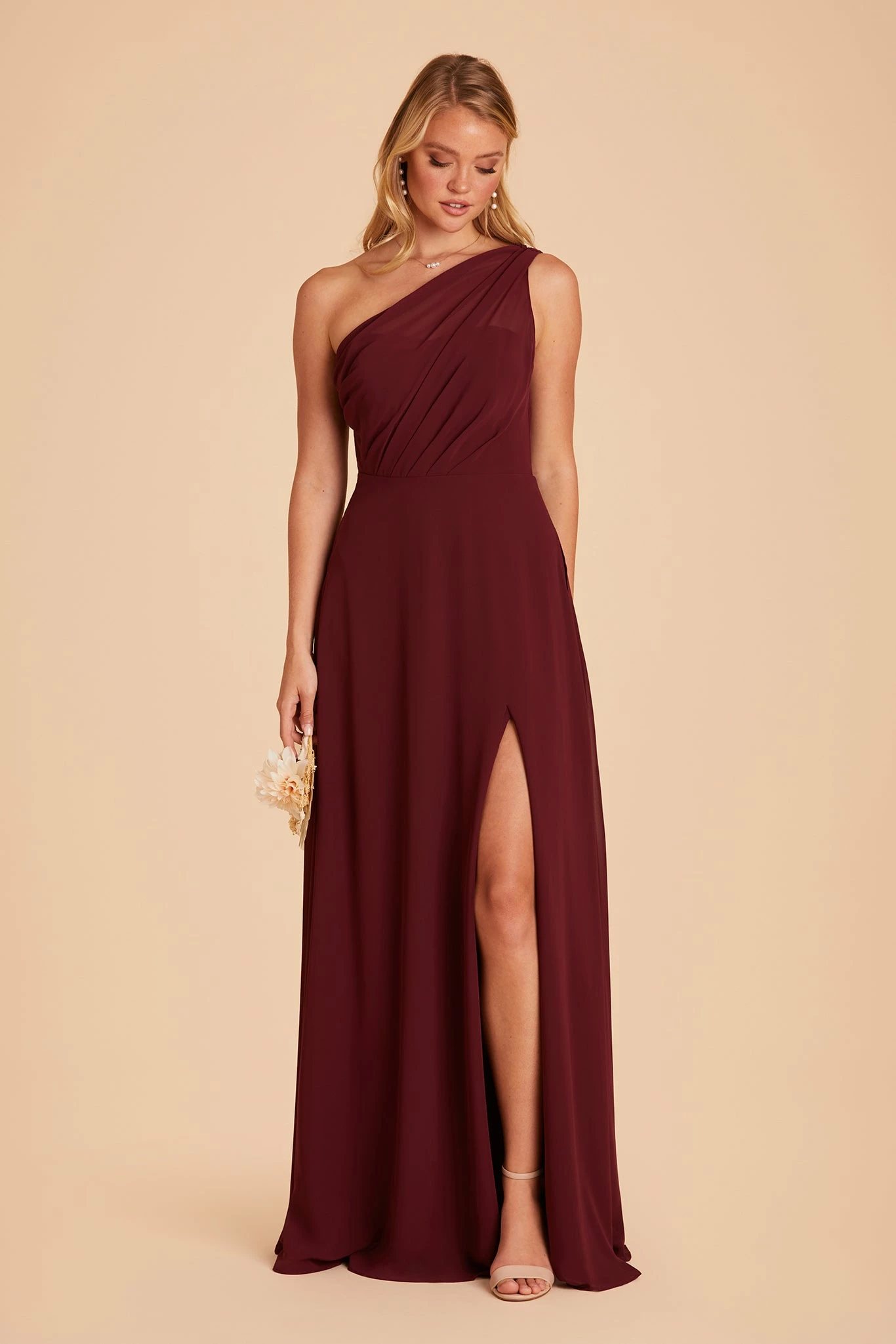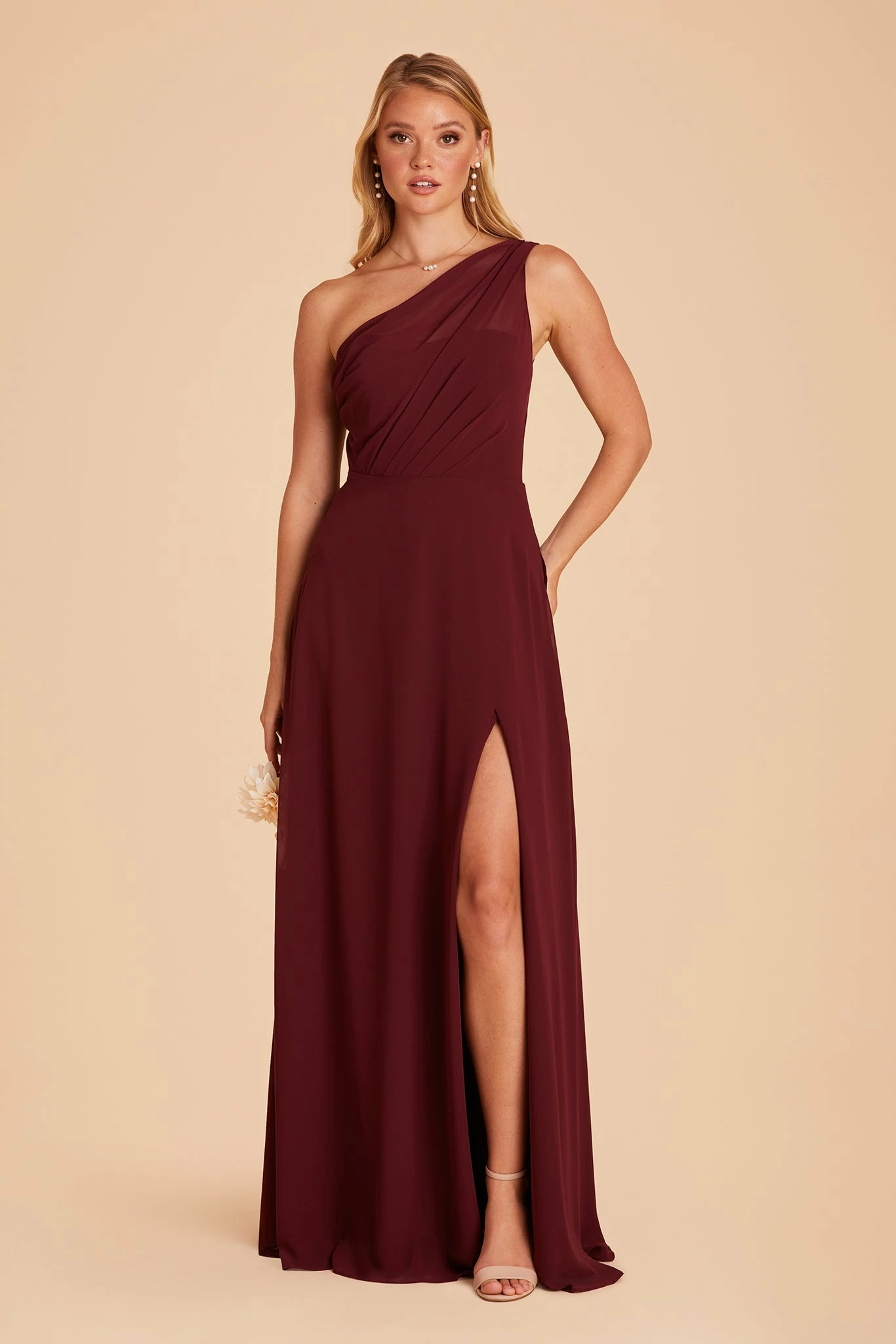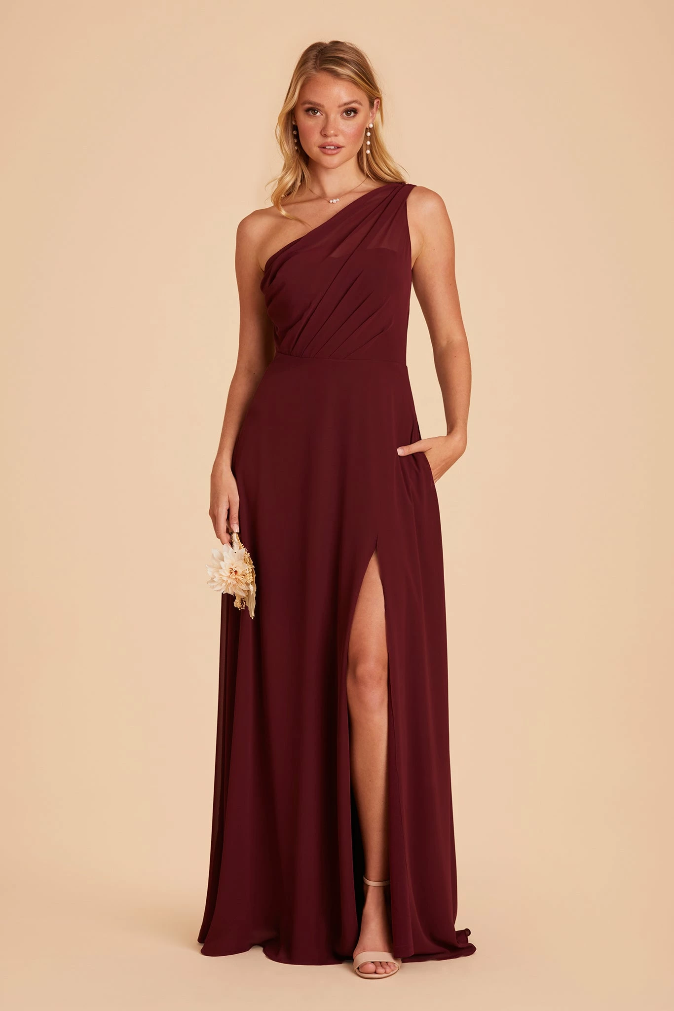 Like you, our Kira bridesmaid dress embodies classic beauty (*kiss*). This flowing chiffon bridesmaid dress is a style staple and no-brainer, if you’re looking to feel like a statuesque Greek goddess. The lightly pulled one shoulder and softly draped back are at once simple and regal, so you can float down the aisle in all your Aphrodite vibes. This dress features built-in bra cups, a flowing skirt, and a hidden side pocket, so you can be prepared with a detergent pen or a safety pin or a disposable camera to capture a precious moment.