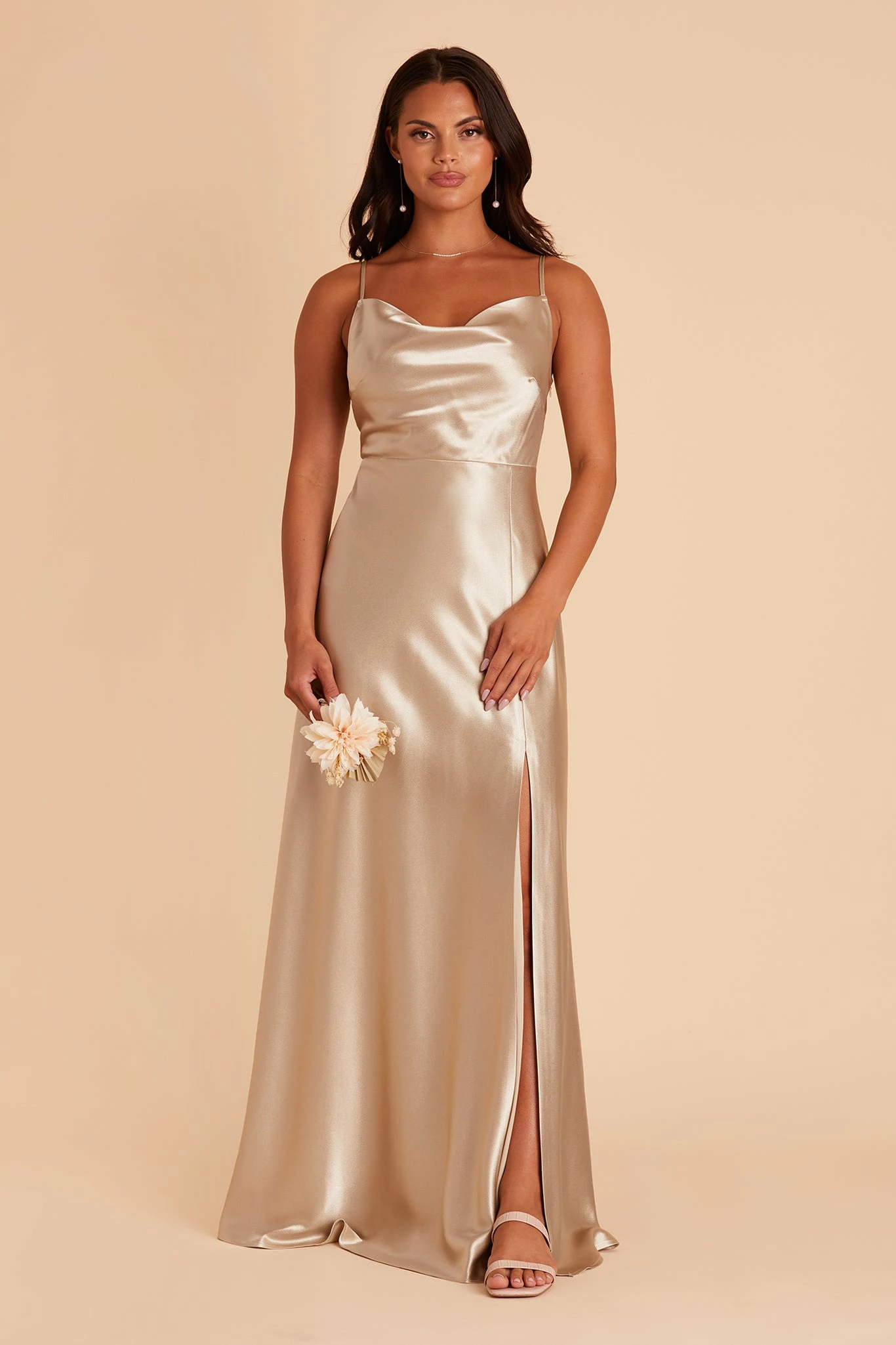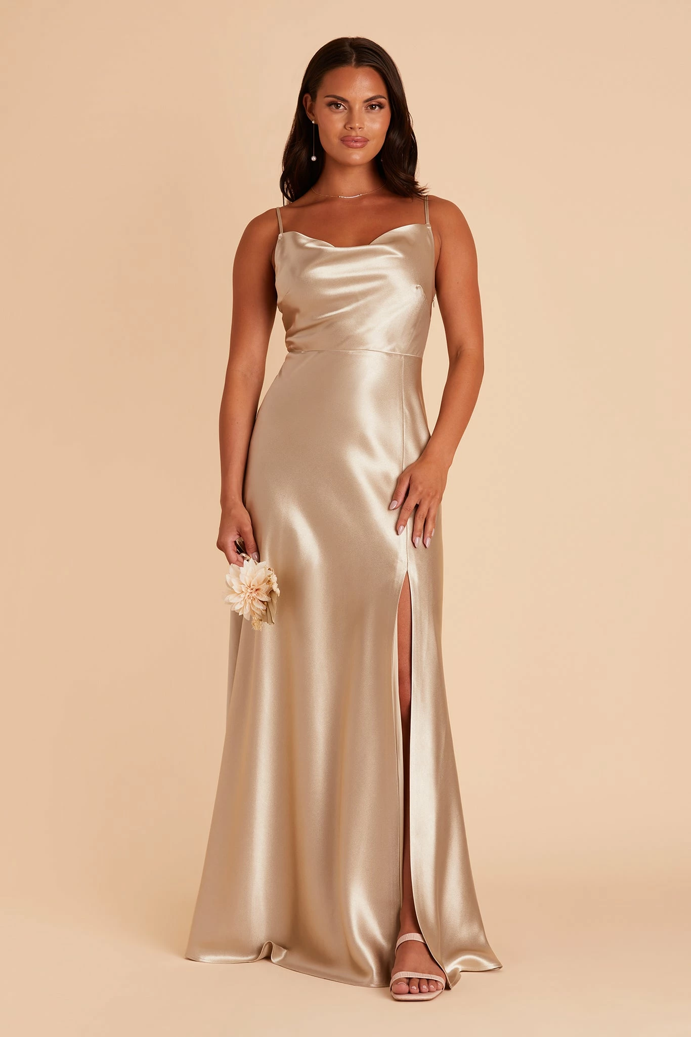 Lisa Long Shiny Satin Dress – Neutral Champagne