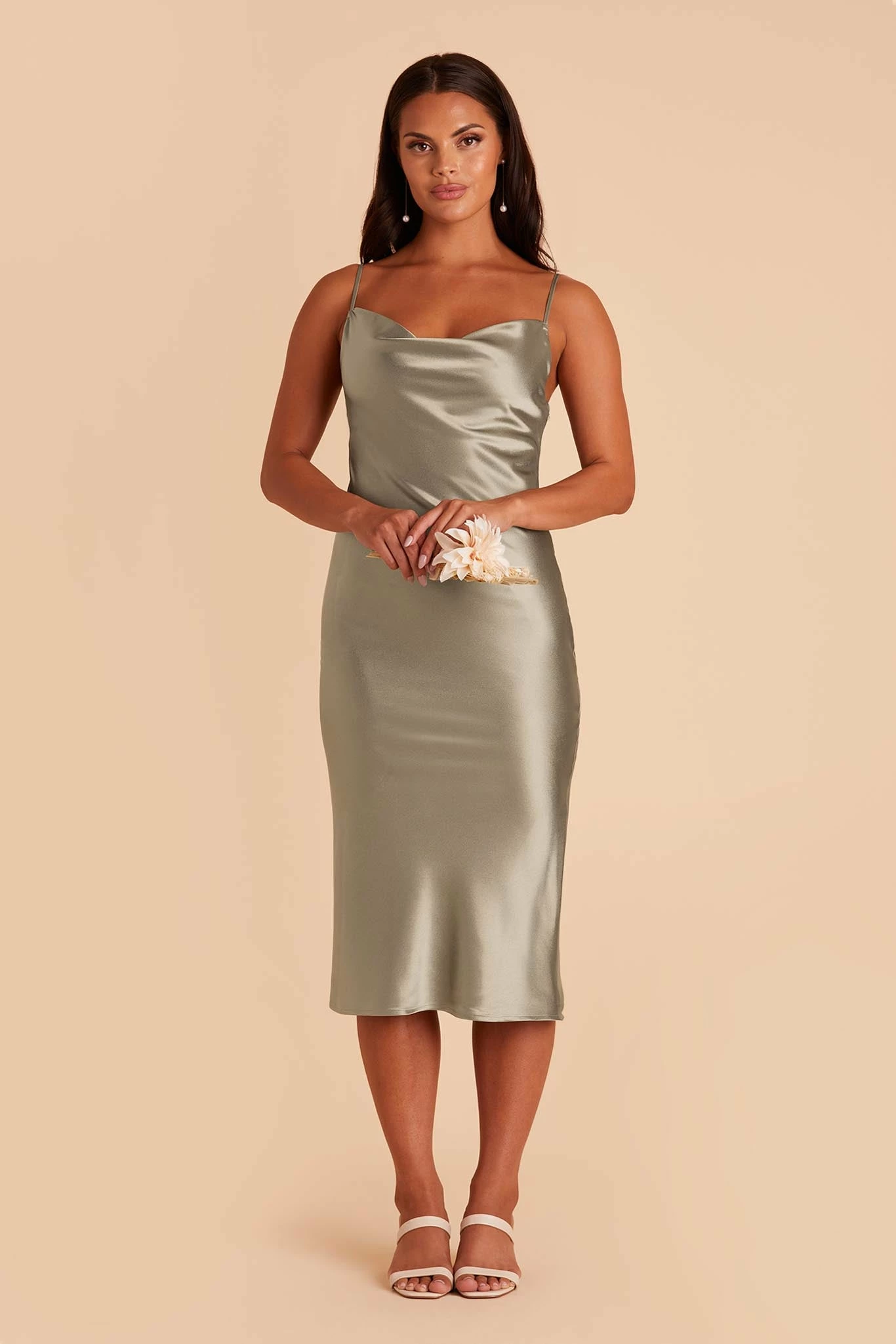 Be the first to review “Lisa Shiny Satin Midi Dress – Moss Green” Cancel reply