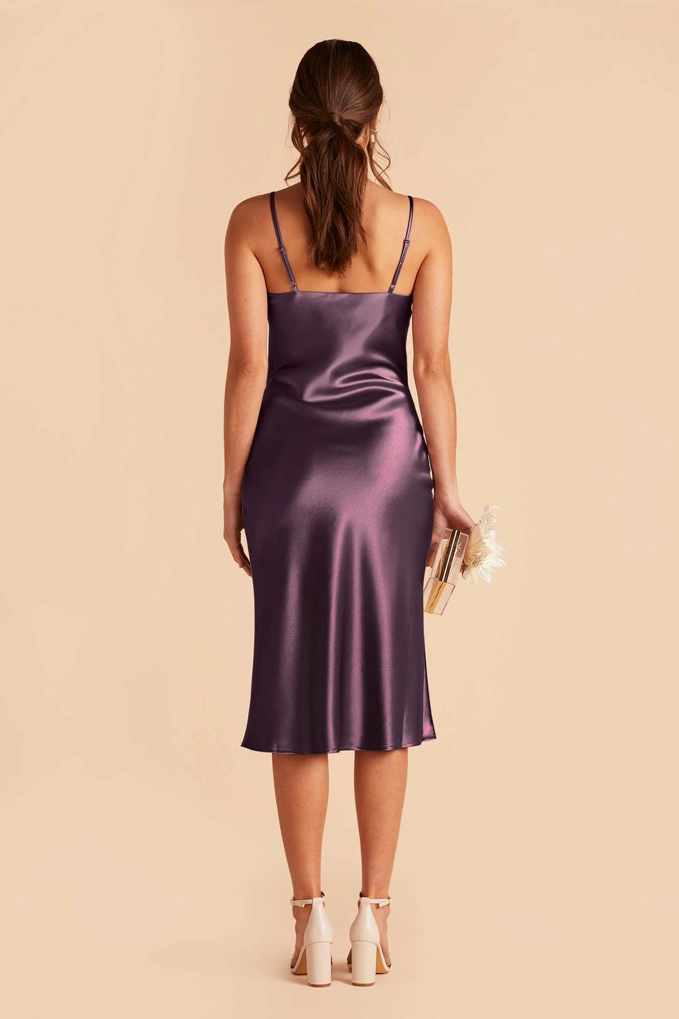 Be the first to review “Lisa Shiny Satin Midi Dress – Plum” Cancel reply