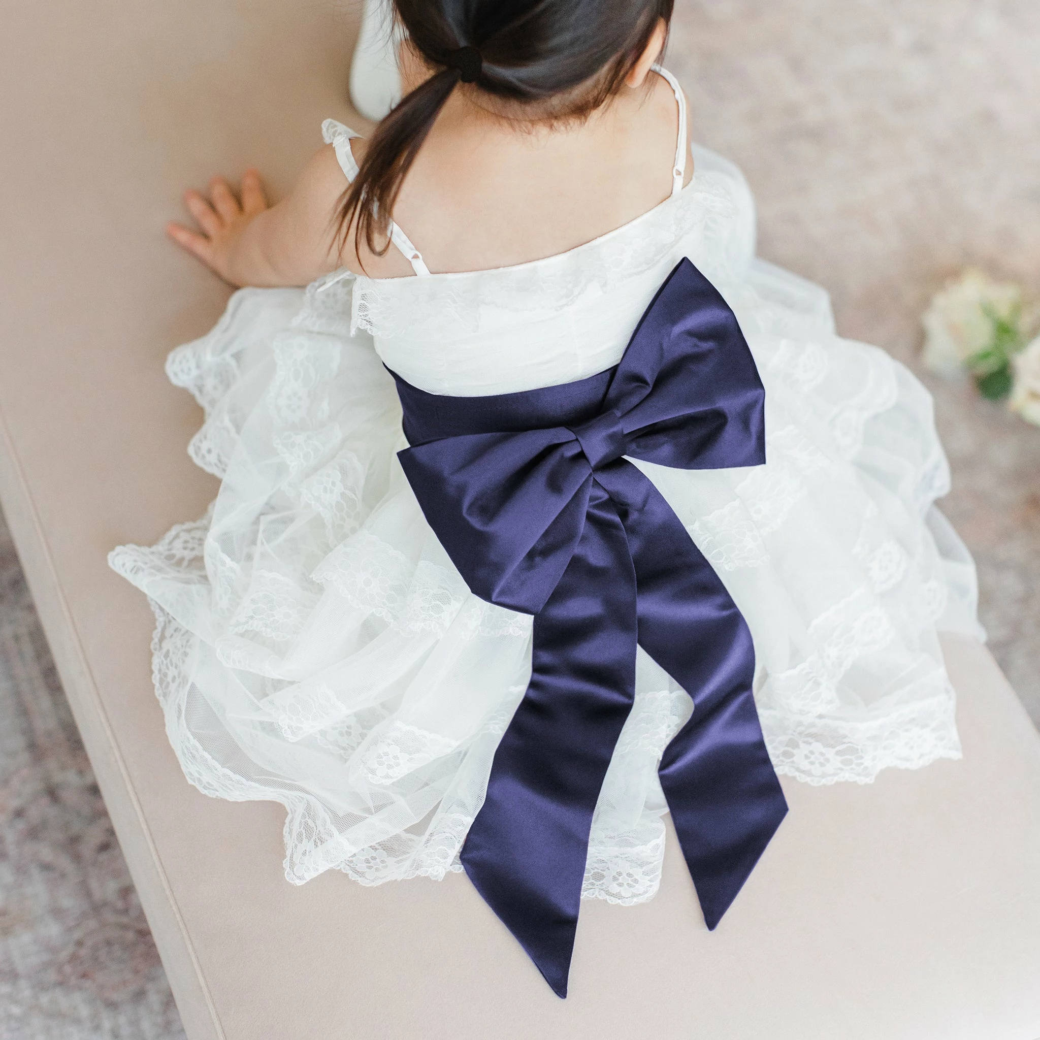 Be the first to review “Liz Flower Girl Sash – Sheen Navy” Cancel reply
