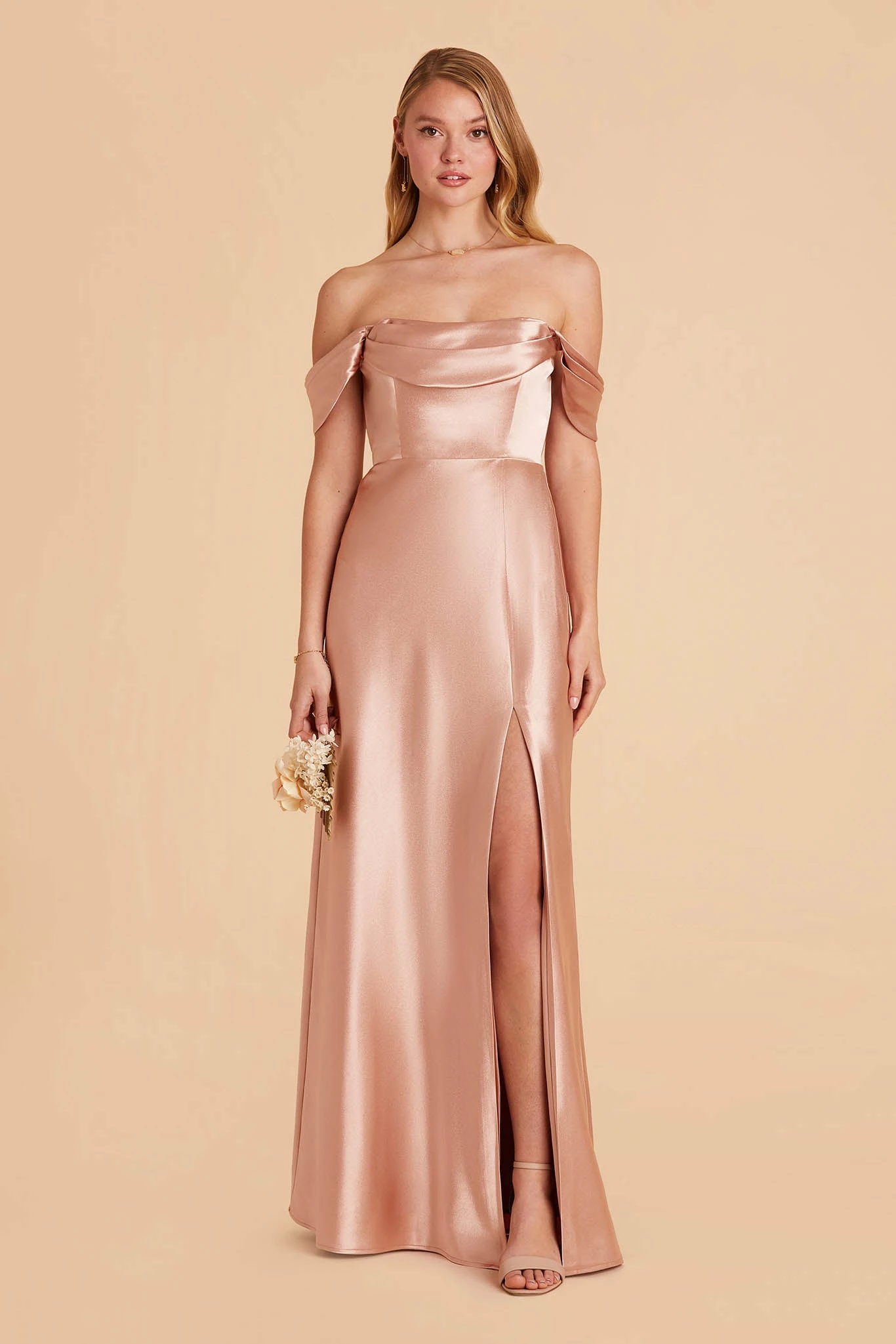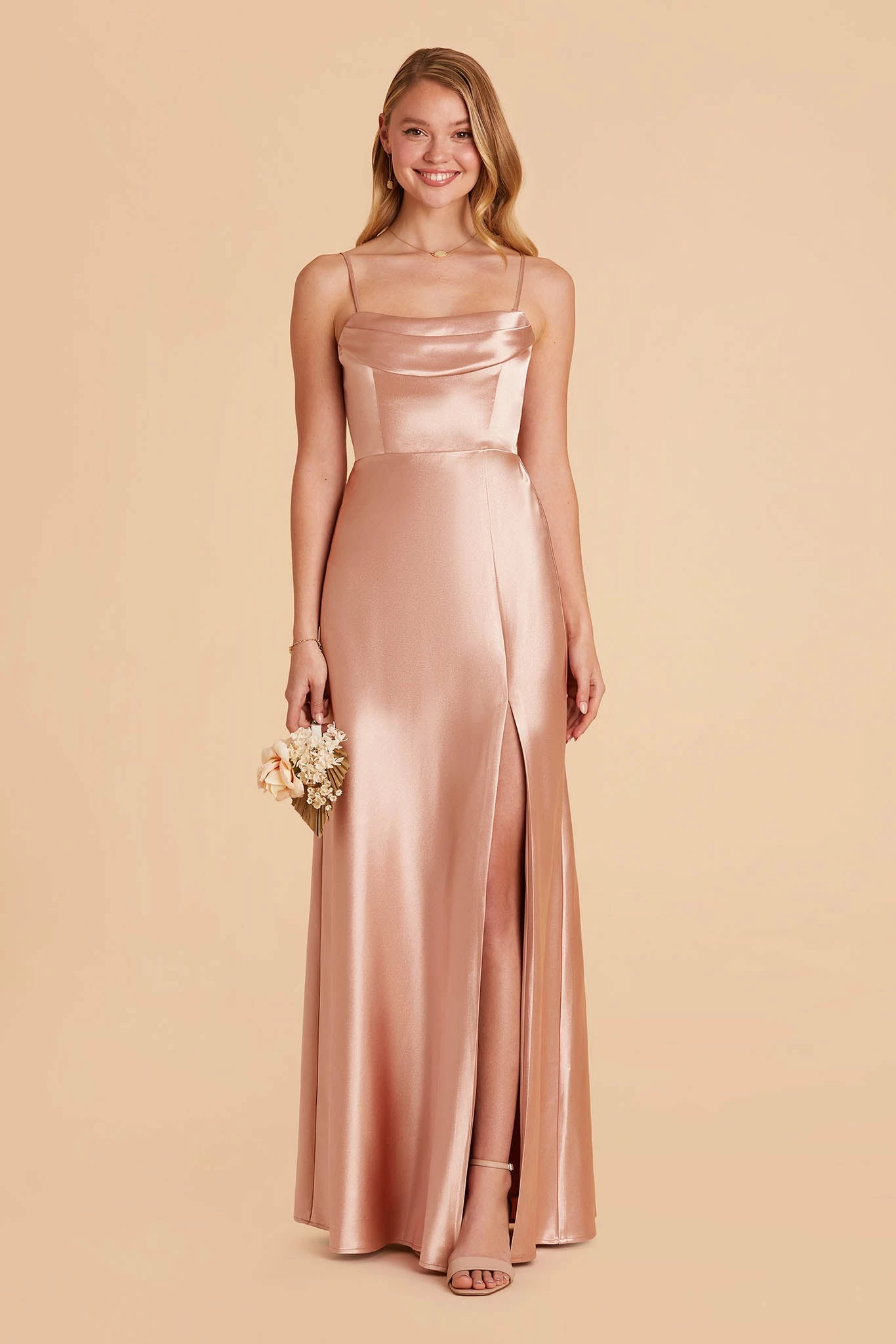 Mia Shiny Satin Convertible Dress – Rose Gold