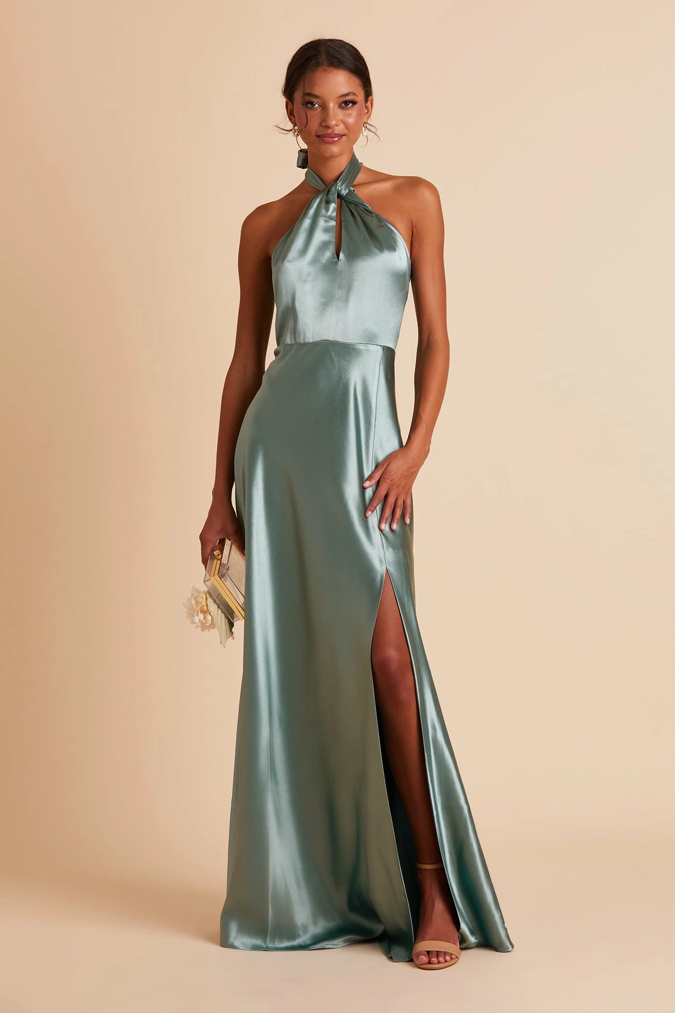 Be the first to review “Monica Shiny Satin Dress – Sea Glass” Cancel reply