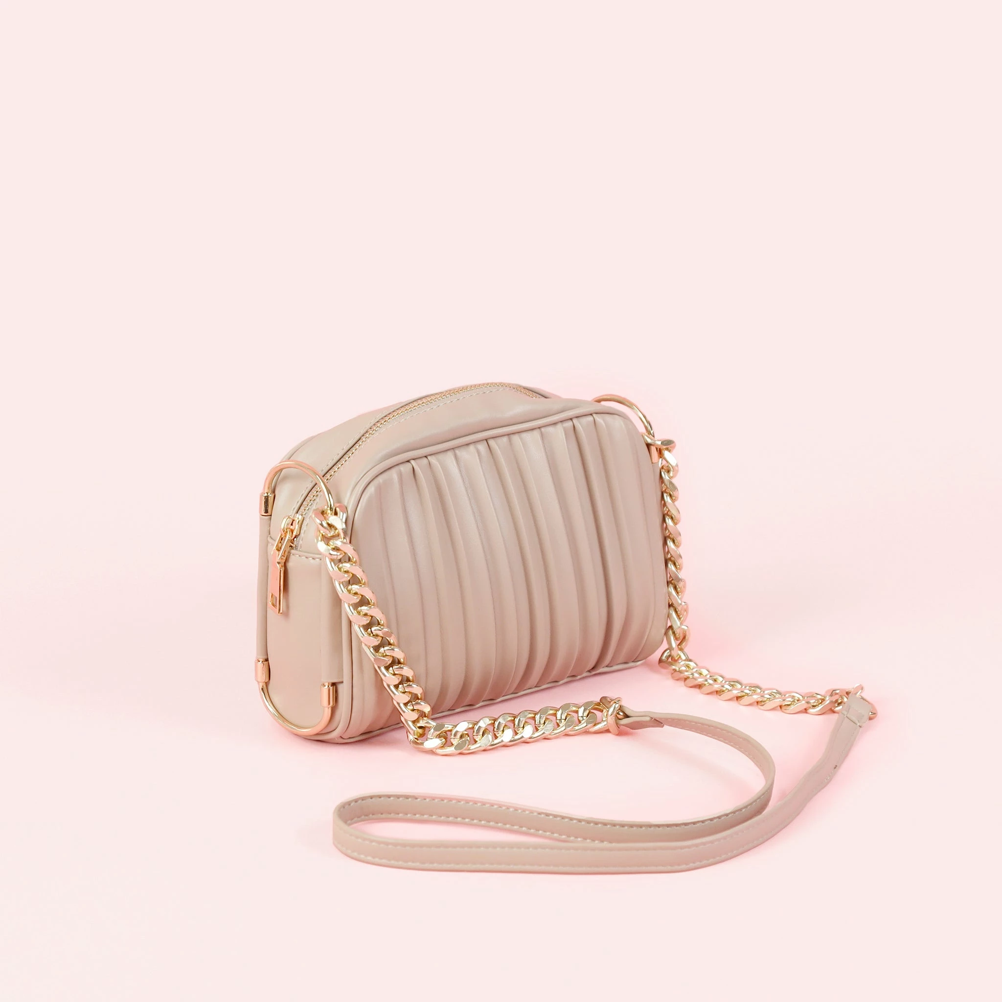 Pleated Crossbody Bag – Taupe