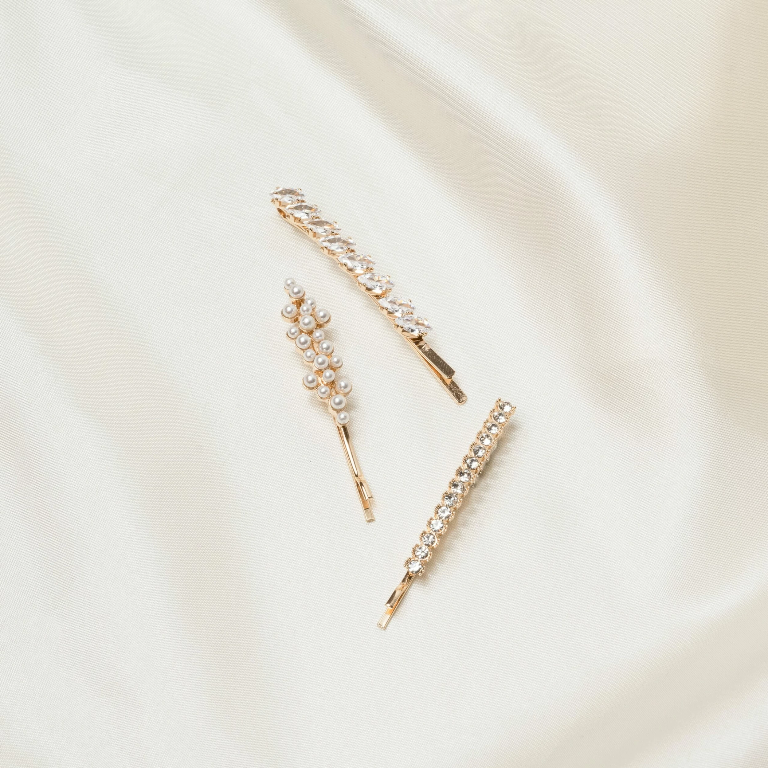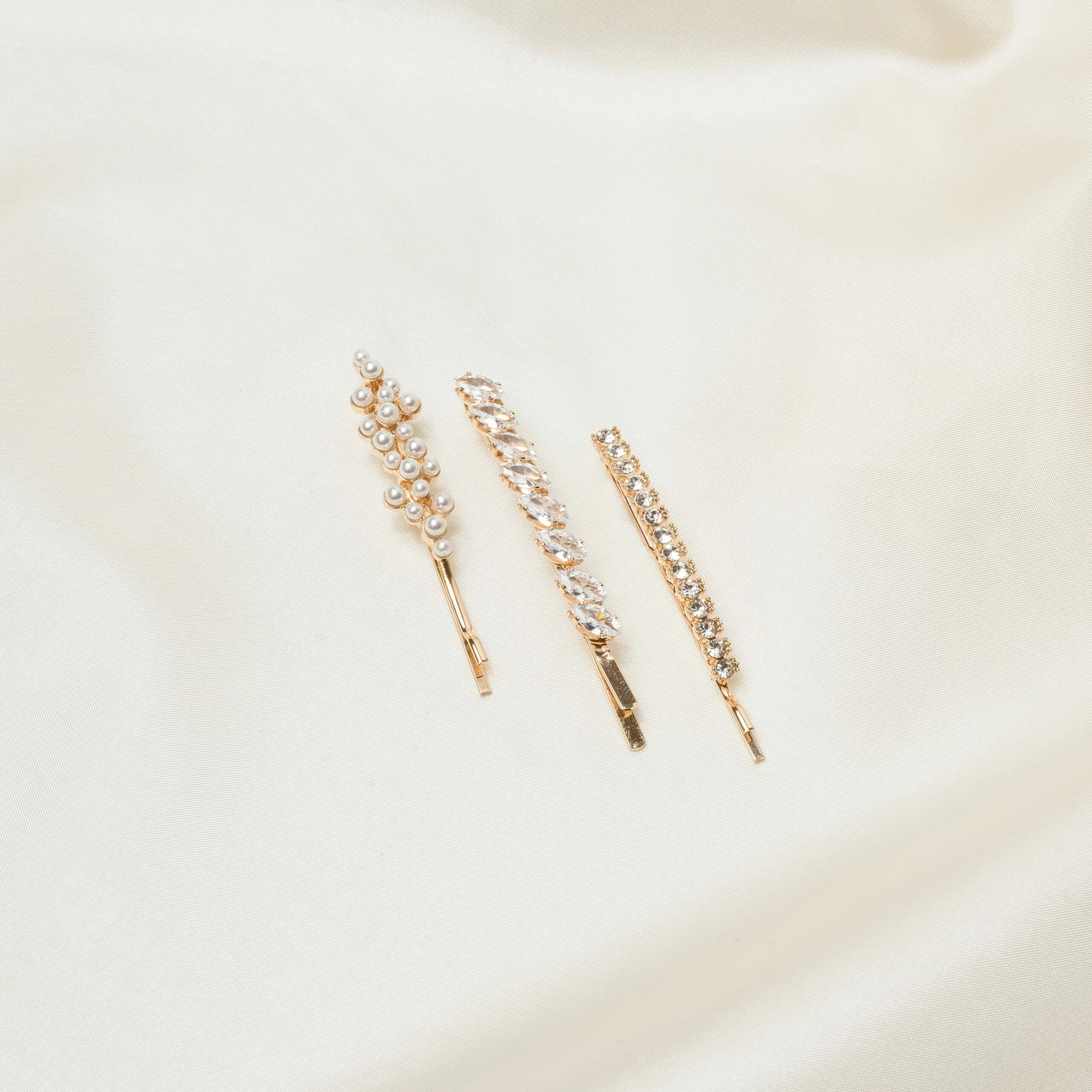 If you’re looking to add some touches of pearls and bling to your hairstyle for the big day, this trio of pearl and CZ-embellished pins add a dainty pop while still adding some sparkle. They’re versatile enough to be worn solo or in combination with each other, but whichever way you wear these, they’re sure to elevate your wedding day look.