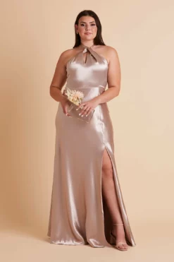 Eugenia Shiny Satin Convertible Midi Dress – Chocolate Brown