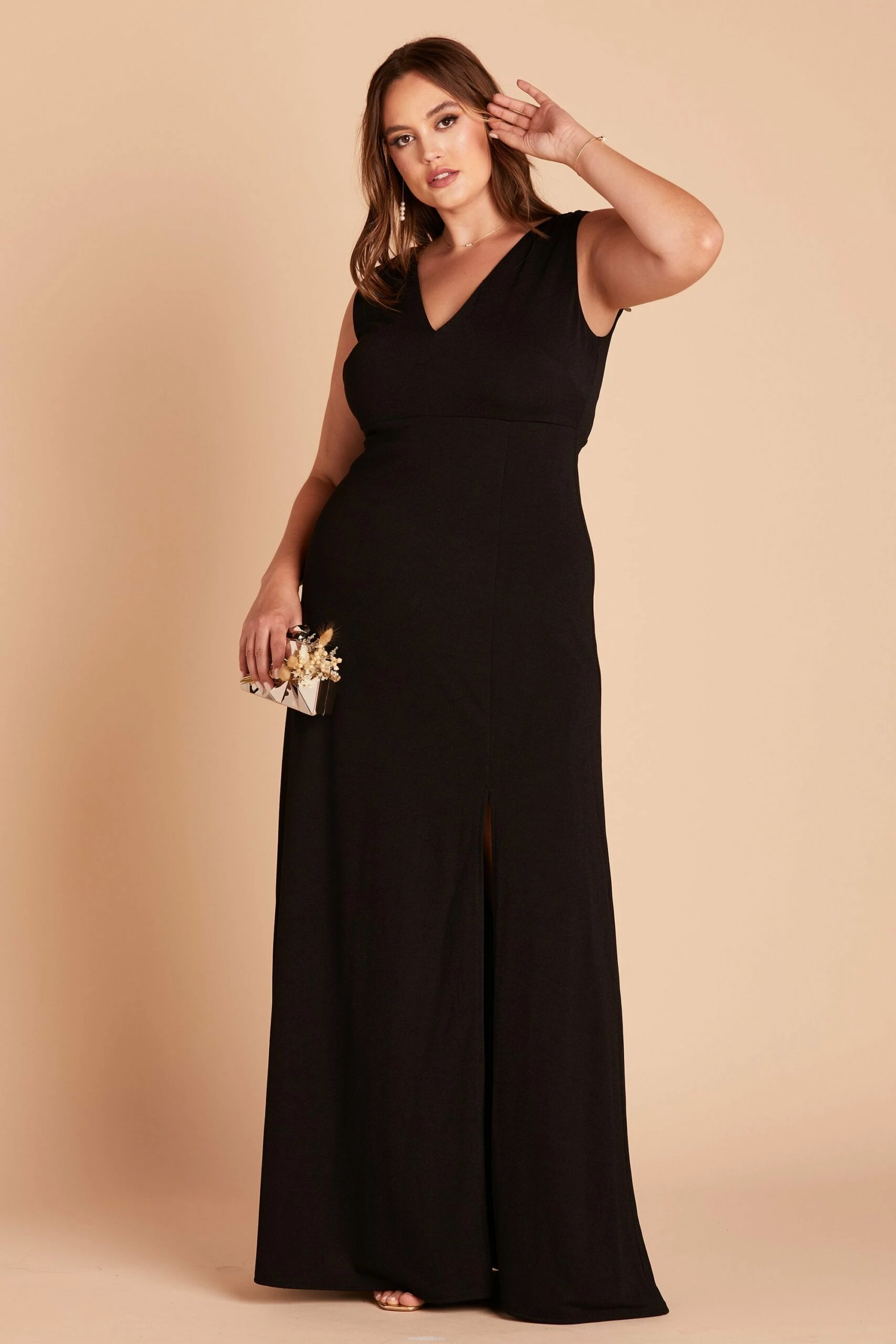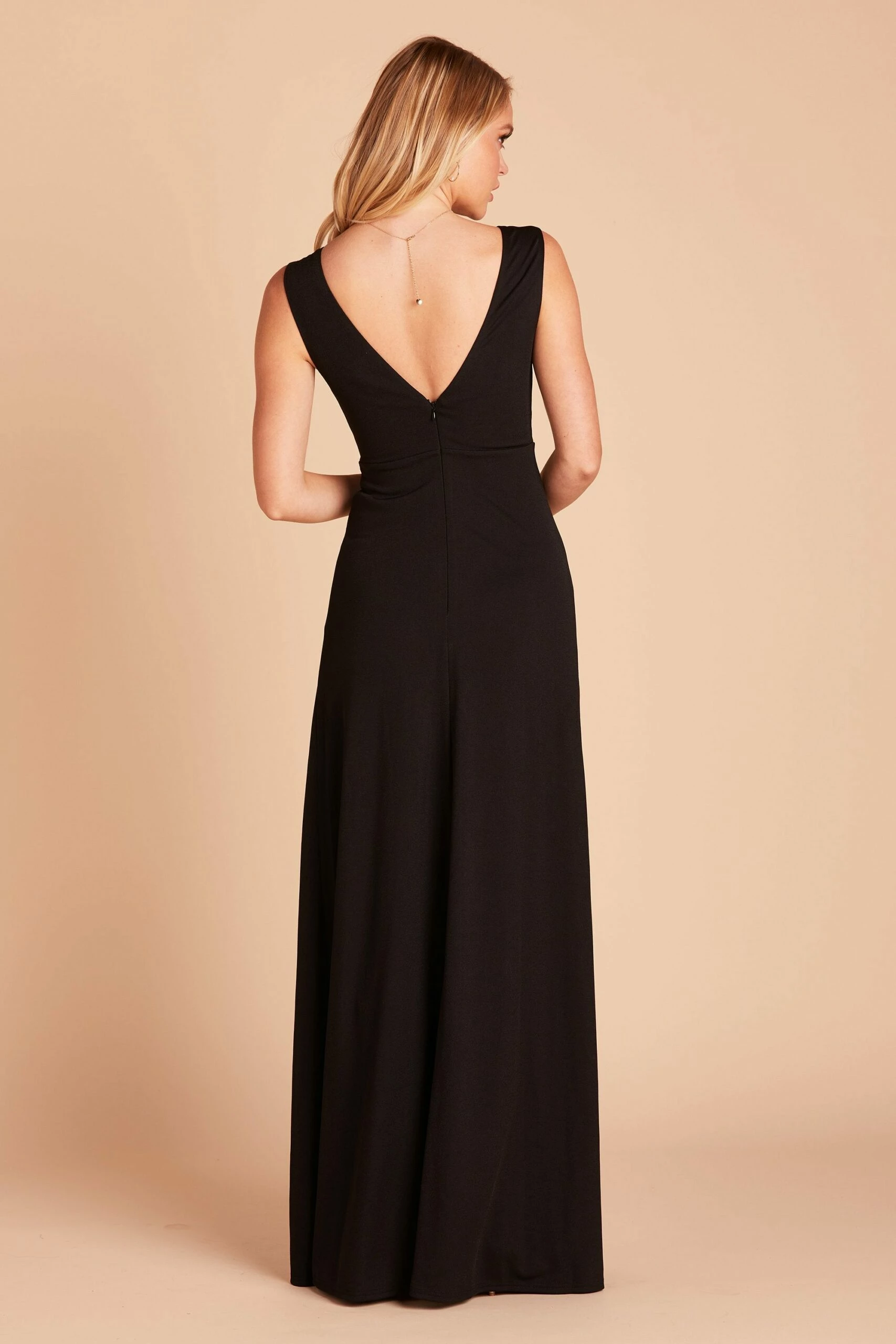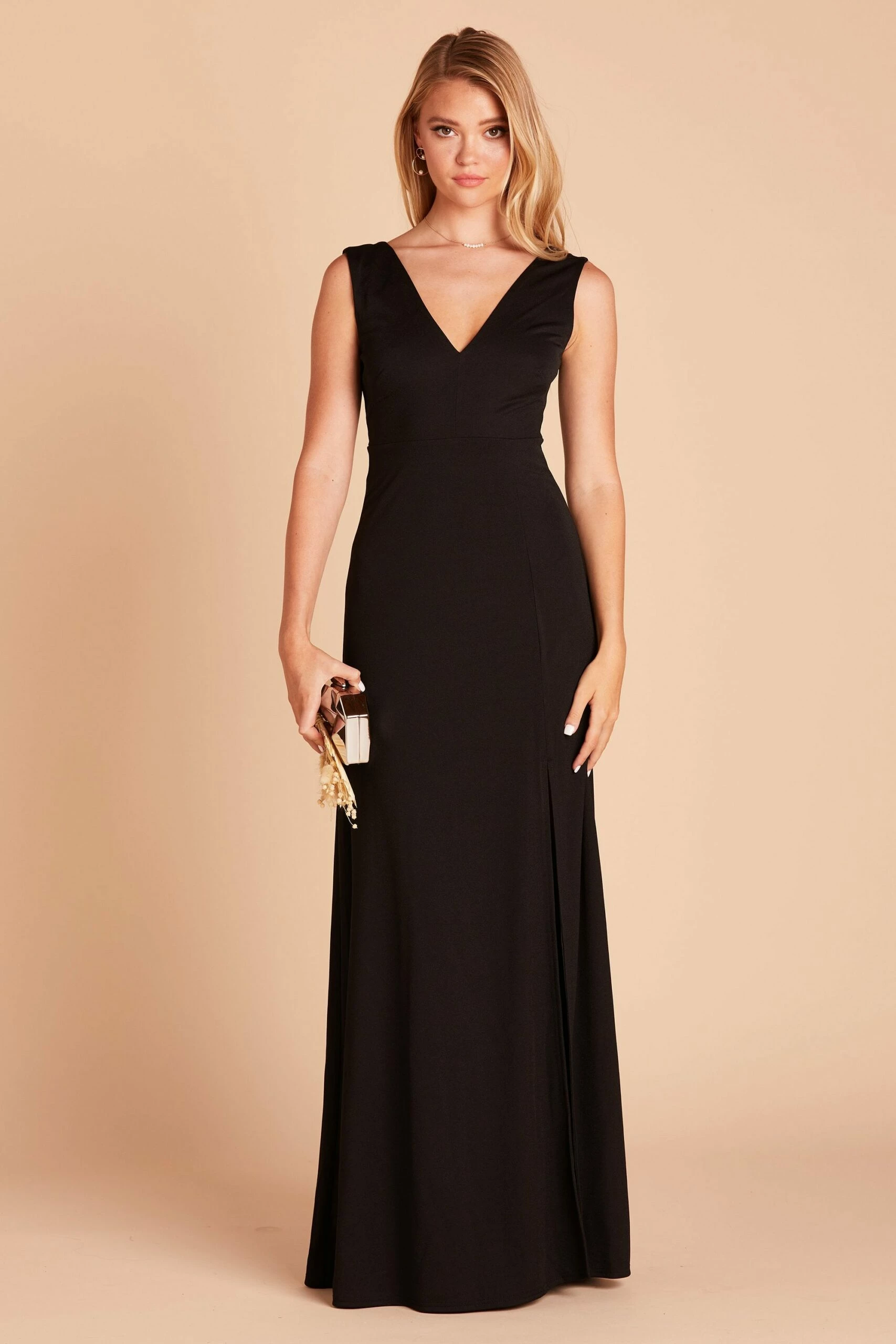 Sleek, modern and minimal is our Shamin bridesmaid dress, featuring a plunging V neckline and body-skimming fit. She’s designed in a comfy stretch knit crepe with a sexy front slit to show off a flash of skin. We can’t say this about all bridesmaid dresses, but she’s one you can definitely rock again long after the wedding.