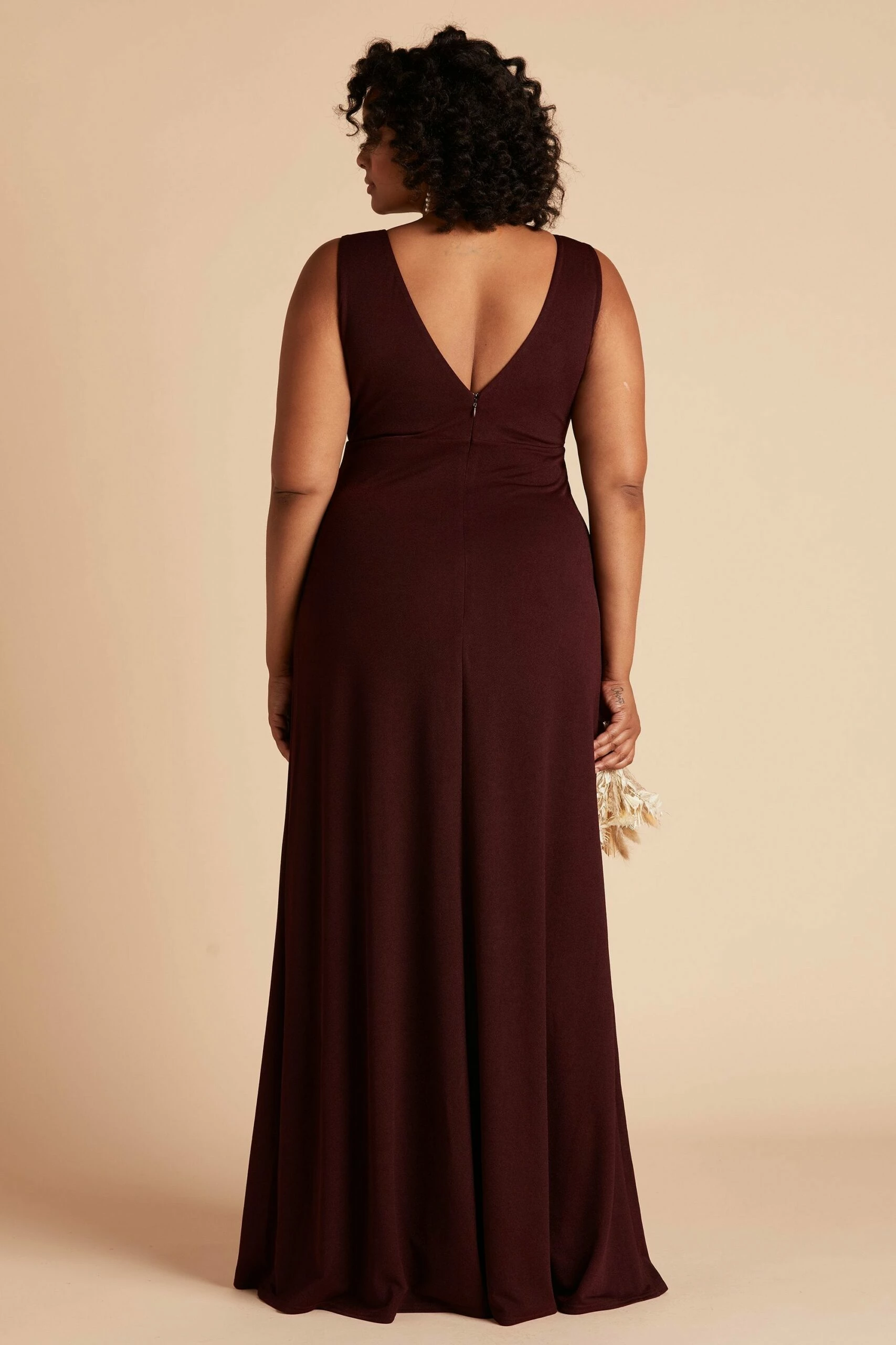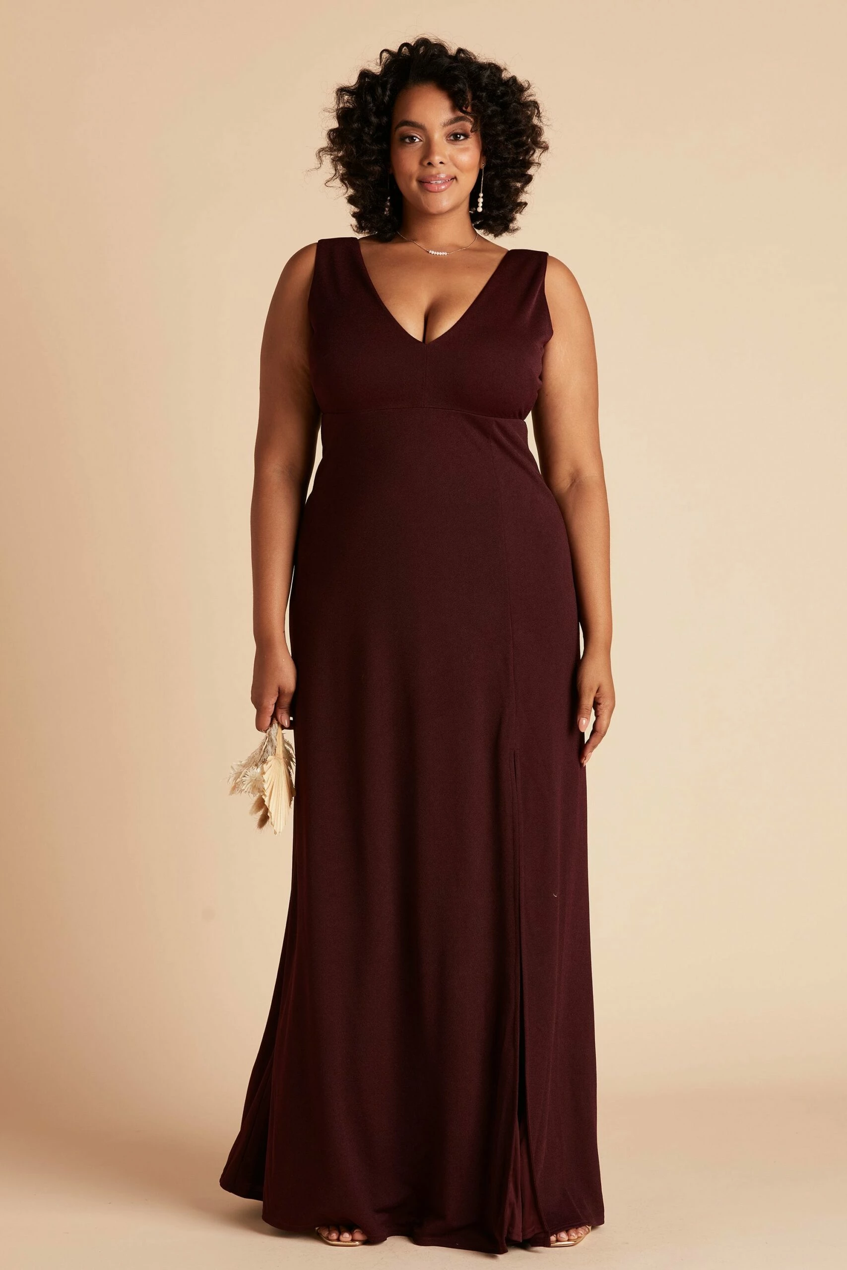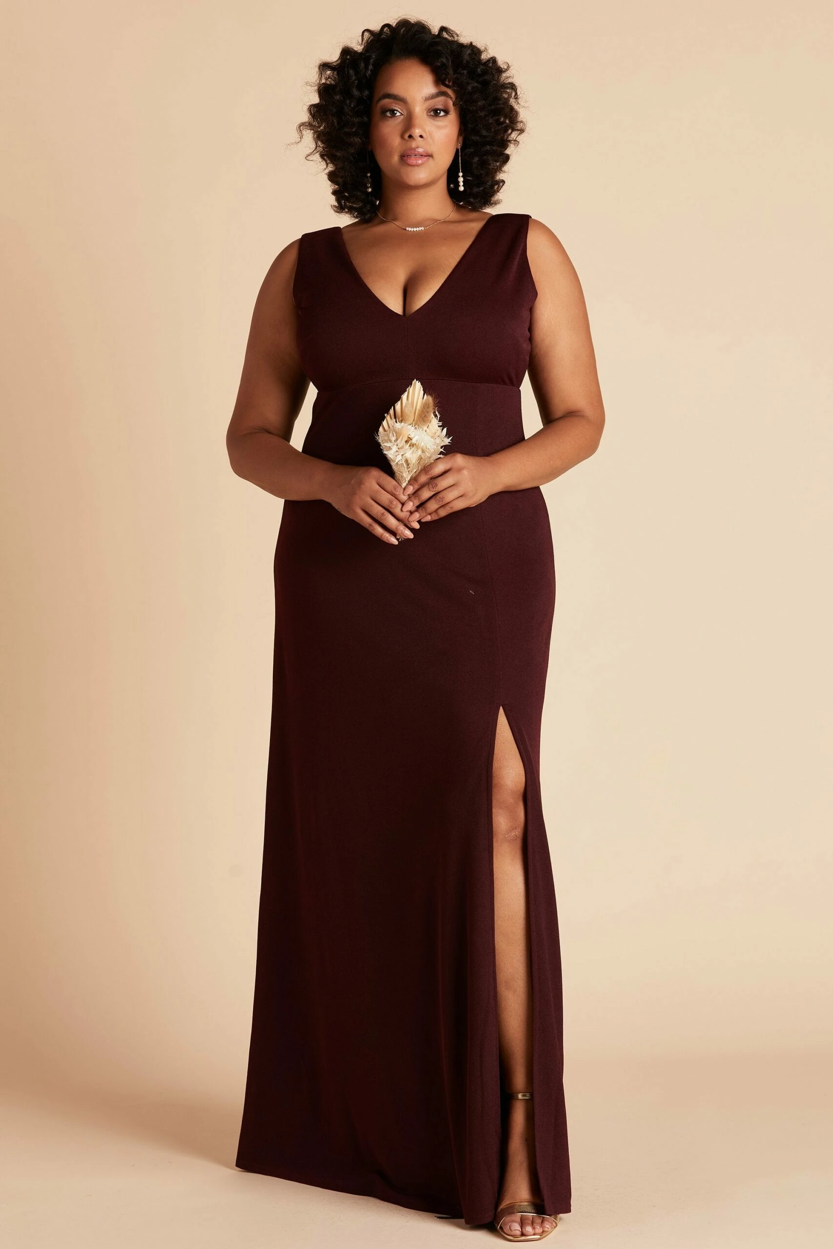 Sleek, modern and minimal is our Shamin bridesmaid dress, featuring a plunging V neckline and body-skimming fit. She’s designed in a comfy stretch knit crepe with a sexy front slit to show off a flash of skin. We can’t say this about all bridesmaid dresses, but she’s one you can definitely rock again long after the wedding.